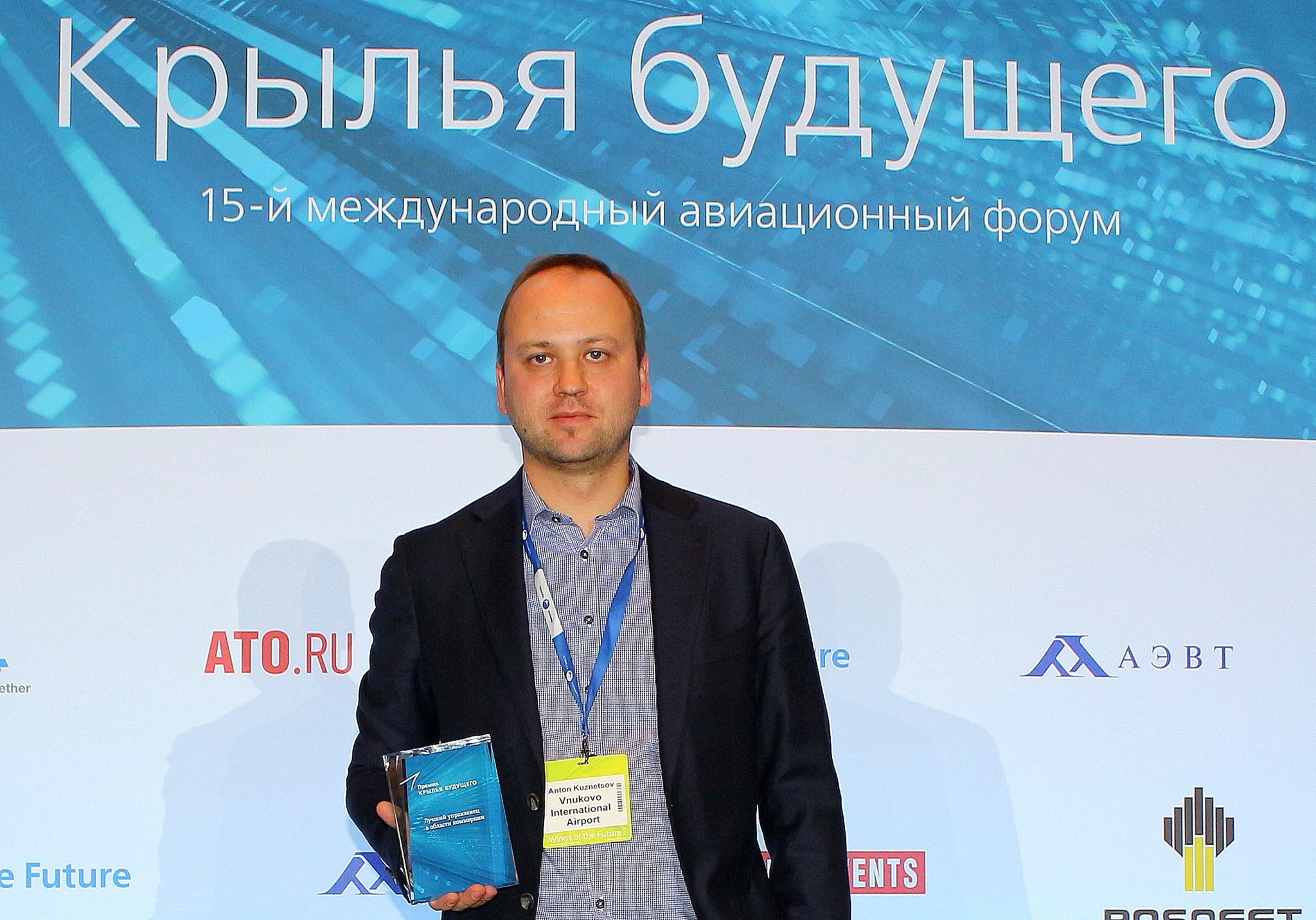 Заместитель генерального директора по коммерции АО «Международный аэропорт «Внуково» Антон Викторович Кузнецов стал лауреатом премии для молодых управленцев отрасли воздушного транспорта «Крылья будущего». А.В. Кузнецов получил награду в номинации «Лучший управленец в области коммерции». Торжественная церемония вручения премии состоялась в рамках одноименного авиатранспортного форума «Крылья будущего» и прошла в «Ренессанс Москва Монарх Центре».