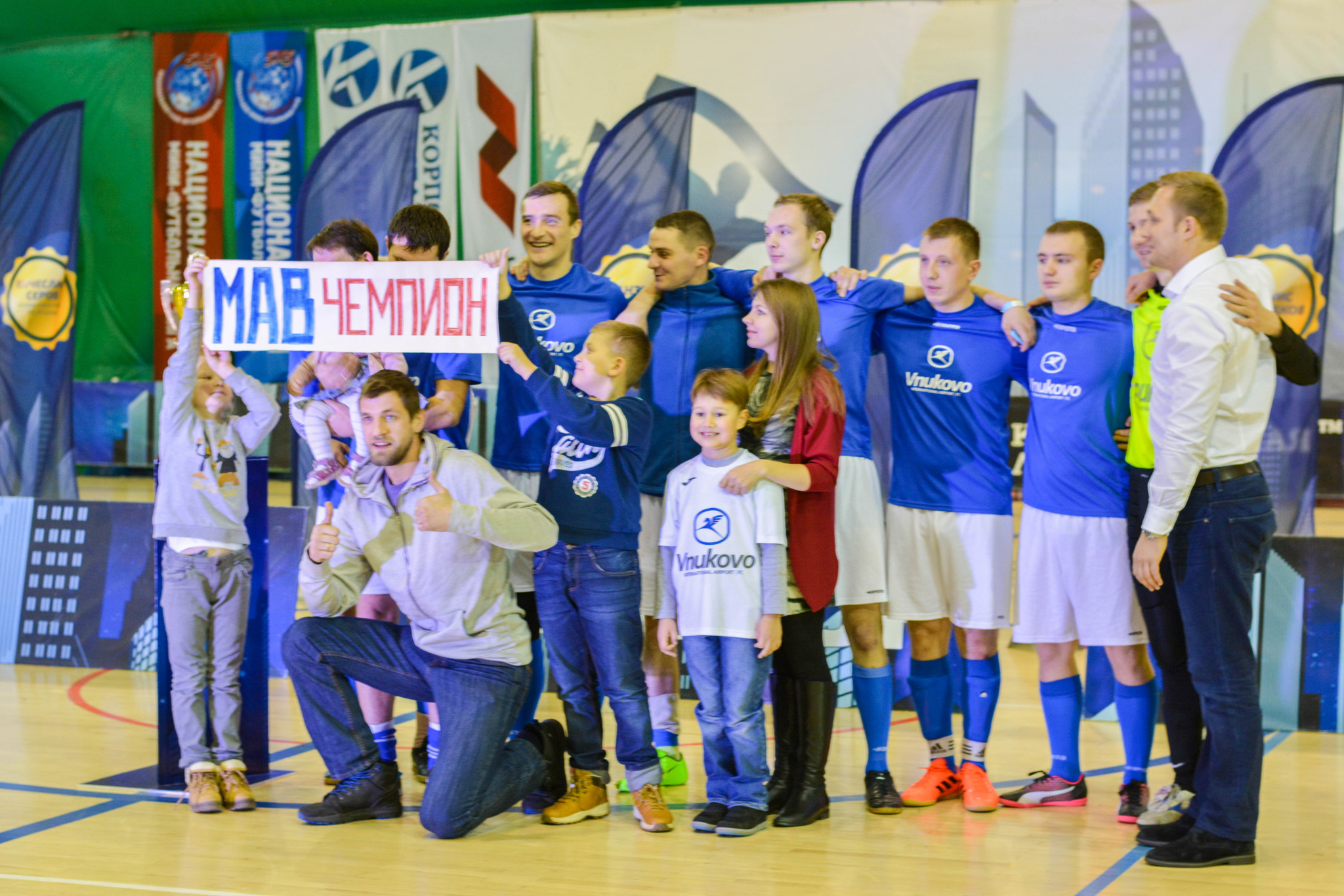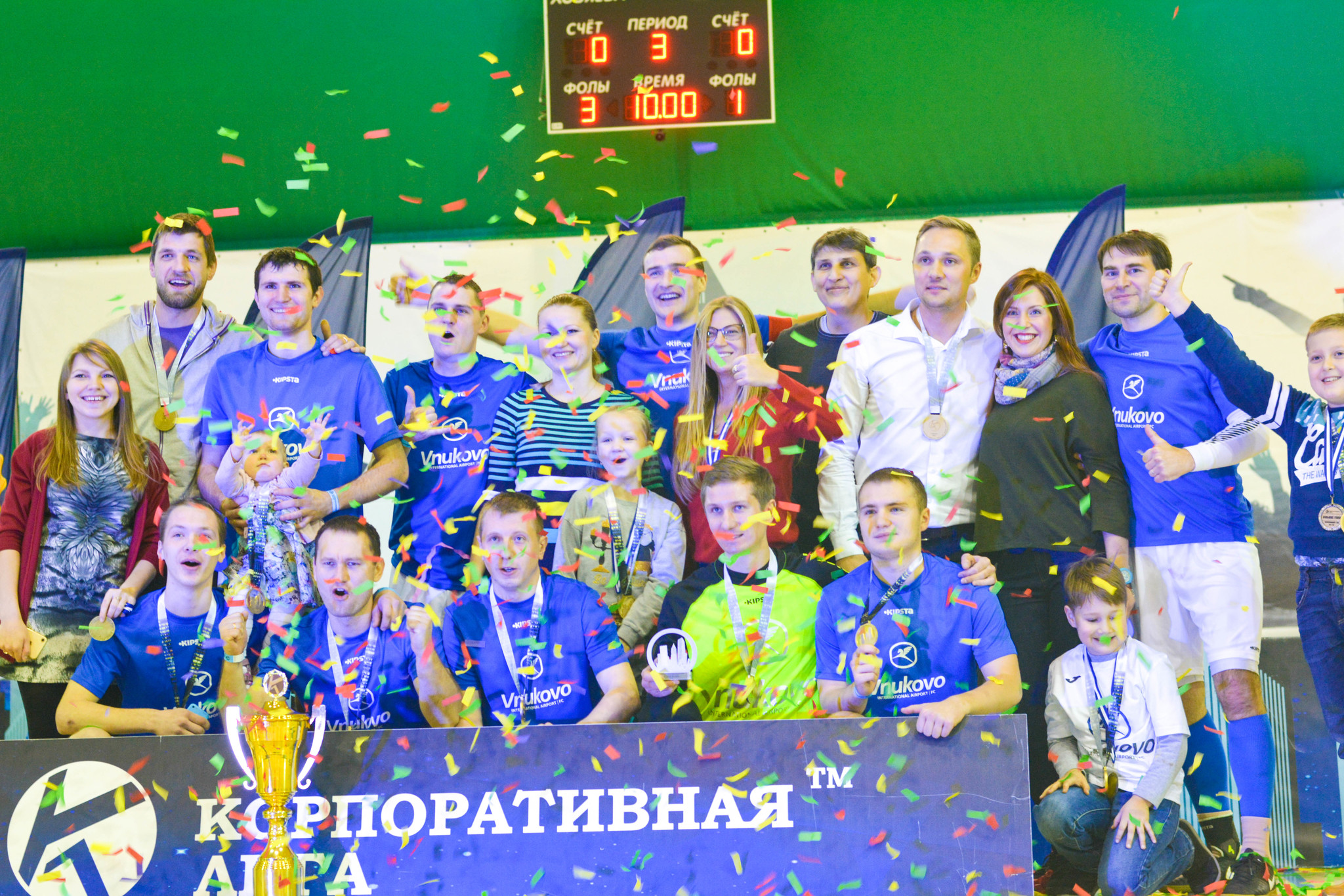 Футбольная команда Международного аэропорта Внуково заняла первое место в чемпионате по мини-футболу Корпоративной Лиги Серии С! Весь турнир команда отыграла без единого поражения, по итогам чемпионата игроки команды забили 31 мяч и пропустили всего 5. Кроме того, наши футболисты стали лучшими в номинациях «Лучший вратарь» (Процанов Евгений) и «Лучший защитник» (Котельников Александр), а лучшим бомбардиром нашей команды стал Глебов Александр (забито 12 голов).