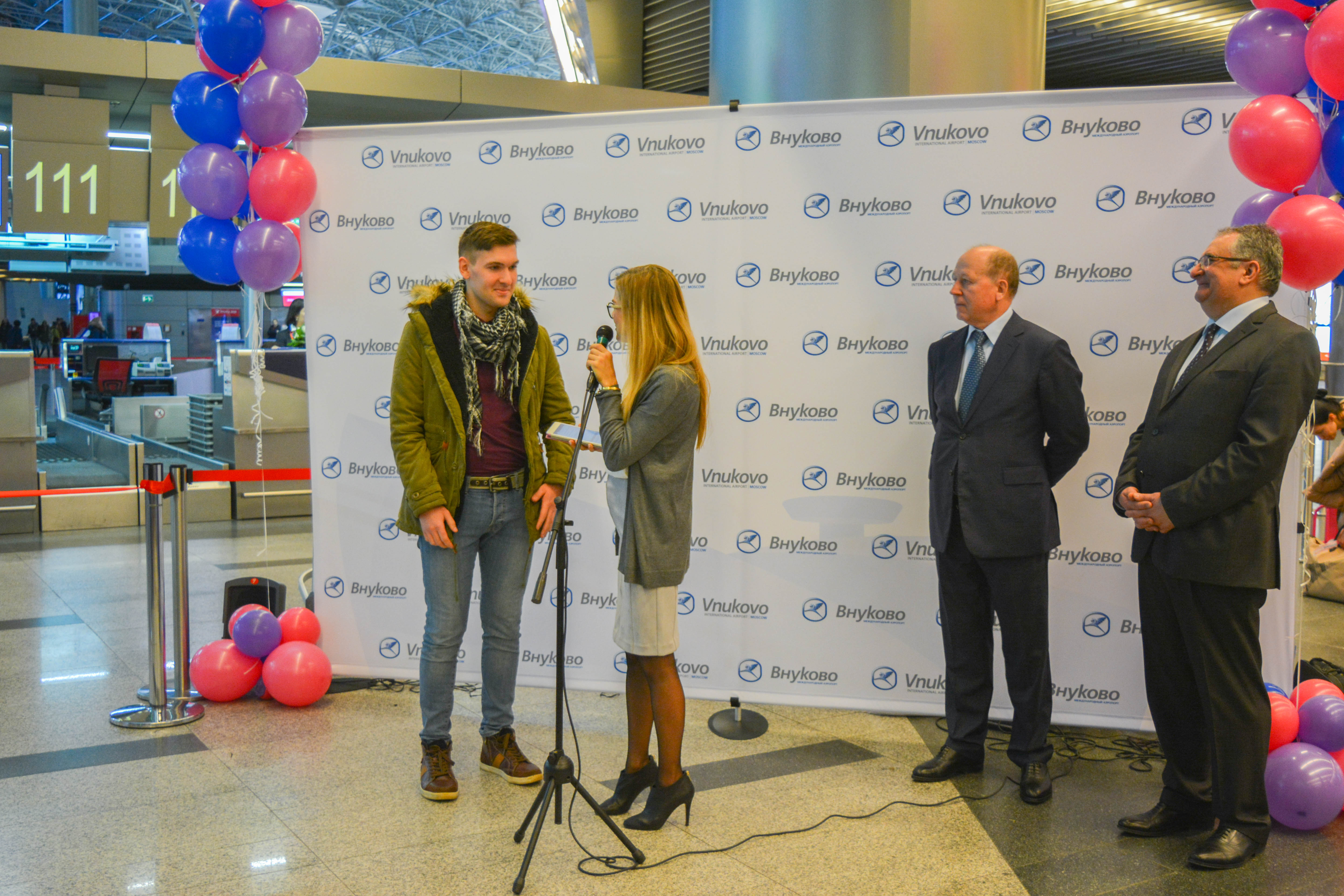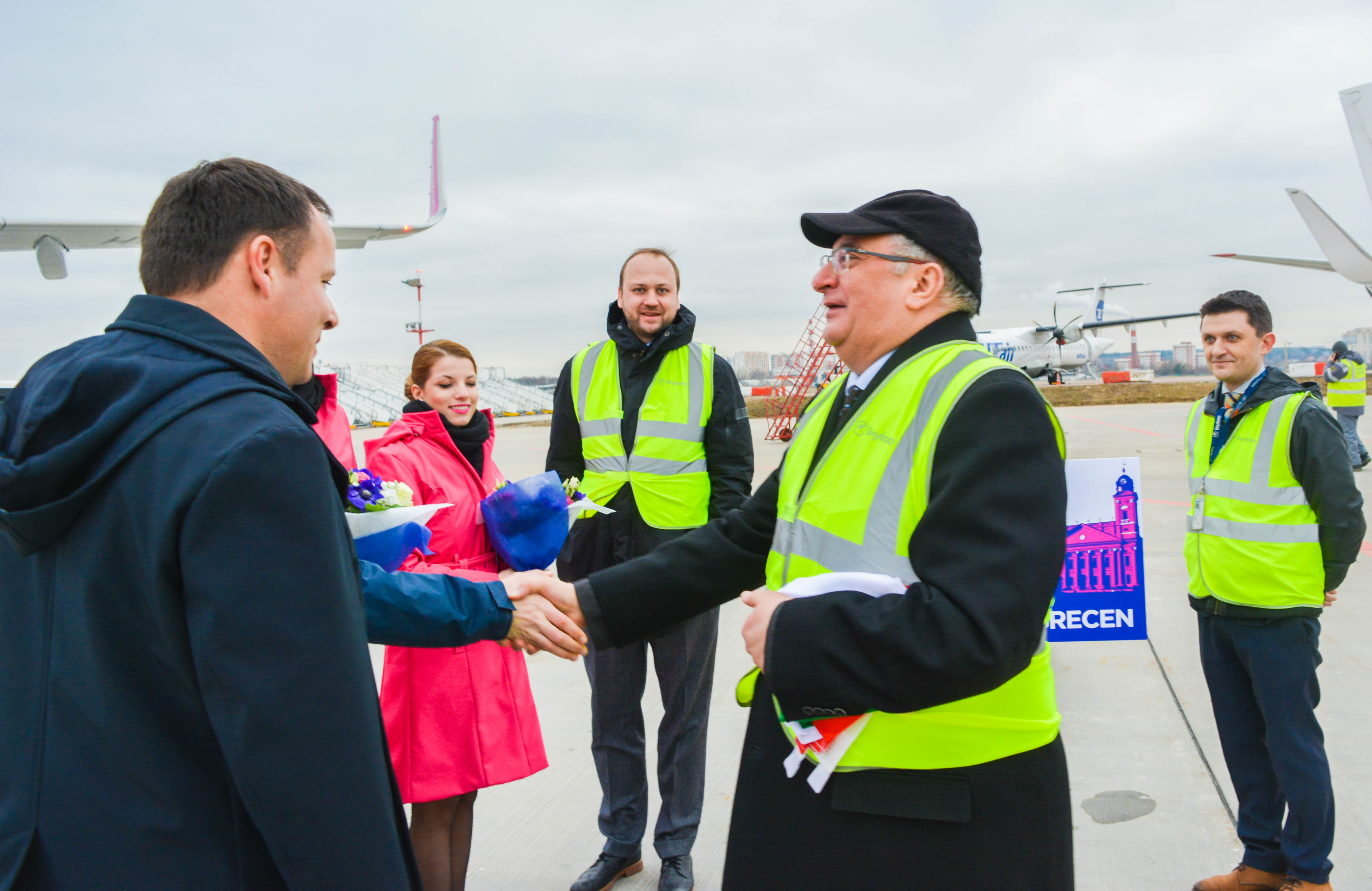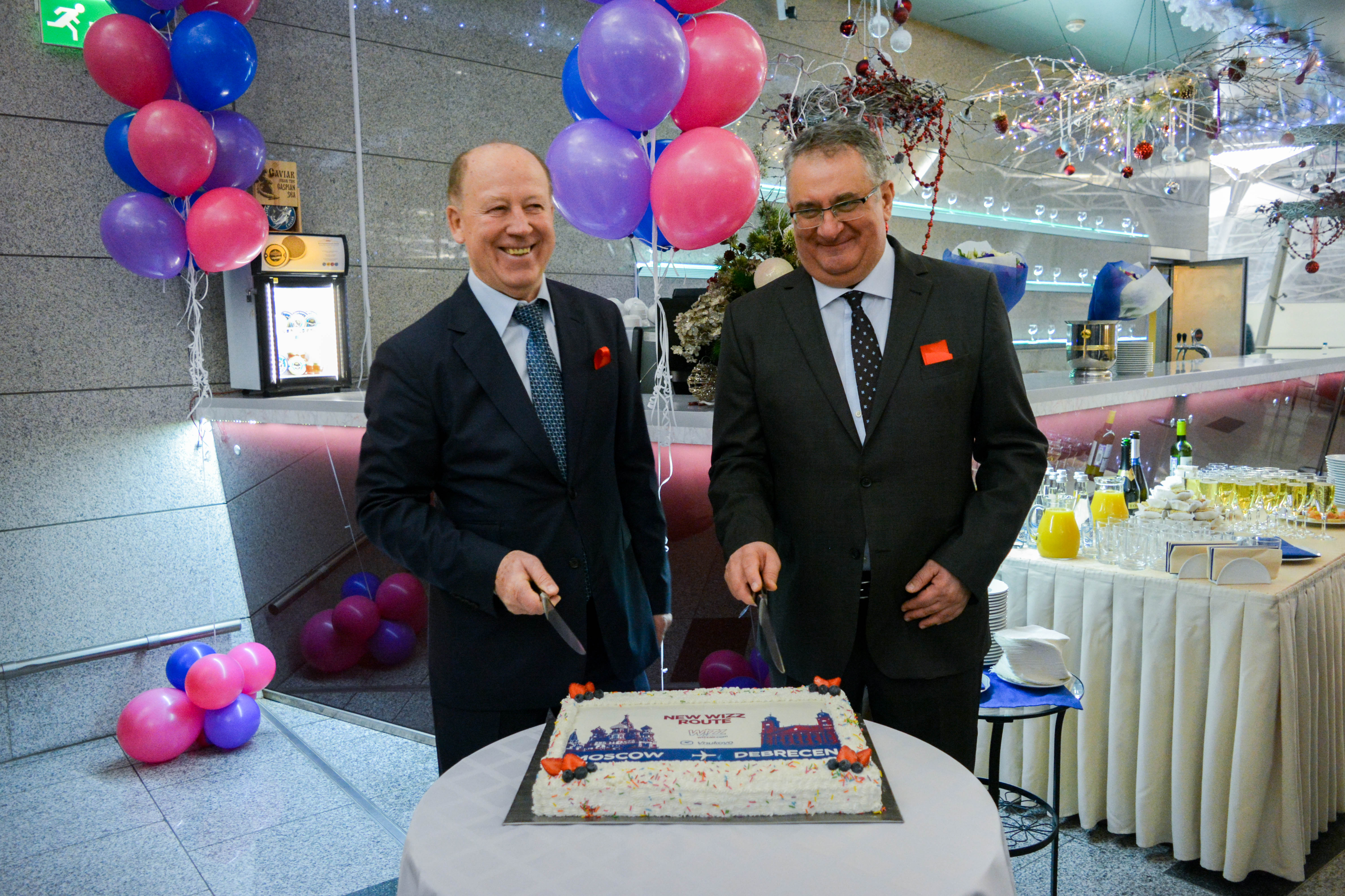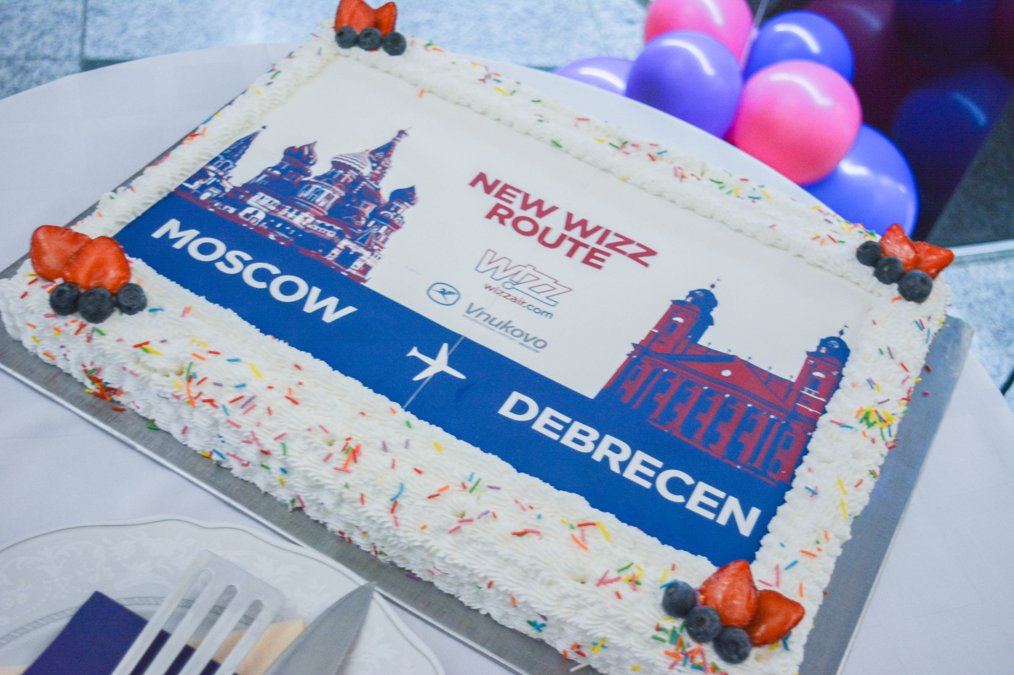 В рамках торжественной церемонии открытия рейса Москва – Дебрецен первому зарегистрированному пассажиру был вручен памятный подарок от аэропорта Внуково и посольства Венгрии в РФ. Кроме того, господин Янош Балла и заместитель генерального директора по коммерции аэропорта Внуково Антон Викторович Кузнецов встретили на перроне экипаж первого рейса Дебрецен – Москва и поздравили представителей авиакомпании с этим памятным событием.