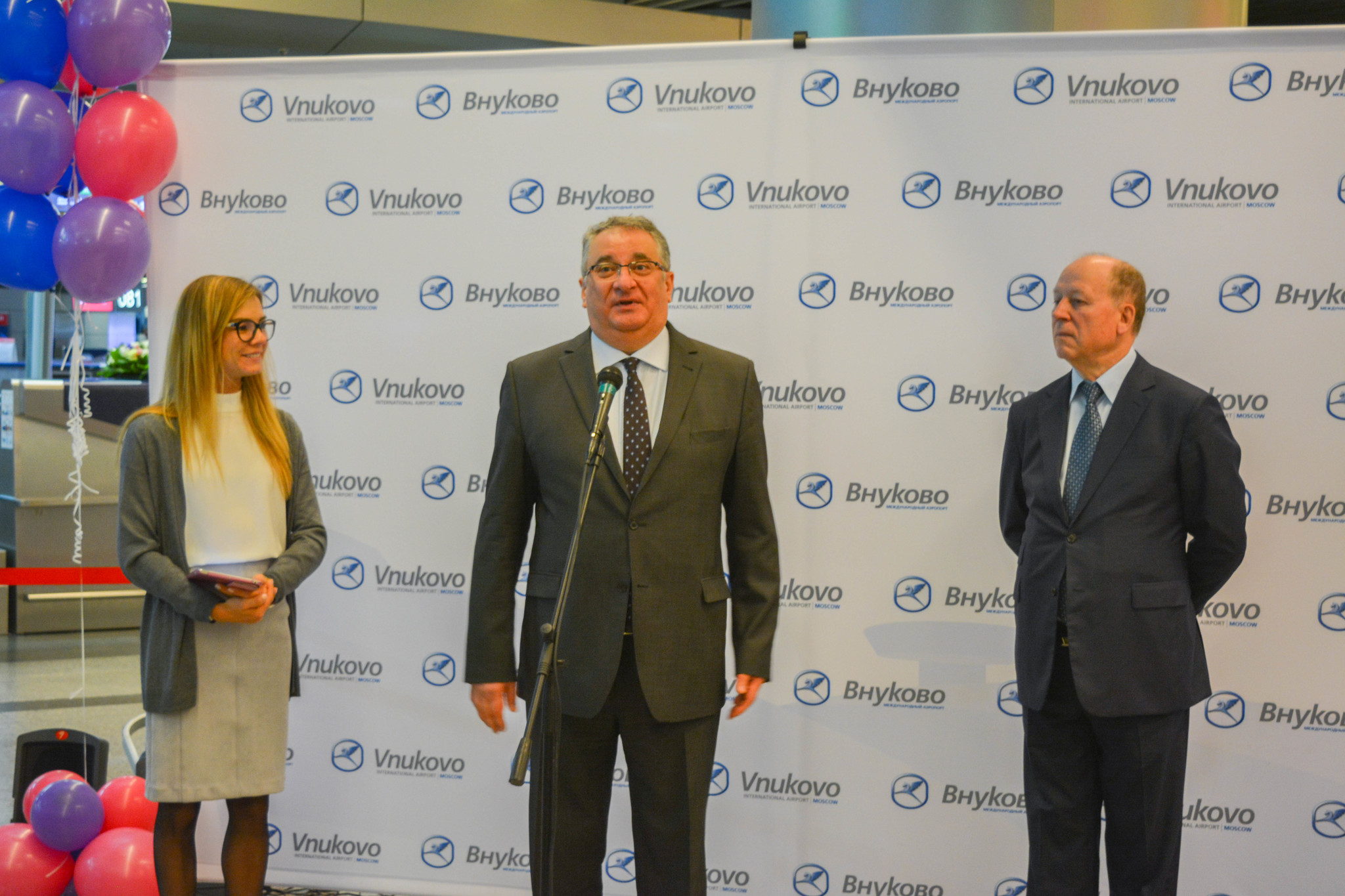 На торжественной церемонии открытия первого рейса с приветственным словом выступил генеральный директор Международного аэропорта Внуково Василий Егорович Александров. Он отметил, что для аэропорта Внуково это большое событие – открытие уникального направления для всей России. «Мы горды, что именно из нашего аэропорта будет совершаться рейс Москва – Дебрецен. Из Внуково уже совершаются ежедневные рейсы в Будапешт, а теперь у наших пассажиров есть возможность посетить и Восток Венгрии. Надеюсь, что пребывание пассажиров в аэропорту будет максимально комфортным, а мы со своей стороны постараемся обеспечить им самый высокий уровень обслуживания», – сообщил В.Е. Александров.