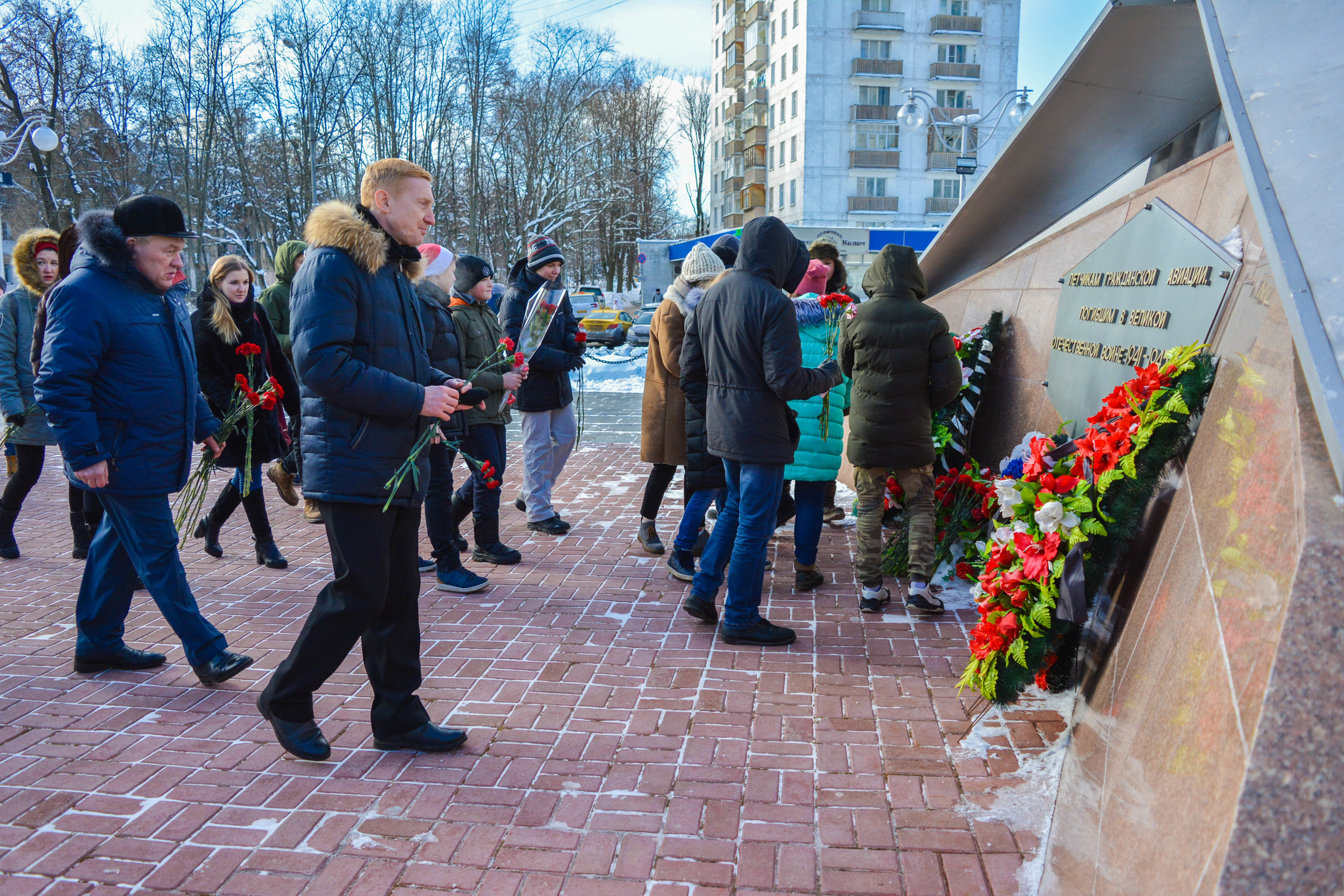 Сотрудники Международного аэропорта Внуково приняли участие в торжественном мероприятии с возложением цветов, посвящённом Дню защитника Отечества, у Памятника героям-летчикам гражданской авиации, погибшим в годы Великой Отечественной войны.