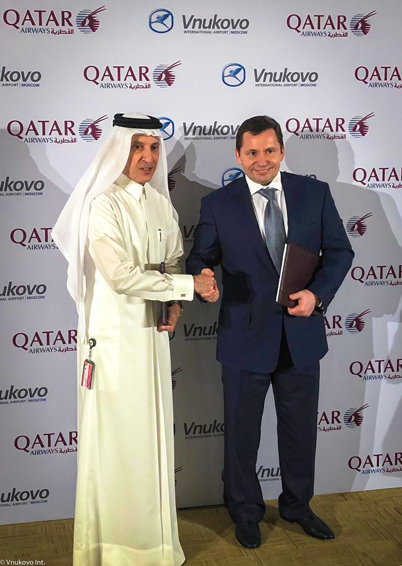 Председатель совета директоров АО «Международный аэропорт «Внуково» г-н Виталий Ванцев отметил: «Сегодня мы подписали меморандум, реализация положений которого может заложить основу для плодотворного сотрудничества в будущем между ведущим мировым перевозчиком - авиакомпанией Qatar Airways, известной своим сервисом и наивысшим качеством обслуживания, и аэропортом Внуково. На сегодняшний день Внуково обладает наилучшей транспортной доступностью, одним из самых современных аэропортовых комплексов в России, показывает самую высокую динамику роста пассажиропотока в стране. Поэтому я уверен, что наше потенциальное партнерство будет взаимовыгодным и способным привнести эффект синергии для дальнейшего развития обеих сторон».