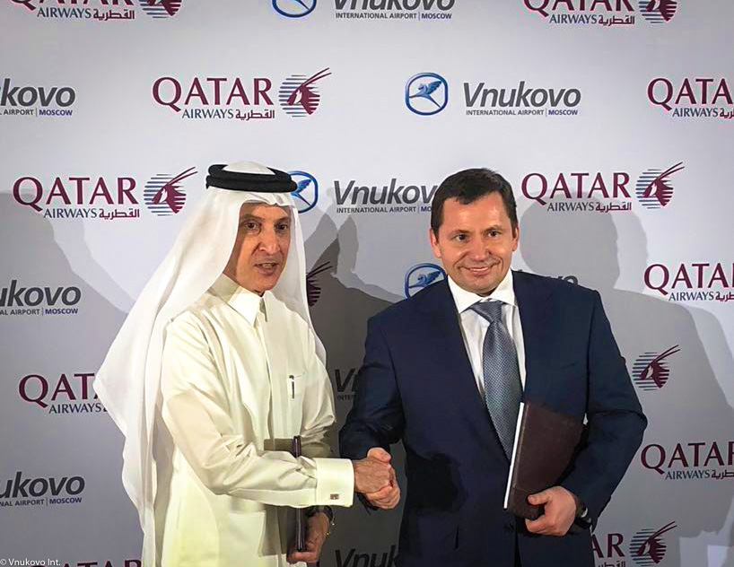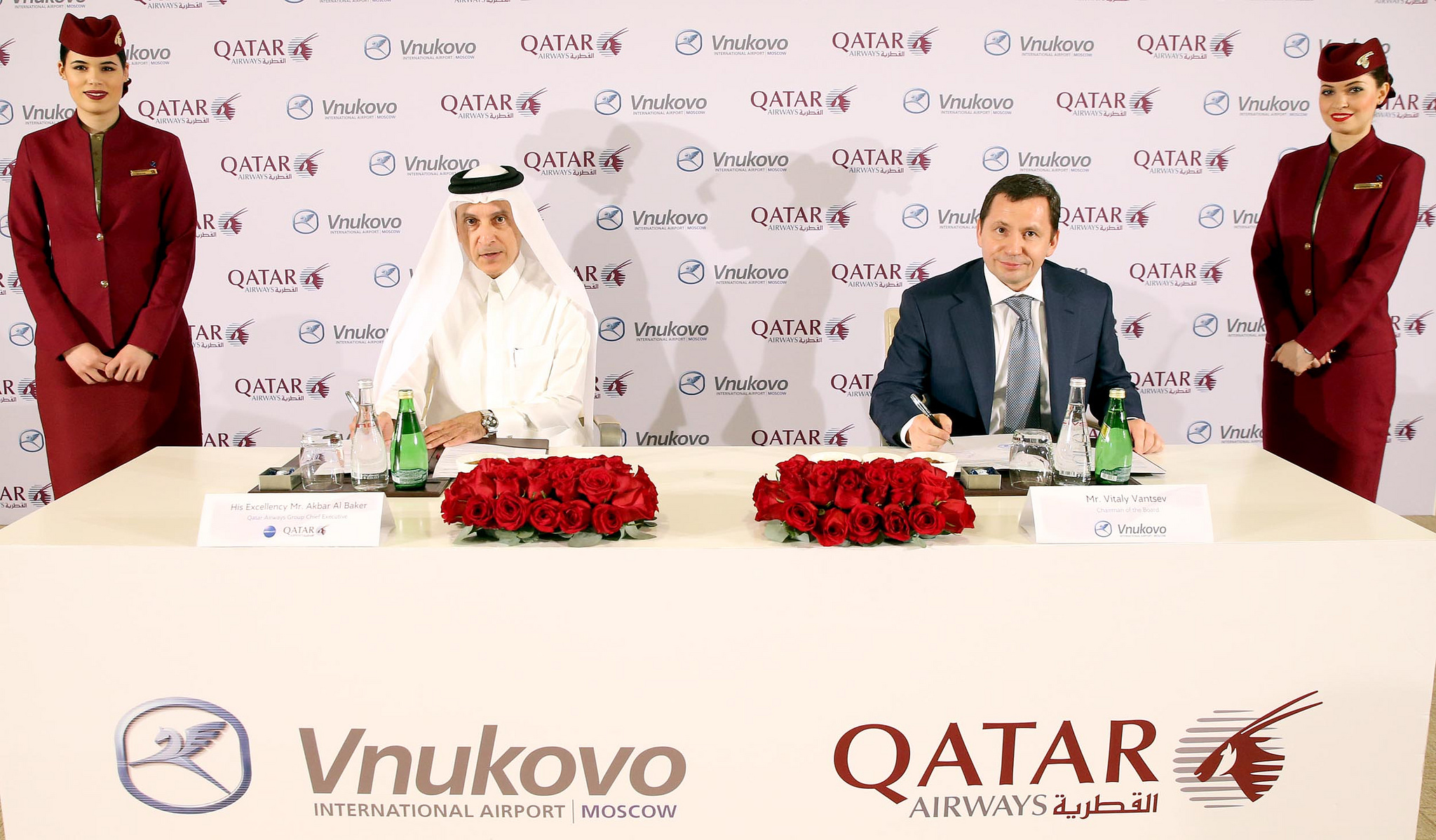 Qatar Airways и аэропорт Внуково подписали меморандум о намерениях на приобретение авиакомпанией до 25% от общего числа акций АО «Международный аэропорт «Внуково». Церемония подписания состоялась сегодня в Дохе в отеле «Oryx Rotana».