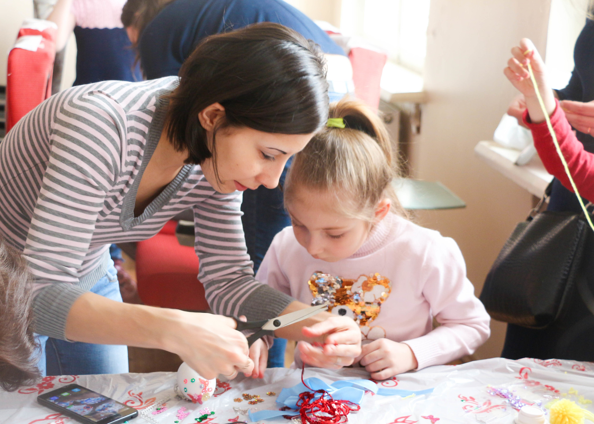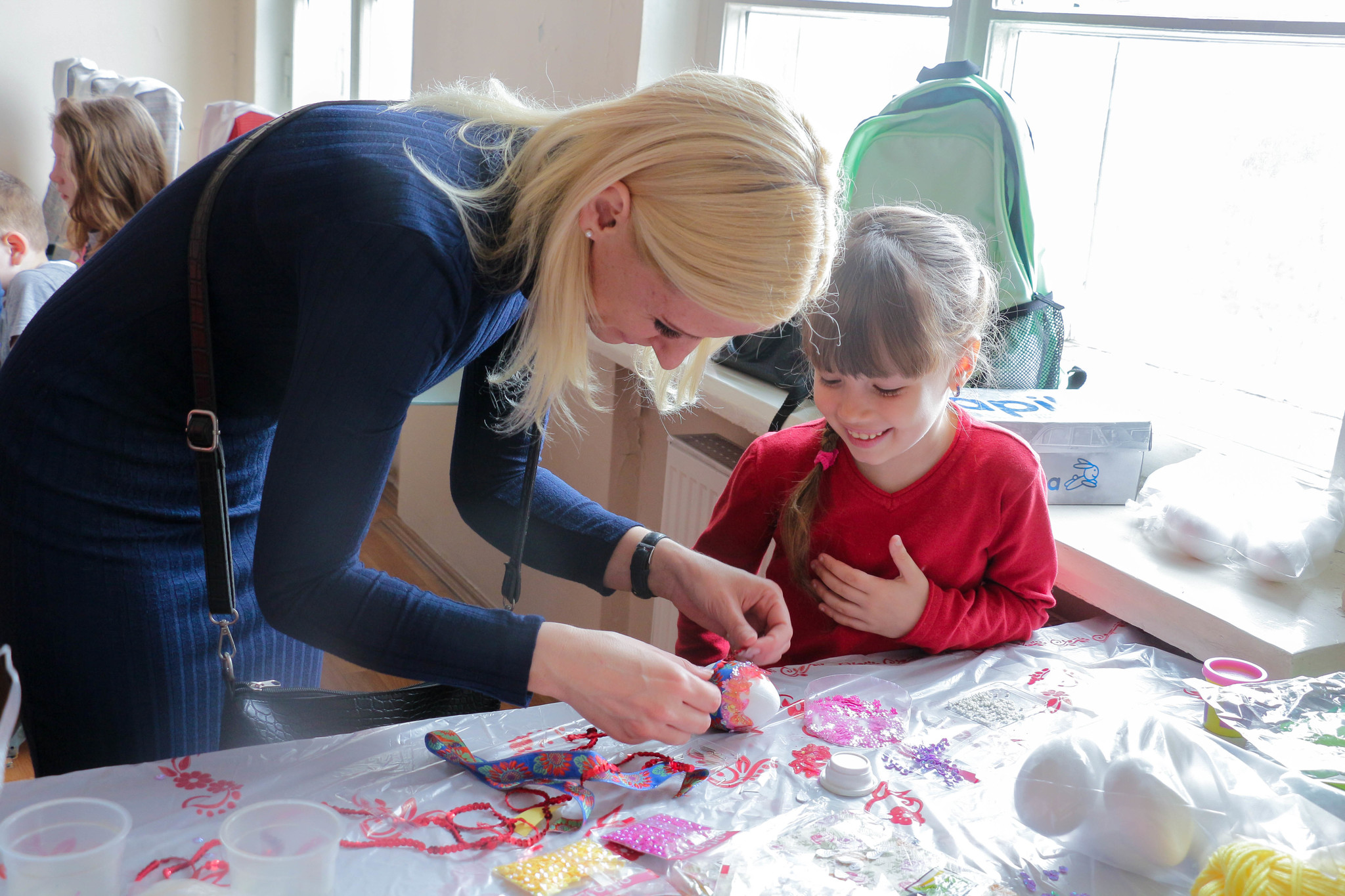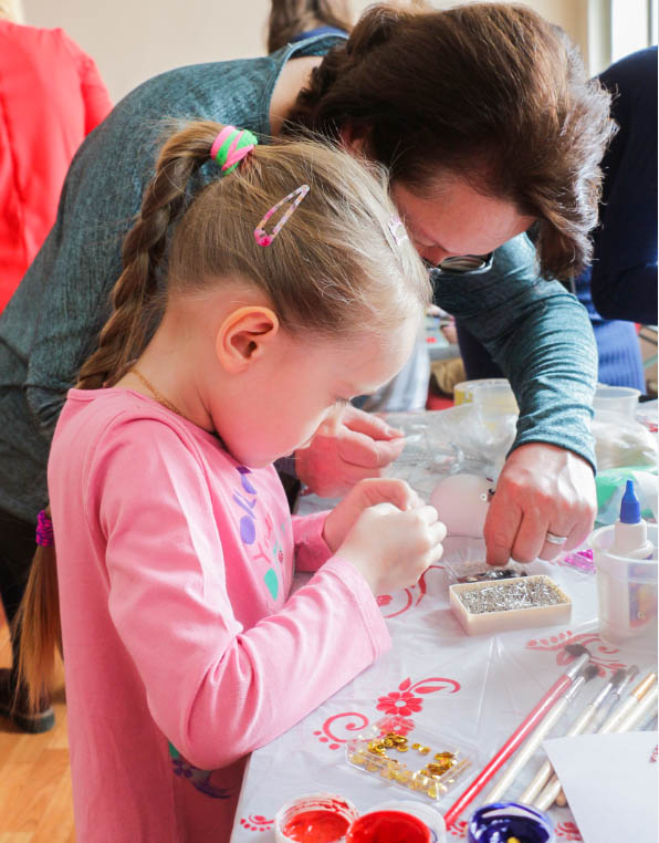 В ожидании начала спектакля дети ознакомились с экспонатами выставки, а также под руководством наших творческих коллег смогли своими руками смастерить Пасхальные сувениры для родителей, бабушек и дедушек.
