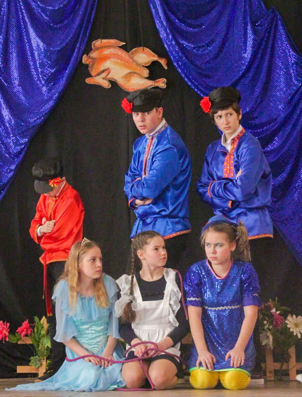 Дети посмотрели поучительный спектакль «Жареные петухи» по пьесе Вячеслава Панфилова в исполнении ведущего творческого коллектива г. Москвы Театральной студии «Личики» под руководством Михеенковой Марины Александровны.