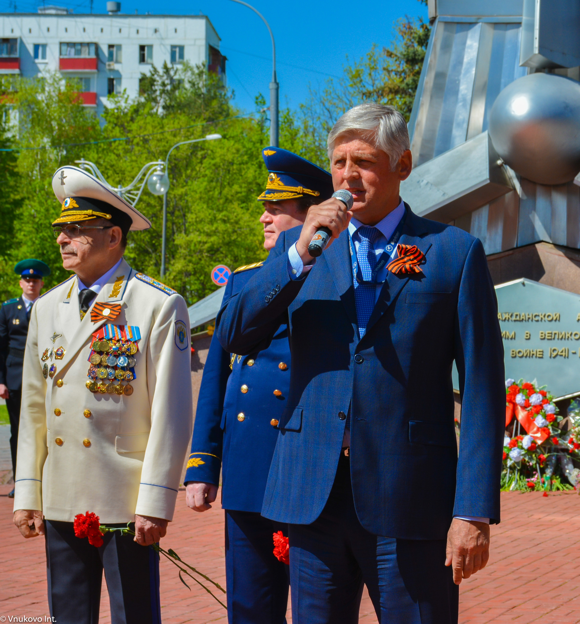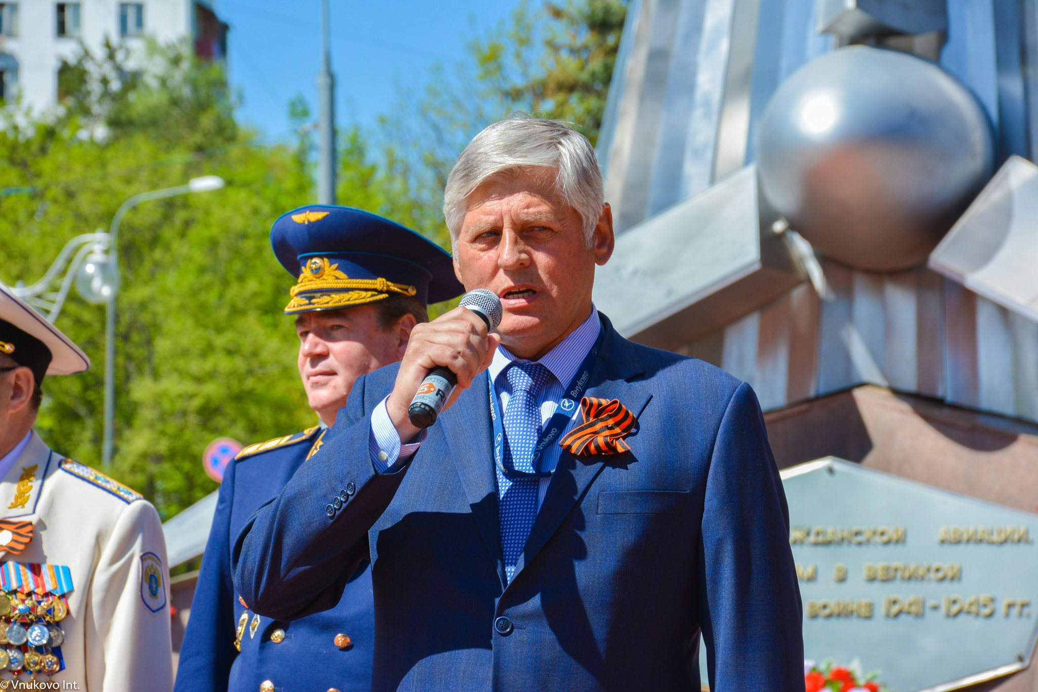 Традиционно 9 мая на центральной площади района Внуково состоялась торжественная церемония возложения цветов к памятнику героям-летчикам гражданской авиации, погибшим в годы Великой Отечественной войны. С приветственной речью от имени аэропорта Внуково выступил Заместитель директора по производству по аэровокзальному комплексу Г.П. Прощикин. В мероприятии также приняли участие: глава управы района Внуково А.И. Алексеев, глава муниципального округа Внуково В.И.Рогов, председатель Совета ветеранов района Внуково Е.П. Бунчин, заместитель руководителя Росавиации (ФАВТ) О.Г. Сторчевой, заместитель руководителя Федеральной службы по надзору в сфере транспорта В.Б. Черток, а также ветераны, учащиеся местных общеобразовательных учреждений, а также жители района Внуково, которые всегда приходят к памятнику погибшим летчикам в этот праздничный день, чтобы почтить память наших героев.