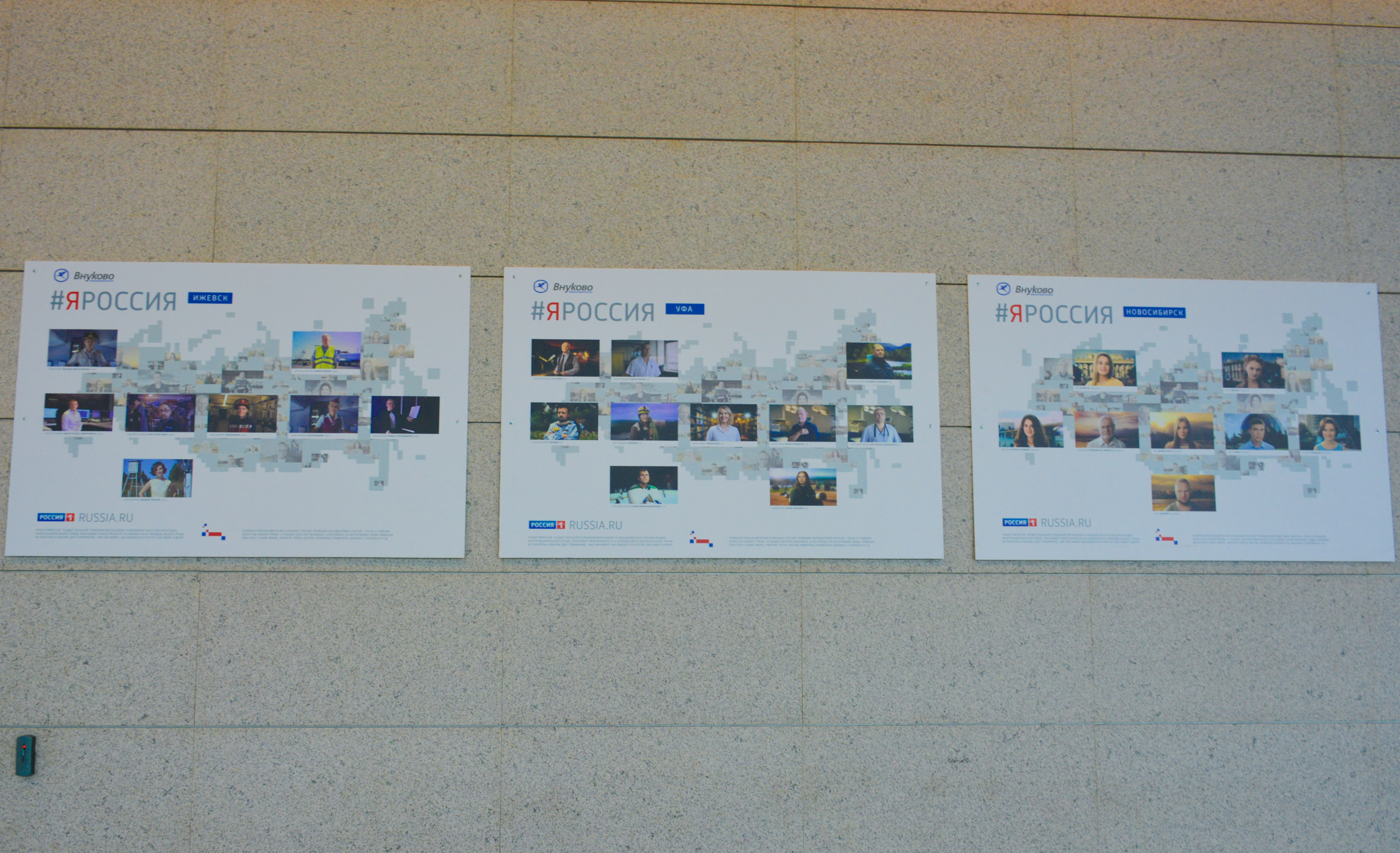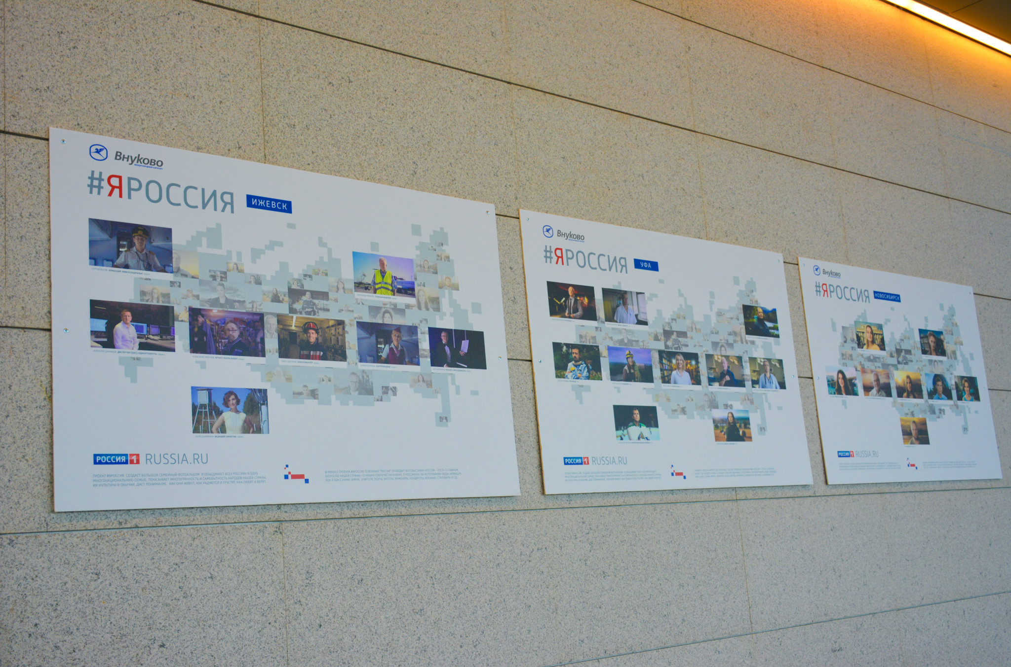 Телеканал «Россия 1» представил пассажирам и гостям аэропорта Внуково фотовыставку «ЯРОССИЯ». Экспозиция размещена на третьем этаже терминала А справа от бизнес-зала.