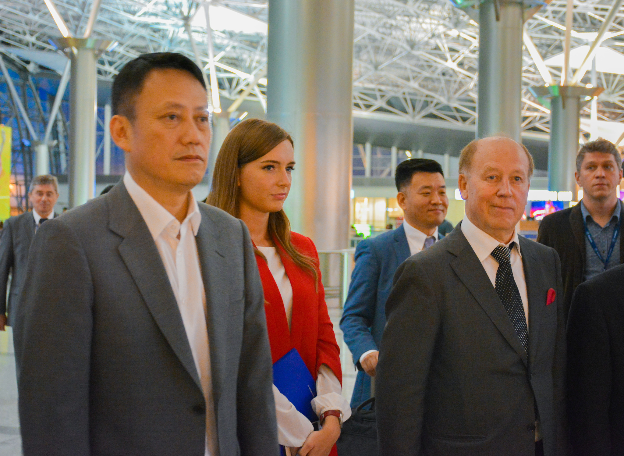 Далее с приветственным словом выступили Полномочный министр посольства КНР в РФ Fan Xiangzhung, Президент Hong Kong Airlines Wang Liyaи Руководитель отдела пассажирских перевозок принимающей компании ATC Air Service Ltd Сергей Мстиславский.