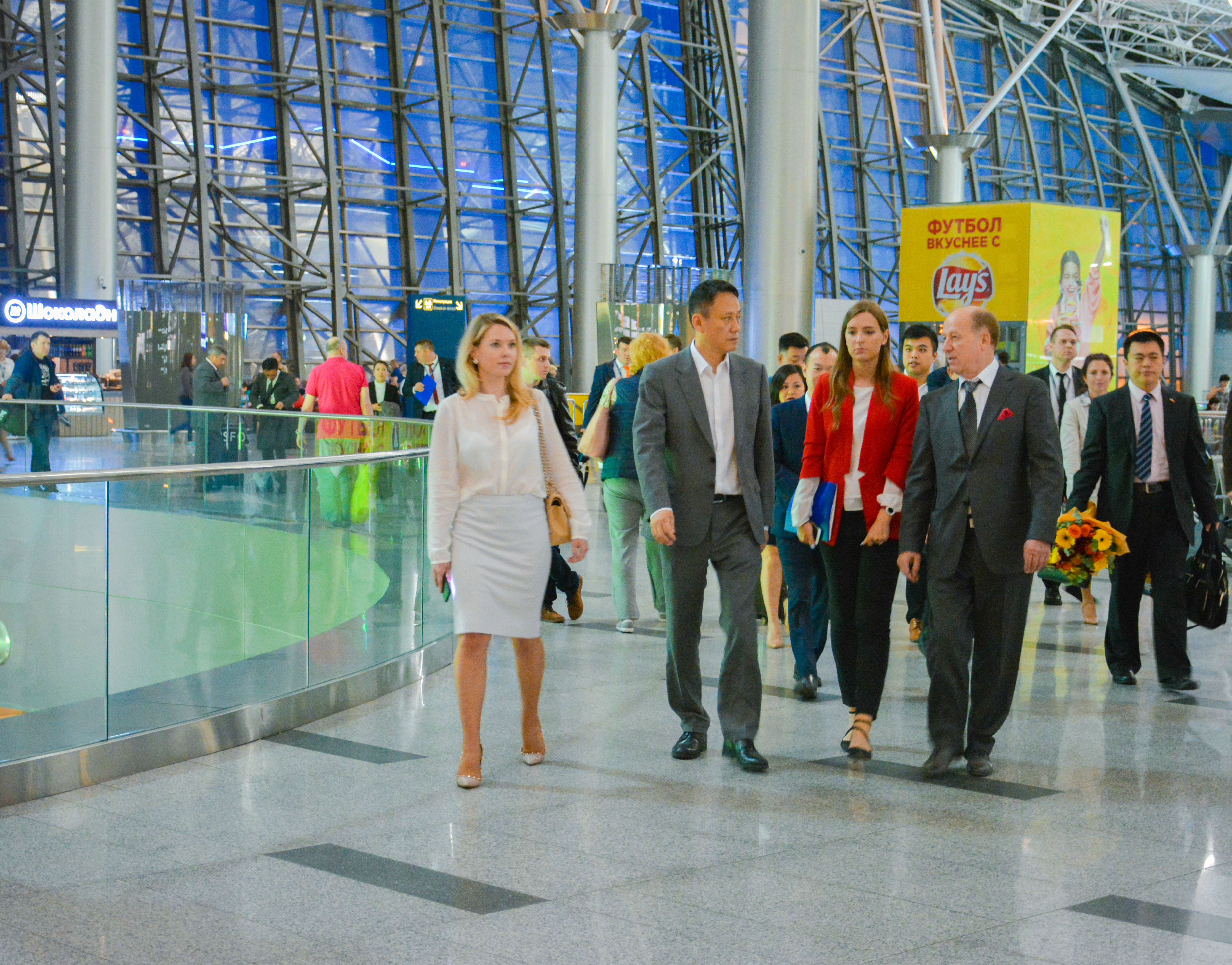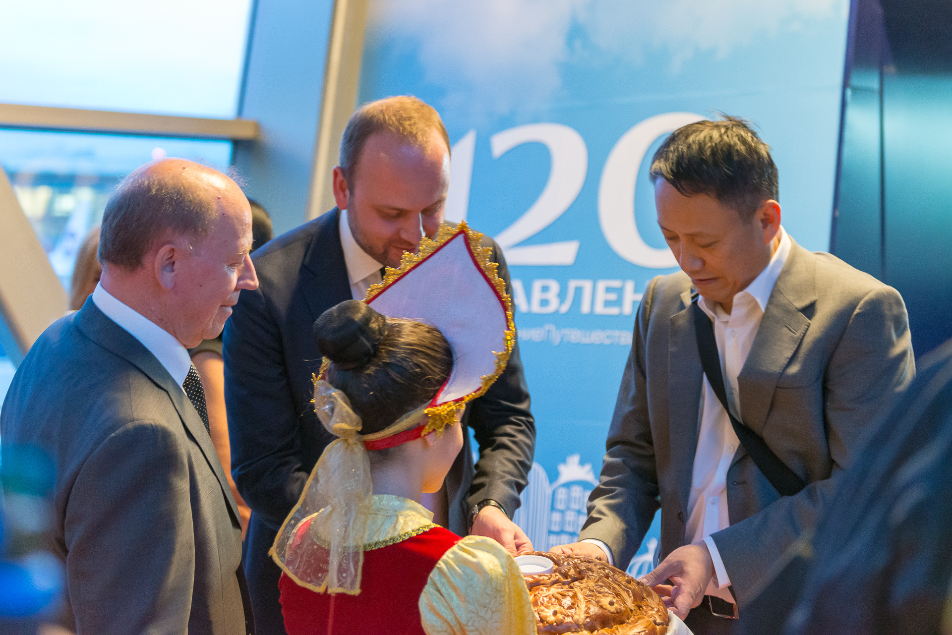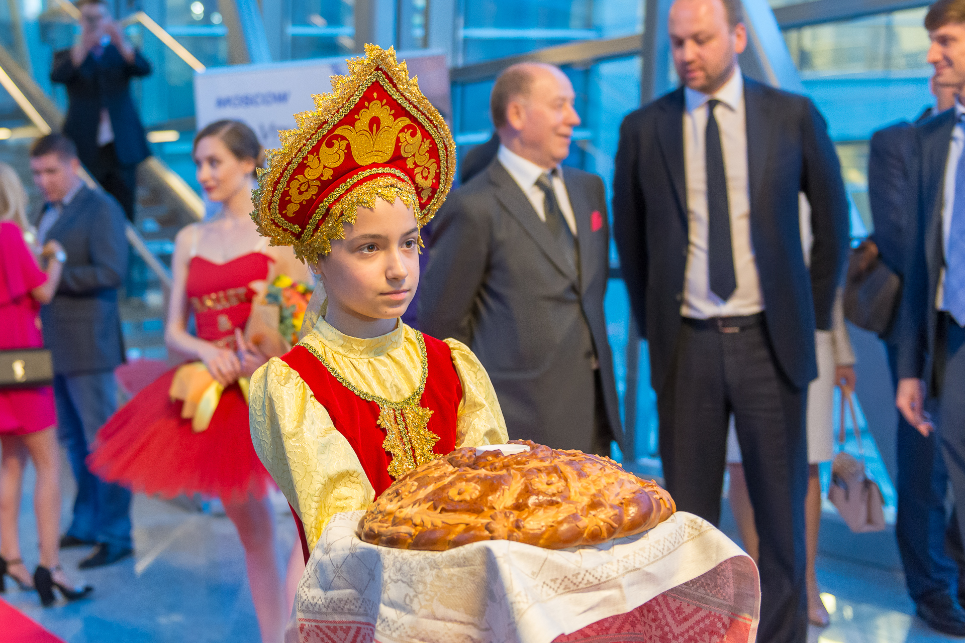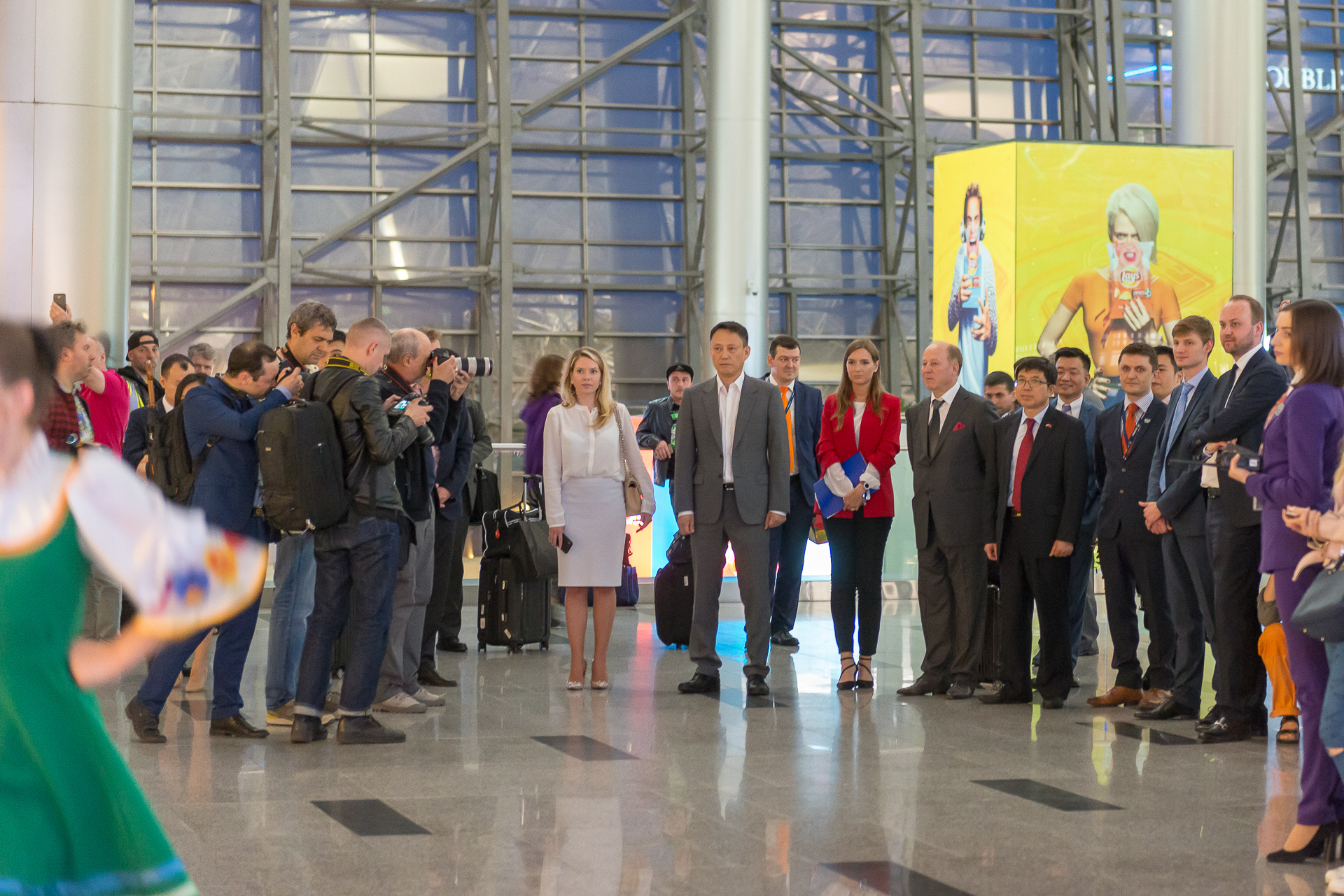 После традиционной приветственной церемонии «Хлеб-Соль» все присутствующие отправились в VIP Lounge аэропорта, где прошла торжественная часть встречи, которая была открыта выступлением артистов Культурного Центра Внуково и детского хореографического ансамбля «Жемчужина» в национальных русских костюмах.