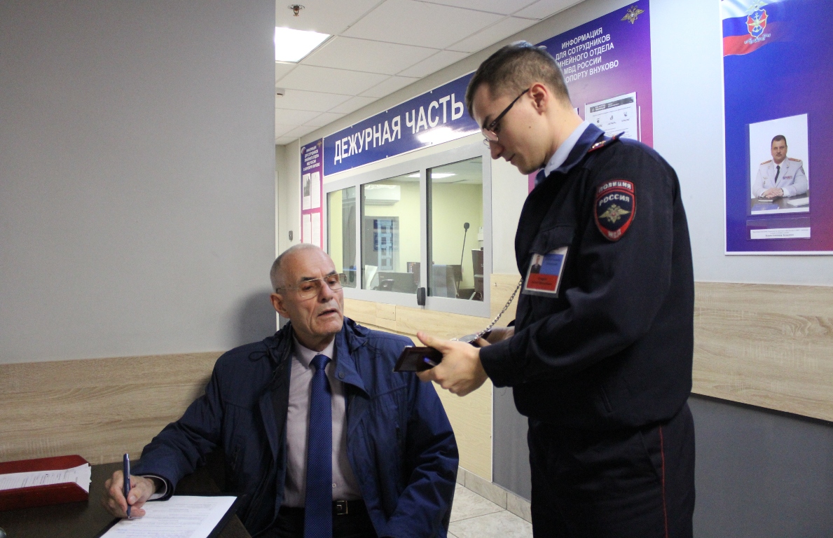На территории воздушной гавани активисты ознакомились с работой патрульно-постовых нарядов и дежурной части полиции. Работу линейного подразделения проверили ответственный секретарь Общественного совета при УТ МВД России по ЦФО Валентин Медушевский, члены постоянно действующих комиссий Общественного совета Владимир Новицкий и Иосиф Фишбей, а также заместитель председателя ветеранской организации ЛО МВД России в аэропорту Внуково Галина Шевелева. При входе в аэровокзальный комплекс Внуково общественники обратили внимание на сотрудников патрульно-постовой службы, их внешний вид, экипировку, наличие видеорегистраторов, отметили, что полицейские к несению службы относятся добросовестно и ответственно.