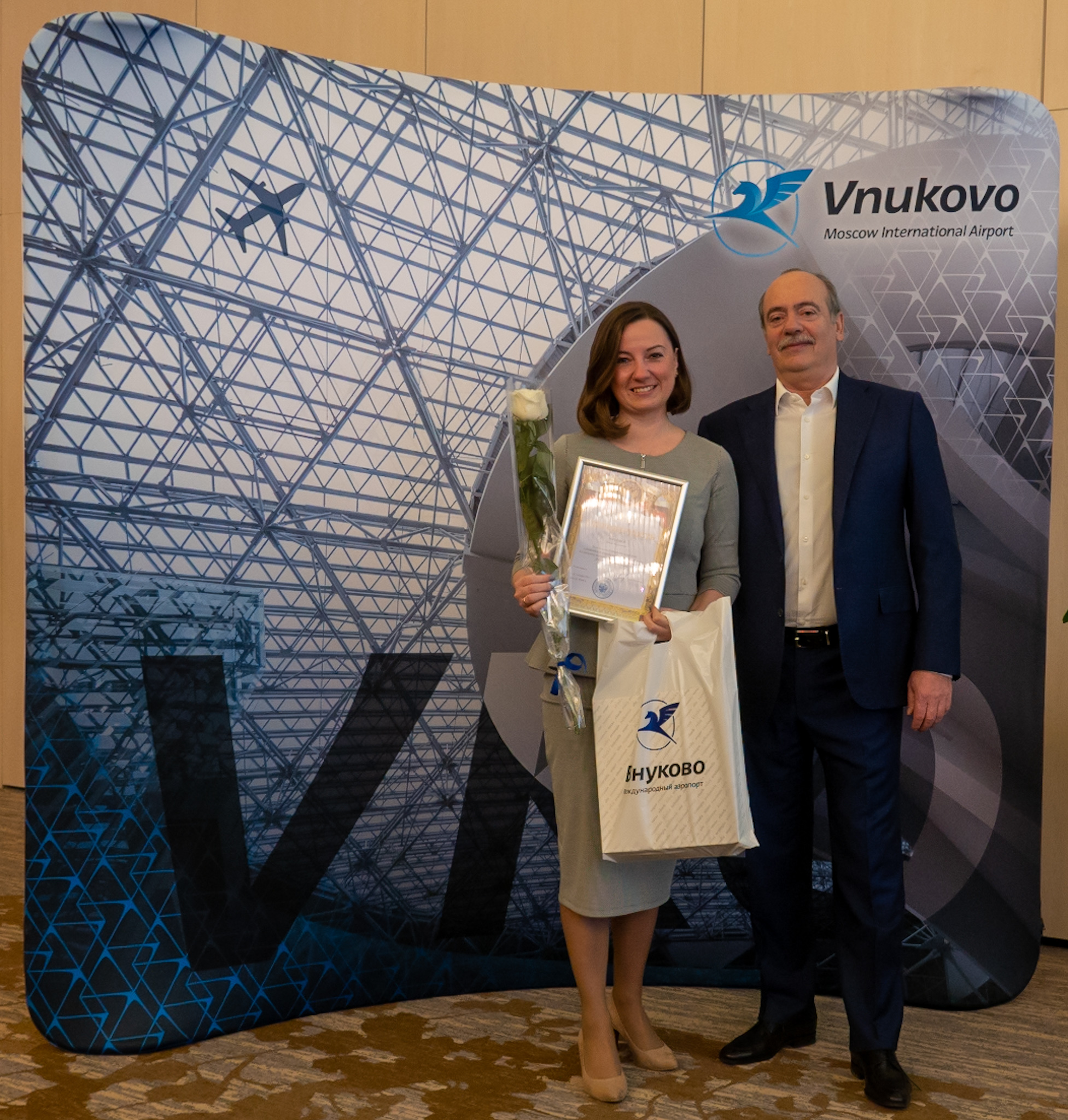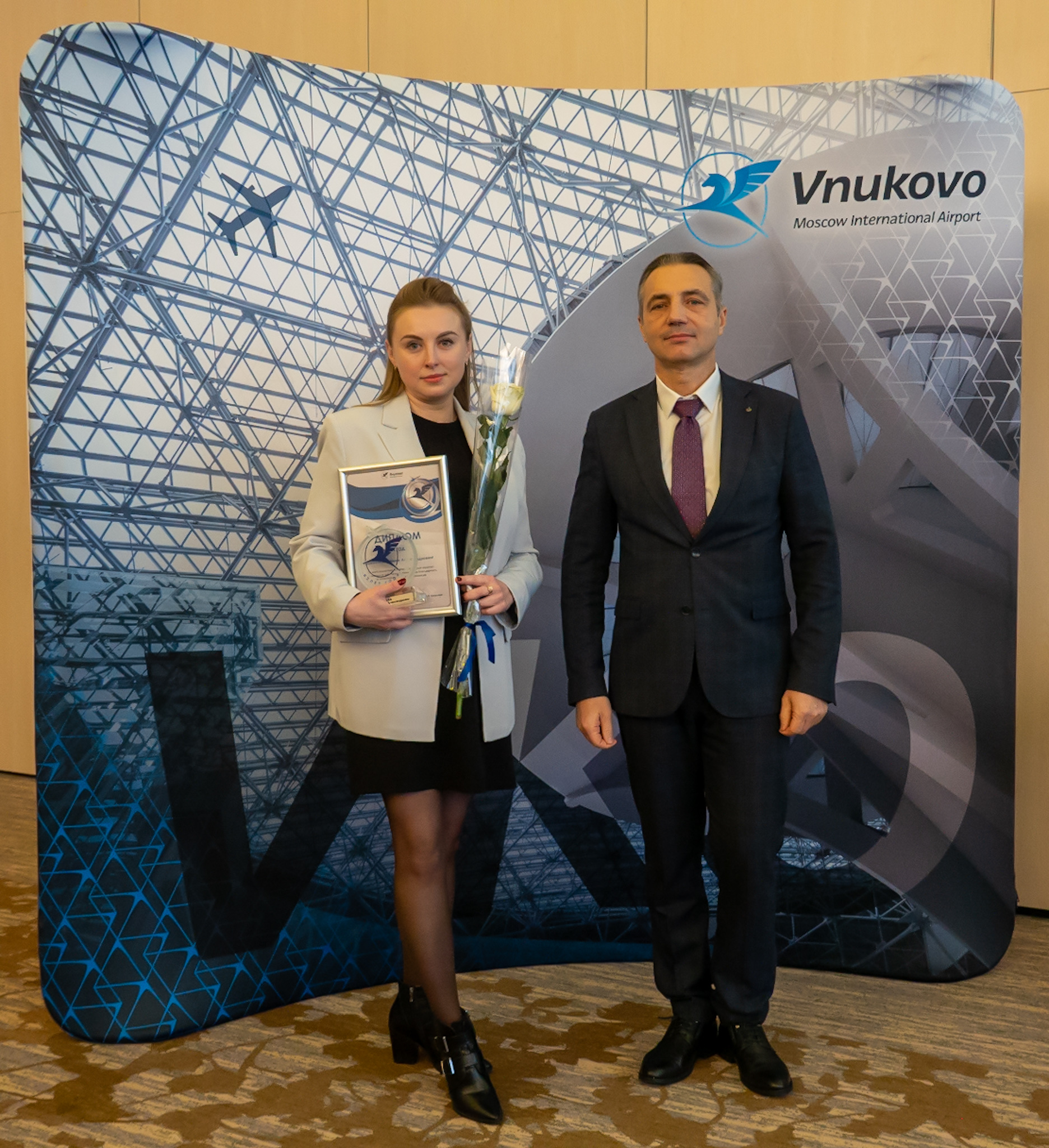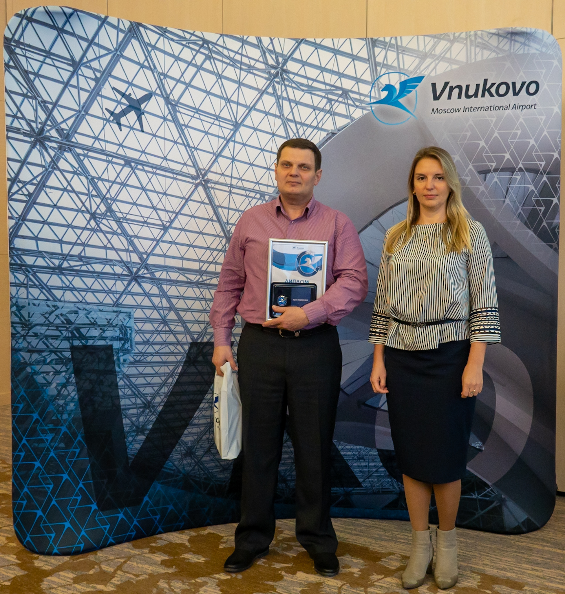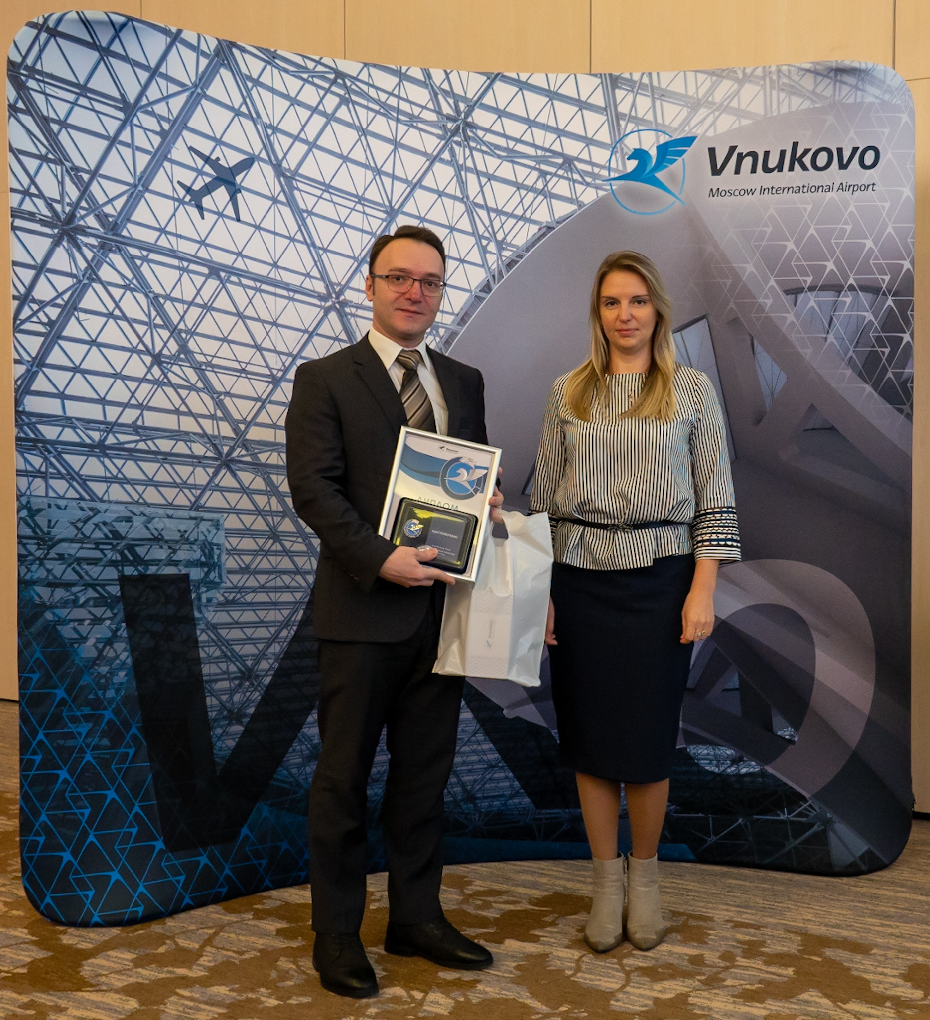 Пятый год подряд руководство Международного аэропорта Внуково поощряет главной корпоративной наградой «Взлет года» работников, которые помогают предприятию добиваться стратегических целей: внедряют новые технологии, проводят масштабные реорганизации, способствуют достижению положительного экономического эффекта на авиапредприятии. Корпоративную стелу «Взлет года», почетный диплом и памятный подарок каждому победителю вручил первый заместитель генерального директора АО «Международный аэропорт «Внуково» Дмитрий Ерзакович.