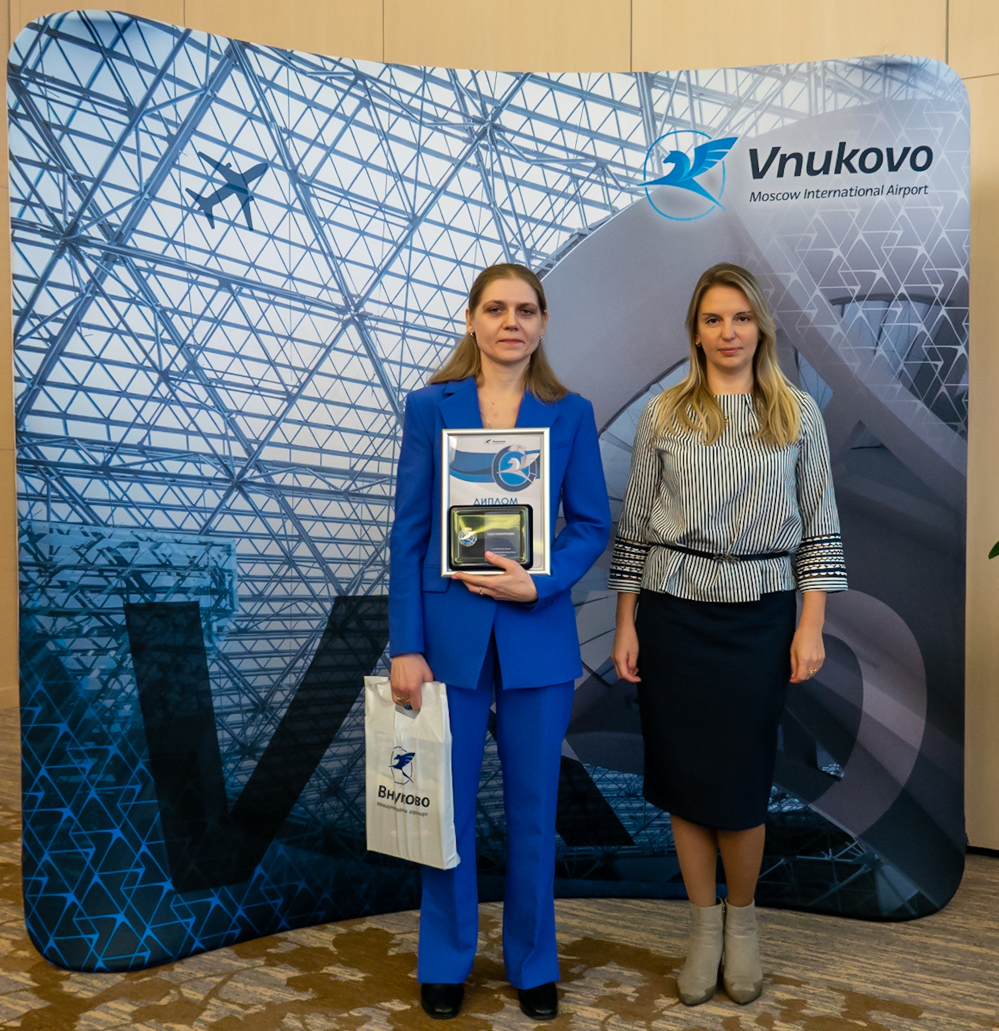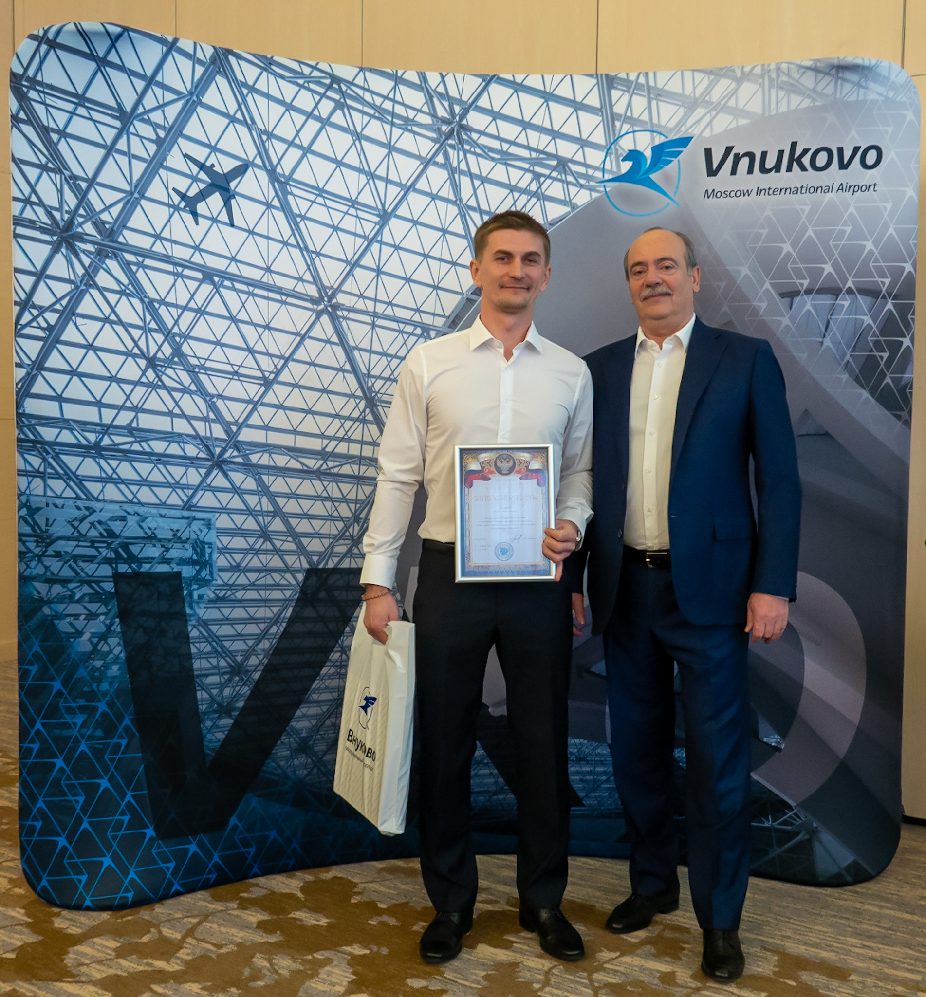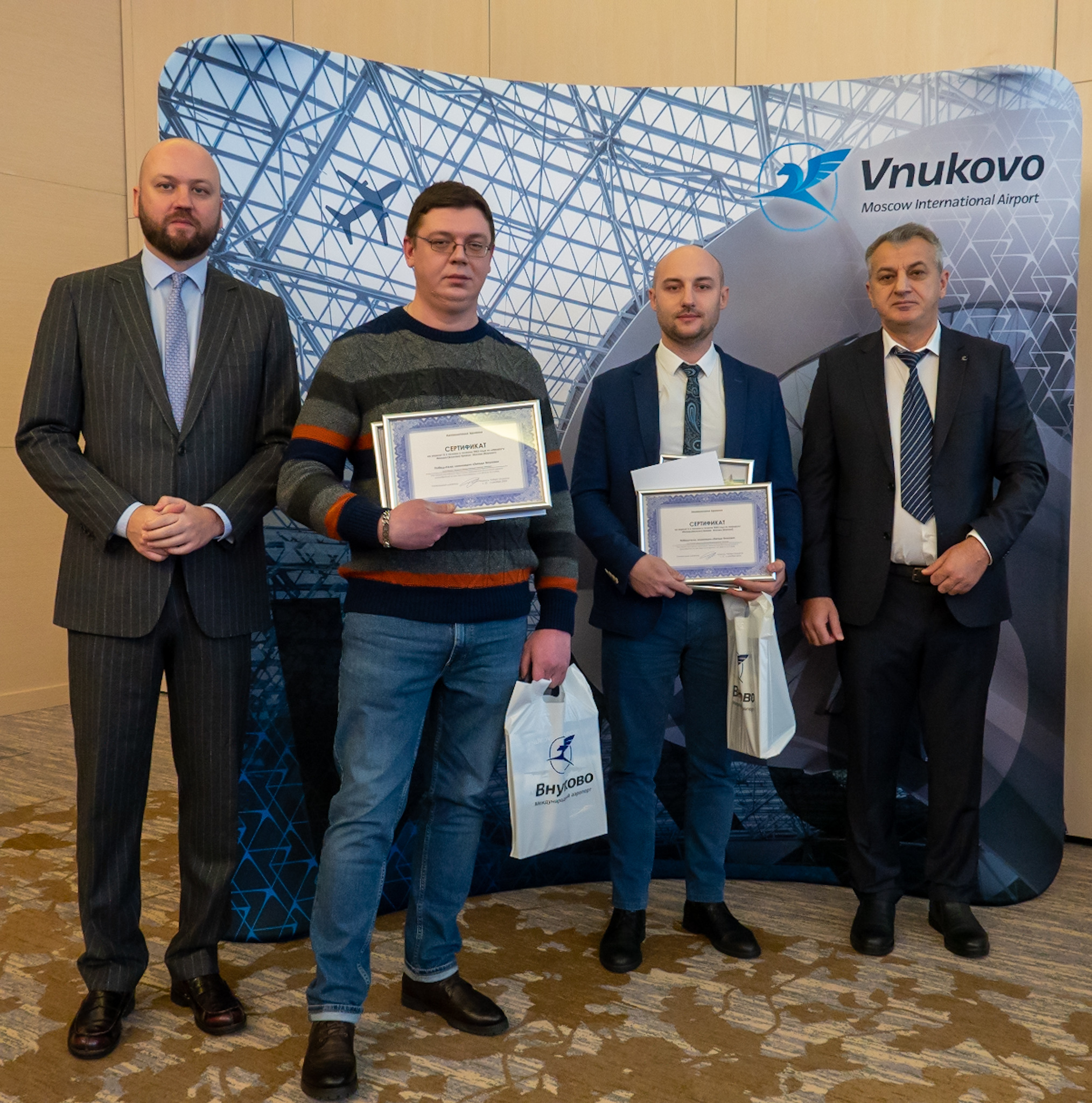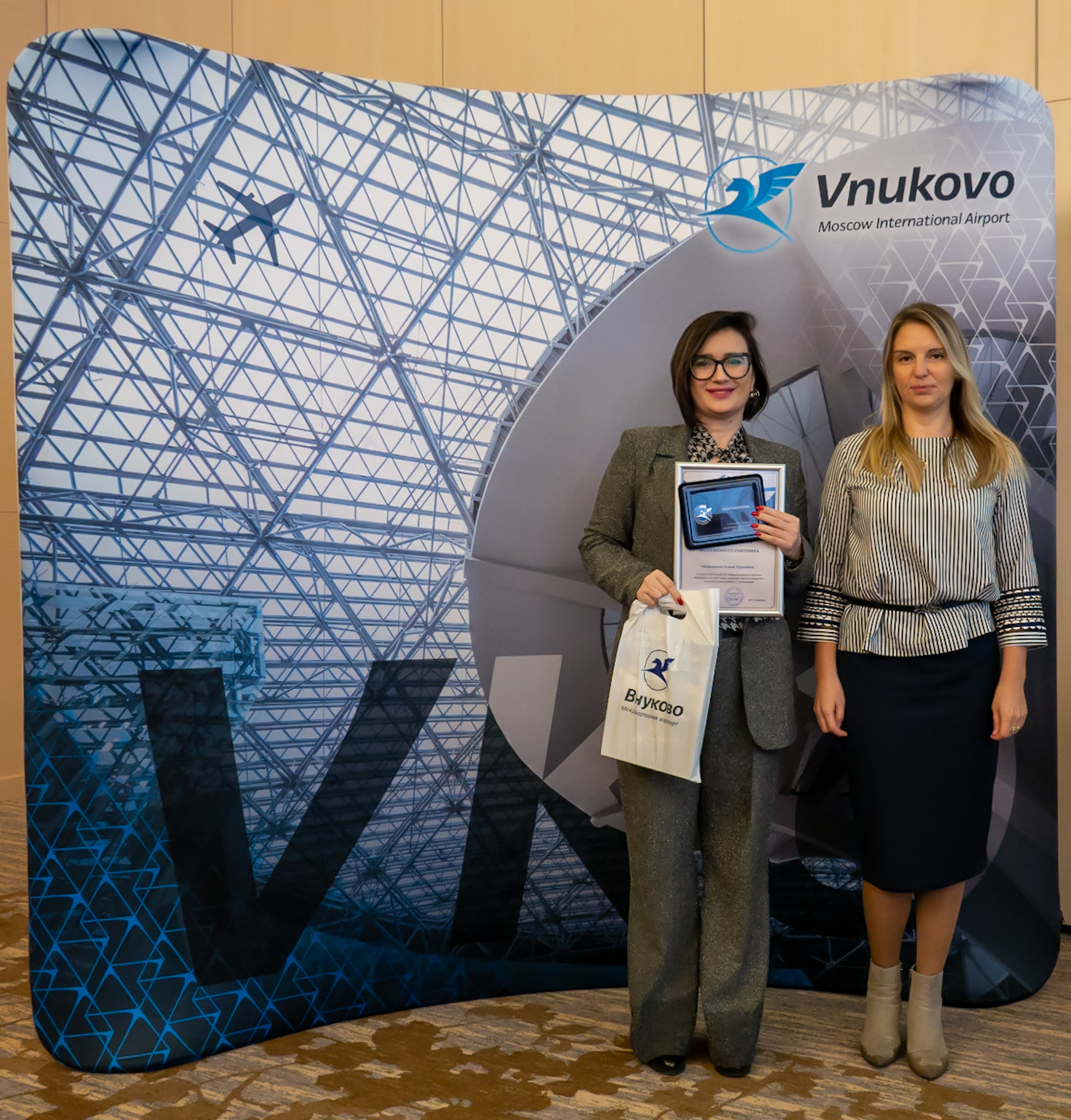 Пятый год подряд руководство Международного аэропорта Внуково поощряет главной корпоративной наградой «Взлет года» работников, которые помогают предприятию добиваться стратегических целей: внедряют новые технологии, проводят масштабные реорганизации, способствуют достижению положительного экономического эффекта на авиапредприятии. Корпоративную стелу «Взлет года», почетный диплом и памятный подарок каждому победителю вручил первый заместитель генерального директора АО «Международный аэропорт «Внуково» Дмитрий Ерзакович.