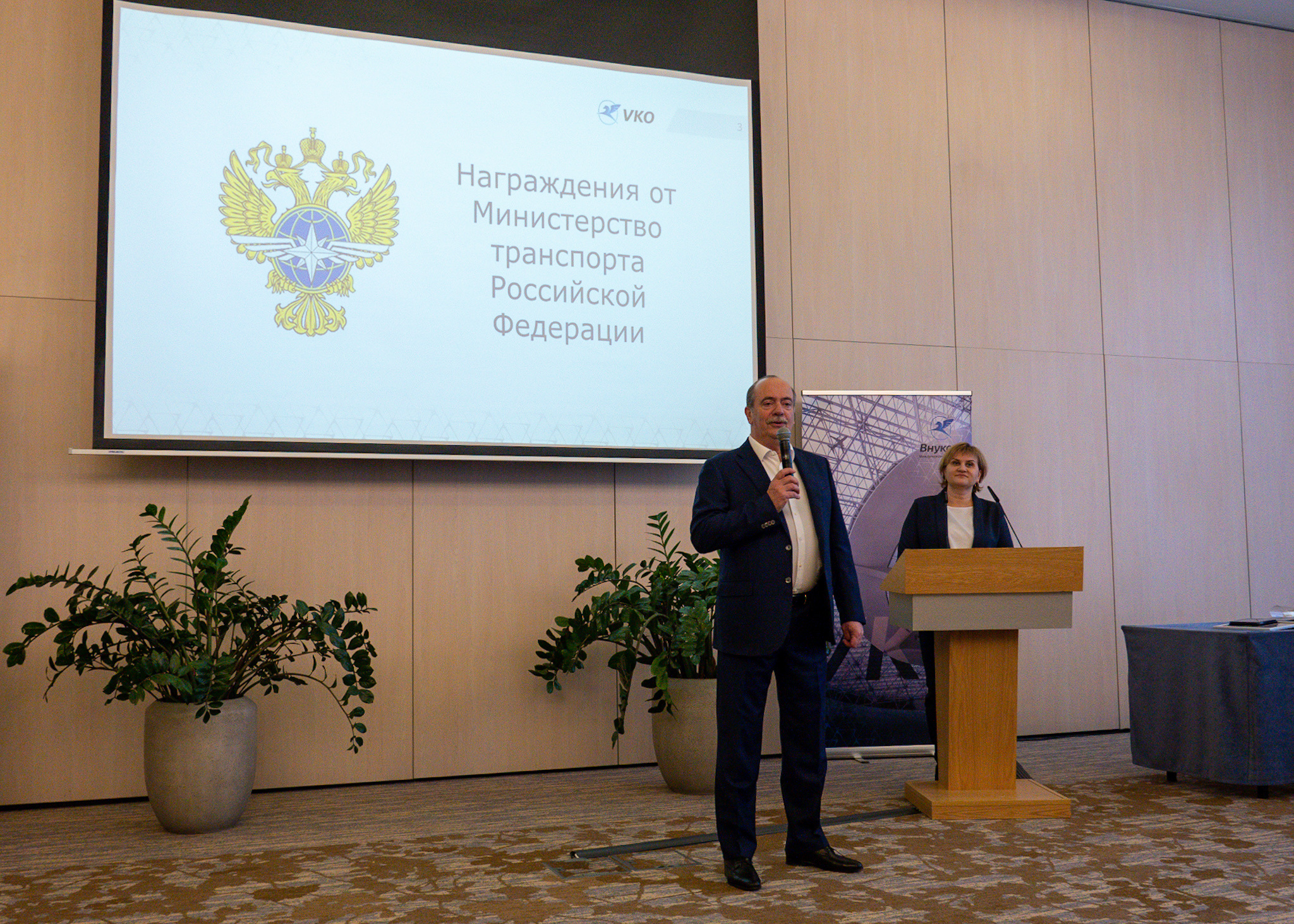 Открывая церемонию, Михаил Грейдин, заслуженный работник транспорта Российской Федерации поздравил всех лауреатов и отметил, что благодаря труду сотрудников Внуково, аэропорт работает в штатном режиме.