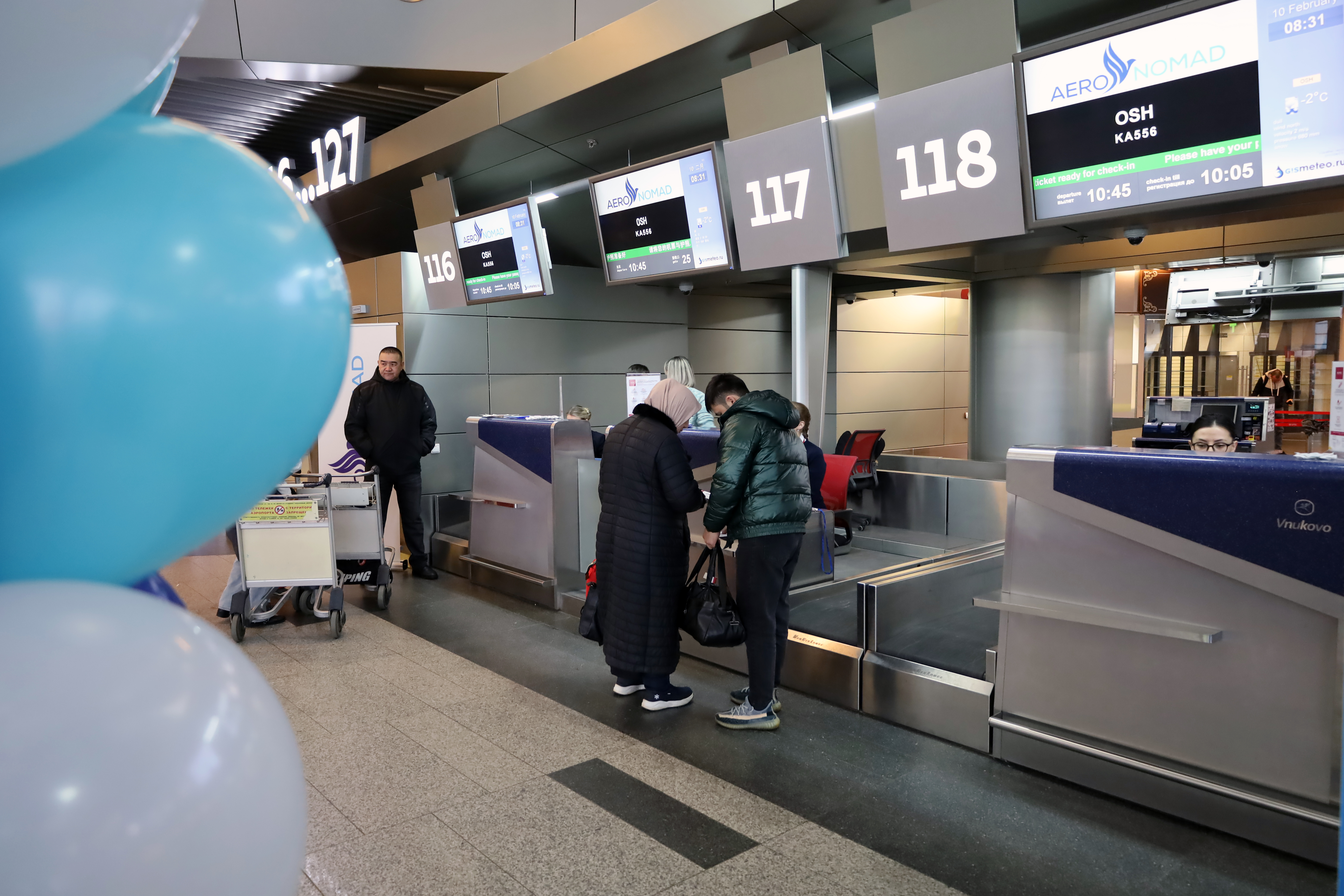 10 февраля новый партнер Международного аэропорта Внуково – авиакомпания «Аэро Номад Эйрлайнс» открыла новый рейс (КА-555/556) по маршруту Ош – Москва (Внуково) – Ош.