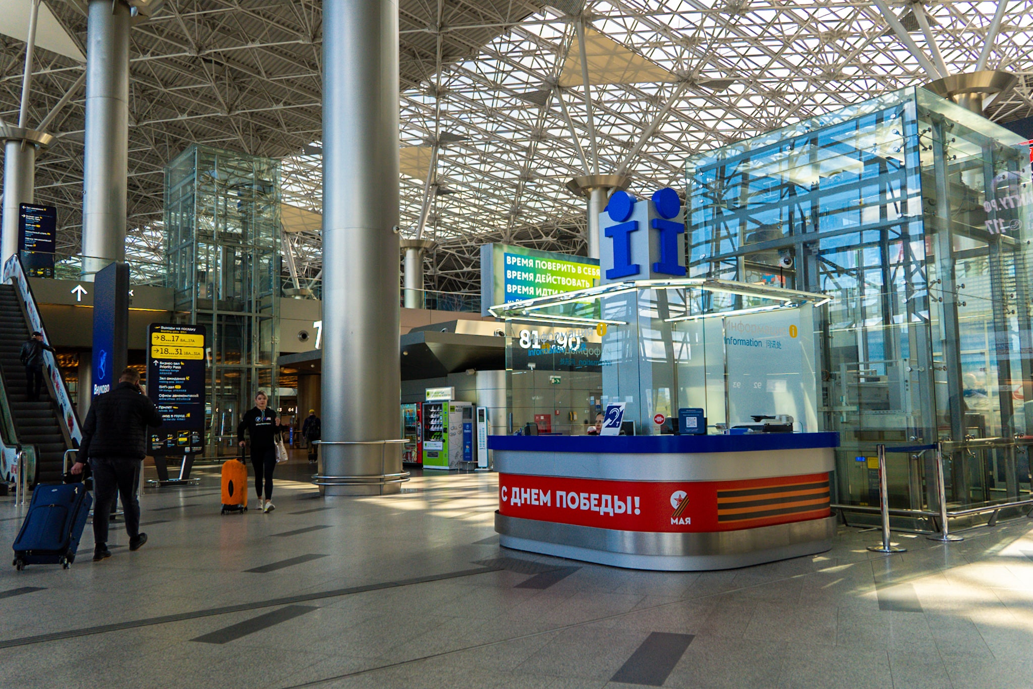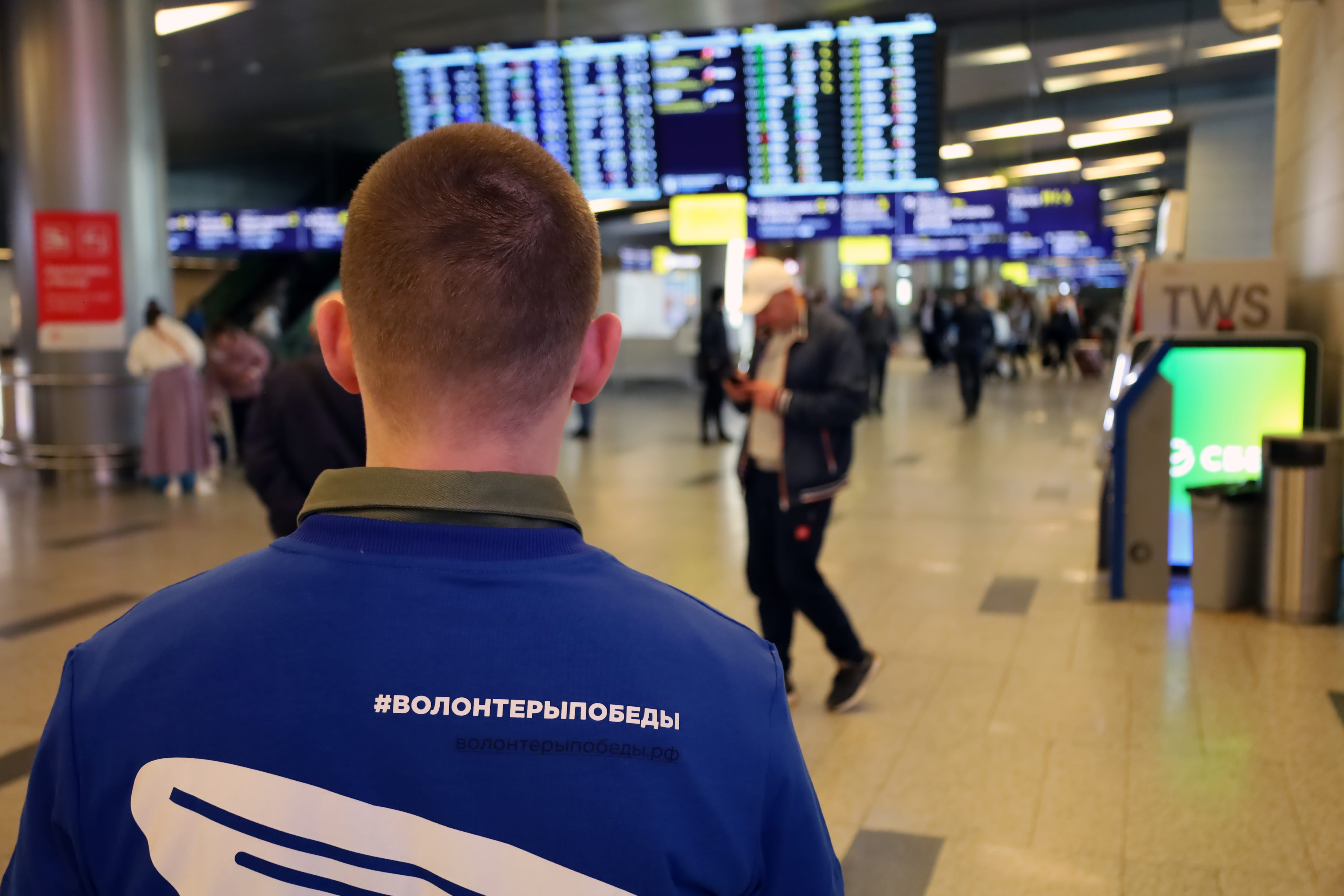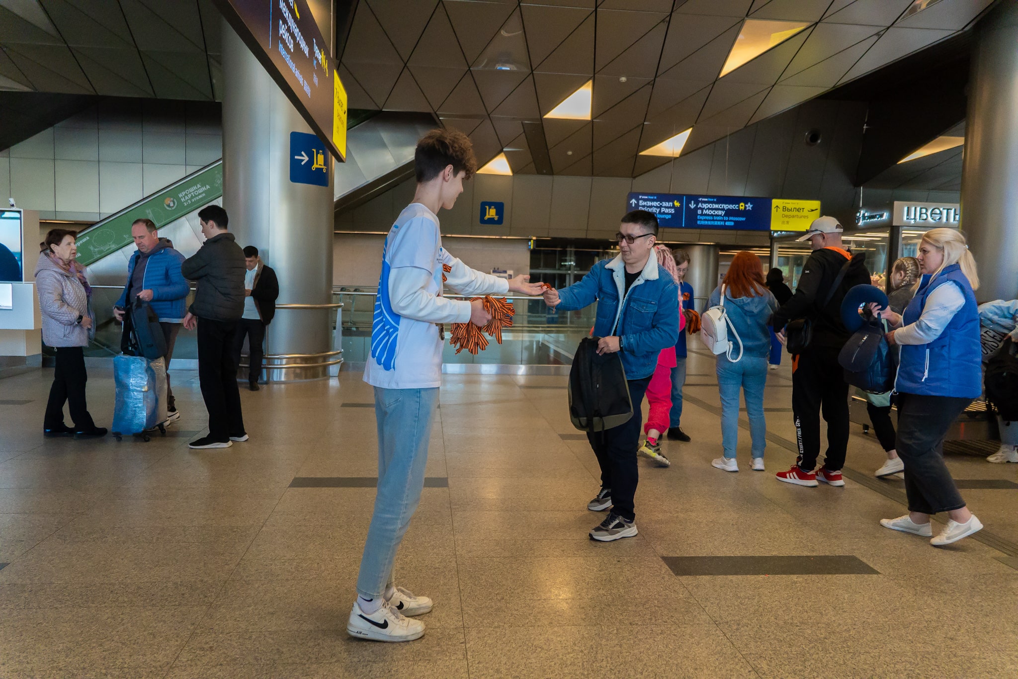 В терминале А сотрудники аэропорта Внуково и представители Всероссийского общественного движения «Волонтеры Победы» раздали всем желающим Георгиевские ленточки.