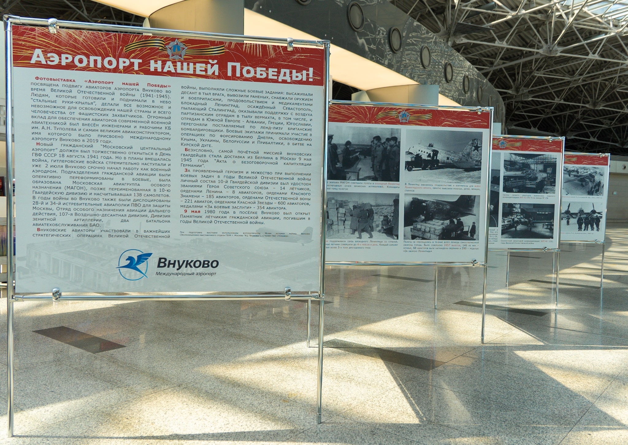 По традиции на территории аэропорта Внуково открылась выставка «Аэропорт нашей Победы». Это фотопроект, приуроченный ко Дню Победы в Великой Отечественной войне, посвященный авиаторам аэропорта Внуково, которые делали все возможное для освобождения нашей страны и всего человечества от фашистских захватчиков. Посетить экспозицию можно на 3 этаже терминала А до конца мая, вход для всех желающих свободный.