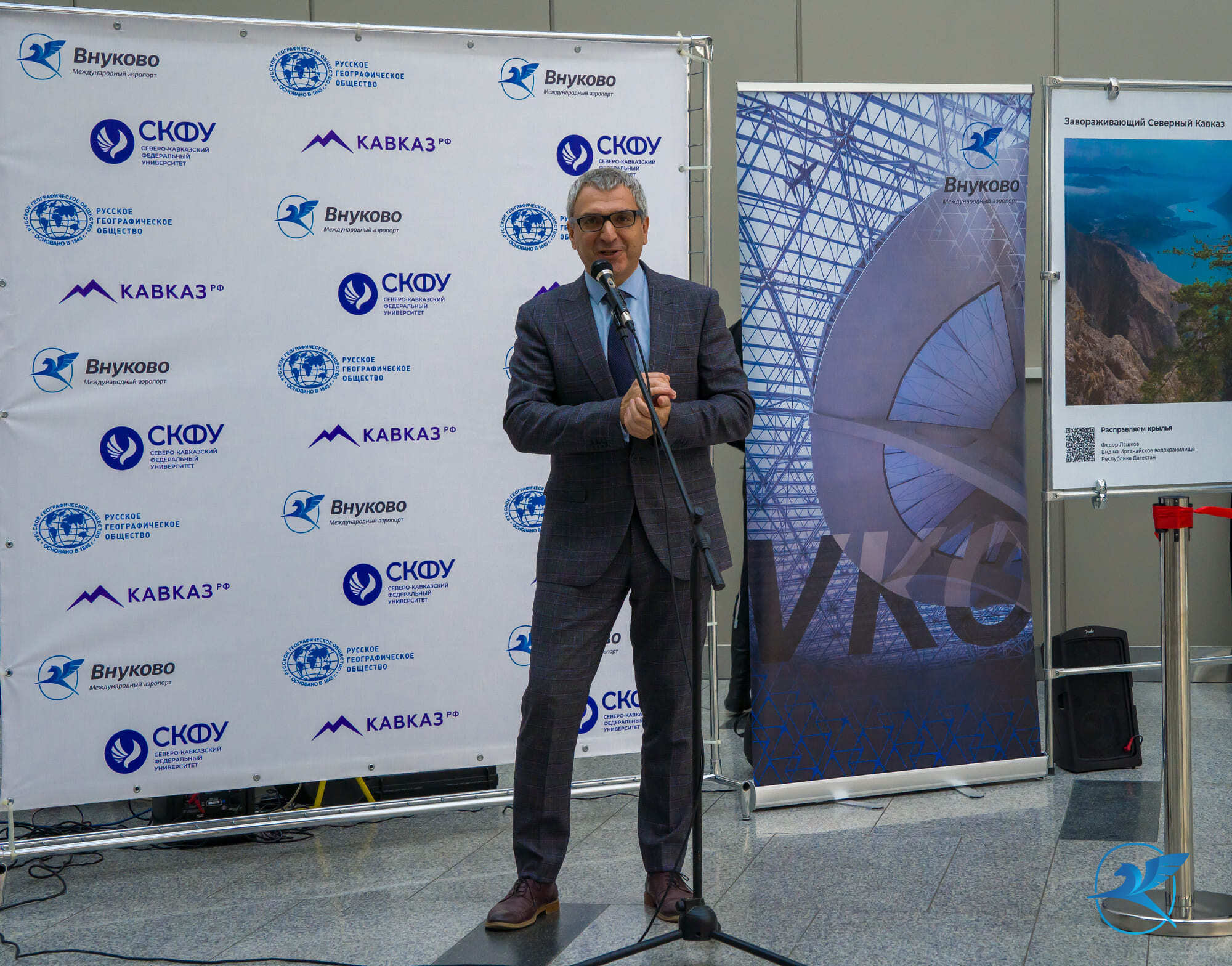 Ректор СКФУ, председатель отделения Русского Географического общества в Ставропольском крае Дмитрий Беспалов подчеркнул: «Мы подобрали для гостей выставки самые необычные ракурсы, раскрывающие многообразие Северного Кавказа. Наш регион действительно обладает завораживающей магией, неисчерпаемым культурным, историческим, туристическим потенциалом. Уверены, что благодаря такому партнерскому проекту с аэропортом Внуково большое количество людей в нашей стране смогут увидеть Северный Кавказ».