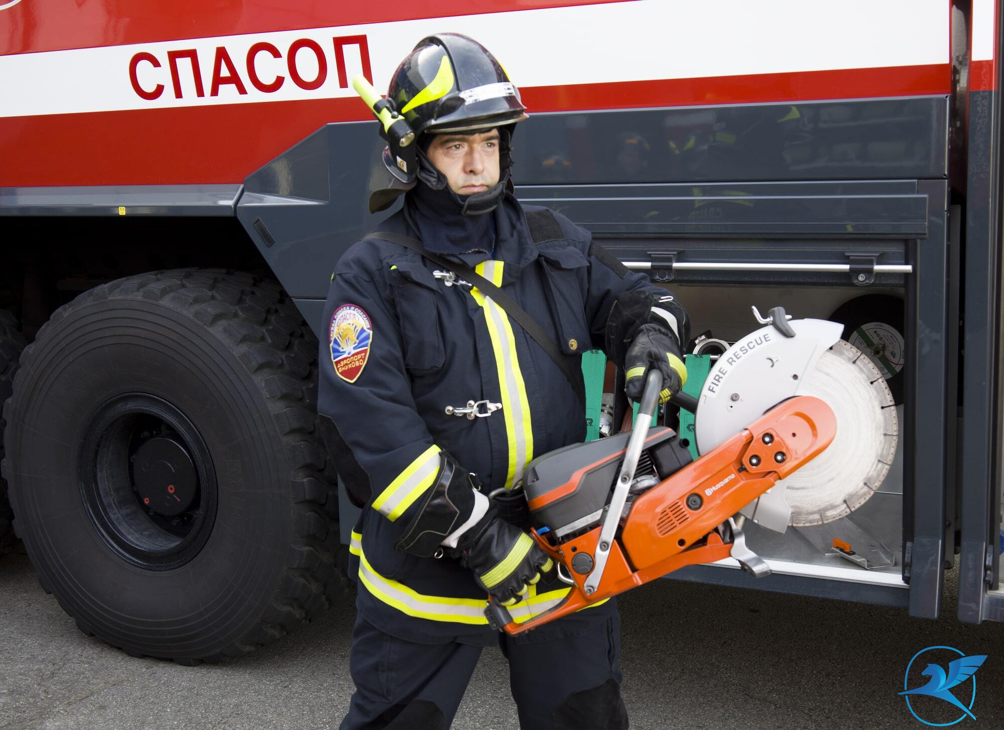 Технику на осмотр представили начальник аэродромной службы Михаил Белоусов и начальник СПАСОП Александр Минаев.