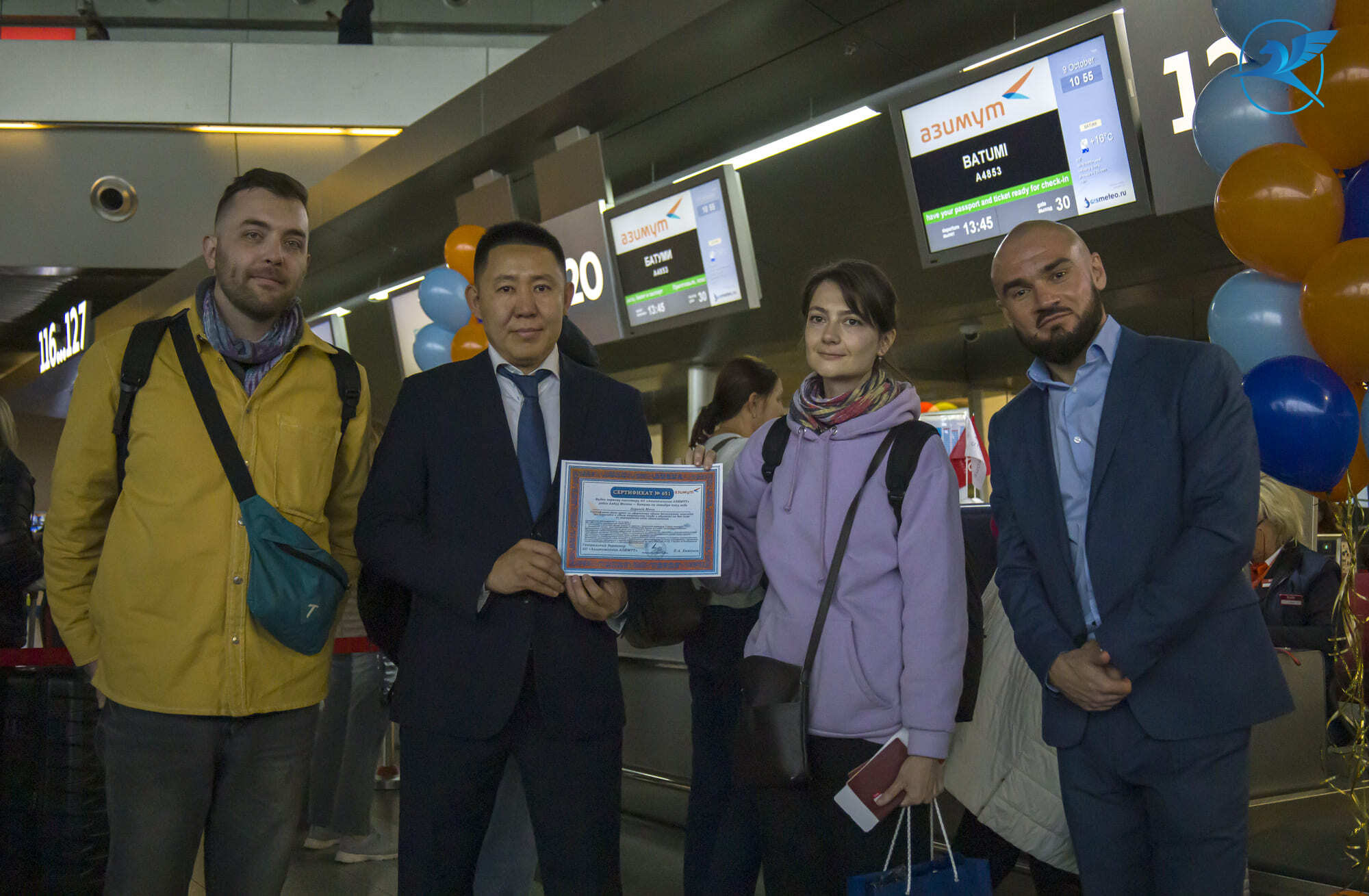 По традиции пассажиры, которые первыми приобрели авиабилеты на новый рейс, получили в подарок от авиаперевозчика сертификаты на перелет. В Международном аэропорту Внуково в ходе торжественной регистрации на рейс А4853 (Москва — Батуми) сертификат от авиакомпании «Азимут» и памятные подарки от аэропорта получила Юлия Ларина. Первым пассажиром рейса А4854 (Батуми — Москва) стал Евгений Меркушев.