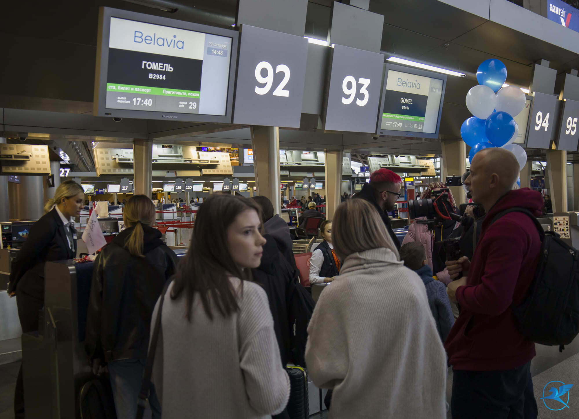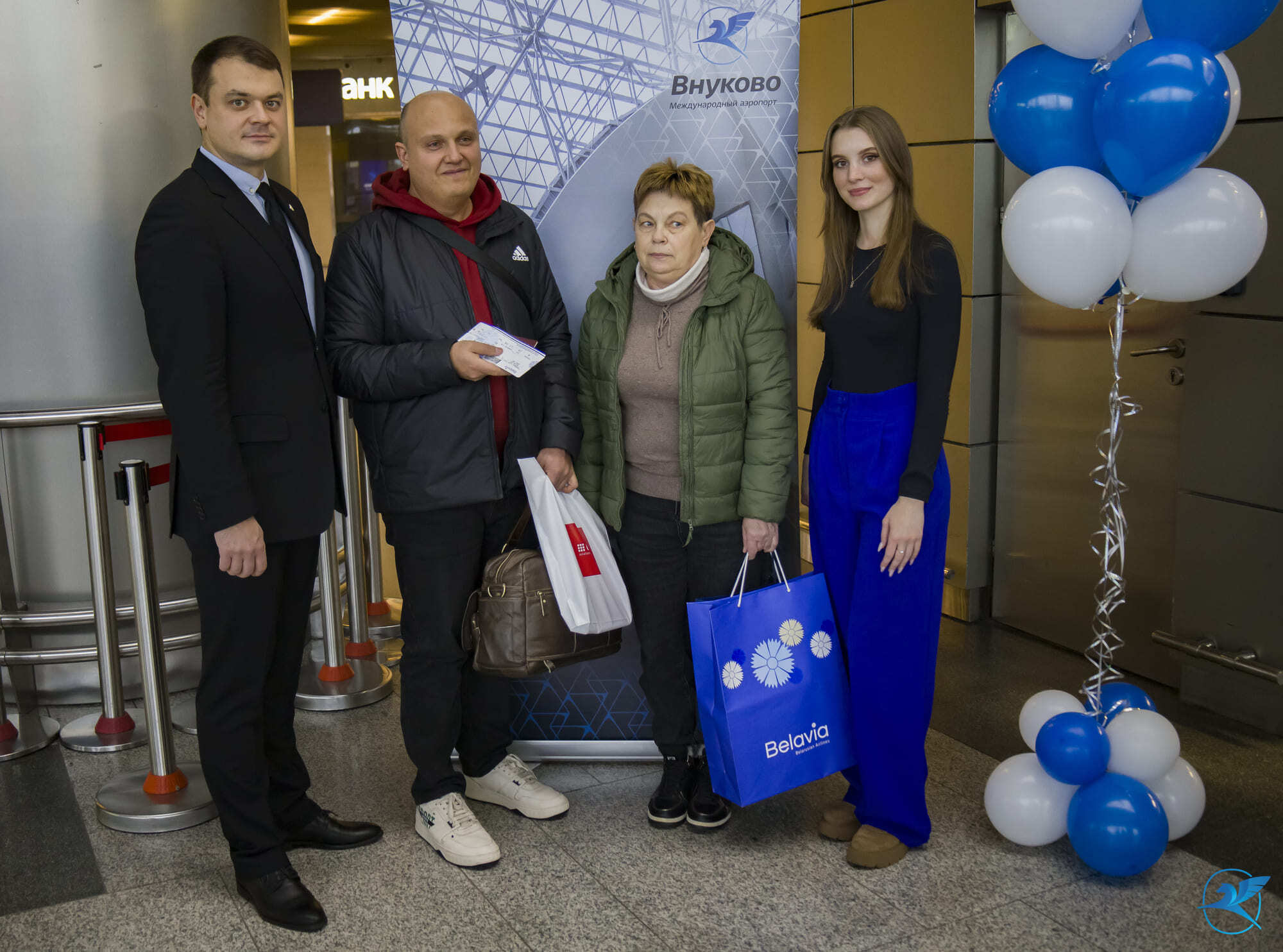 В знак запуска нового направления стойки регистрации авиакомпании «Белавиа» в Международном аэропорту Внуково были празднично украшены, а первый пассажир рейса B2-984 (Москва-Гомель) получил памятные подарки от аэропорта, авиаперевозчика и оператора наземного обслуживания полного цикла UTG Aviation Services.