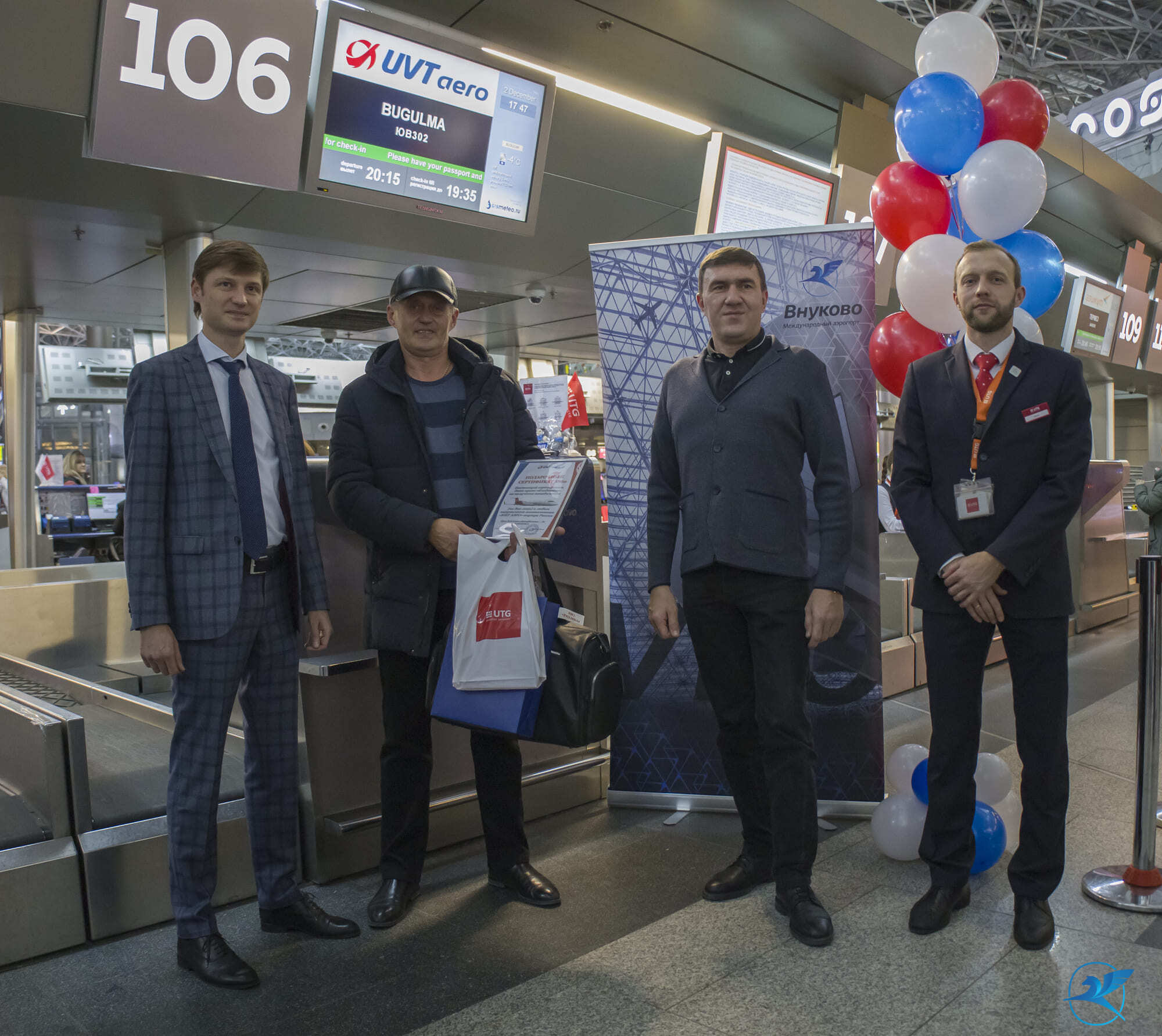 2 декабря авиакомпания Республики Татарстан UVT aero перевела регулярные рейсы в аэропорт Внуково. В этот день состоялась торжественная церемония запуска полетной программы, первый пассажир рейса ЮВ-302 Москва (Внуково) — Бугульма получил памятный подарок от аэропорта Внуково и сертификат на перелет от авиаперевозчика, всем остальным путешественникам подарили сувениры от аэропорта Внуково.