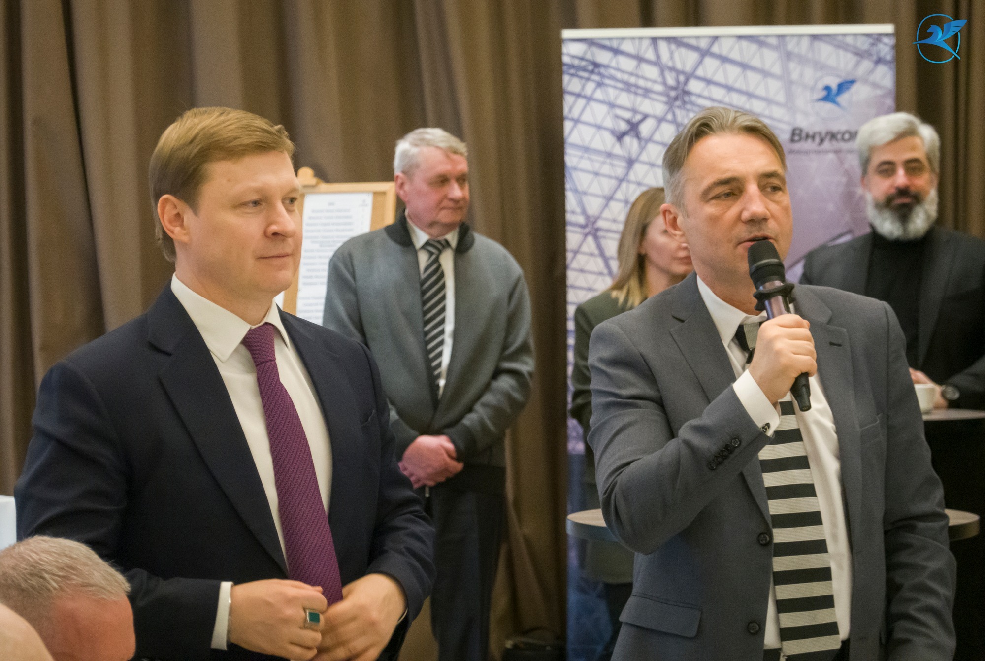 Накануне Дня работника гражданской авиации в гостиничном комплексе Double Tree by Hilton Moscow — Vnukovo Airport состоялась встреча ветеранов авиаотрасли, опытных и молодых руководителей и сотрудников Международного аэропорта Внуково. «Сохраняя традиции, движемся в будущее…» — в дискуссии с таким названием приняли участие генеральный директор ООО «Внуково-управление активами» Андрей Иванов, генеральный директор АО «Международный аэропорт «Внуково» Дмитрий Ерзакович, советник по производству аппарата управления аэропорта Внуково, заслуженный работник транспорта Российской Федерации Михаил Грейдин, генерал-майор авиации запаса, военный летчик I класса, кандидат военных наук, член-корреспондент Российской академии авиации, отличник воздушного транспорта, кавалер ордена Александра Невского Василий Александров, начальник службы эксплуатации технической дирекции аэропорта Внуково Николай Грунцов, заместитель начальника (по АС и ЭР) службы противопожарного и аварийно-спасательного обеспечения полетов (СПАСОП) аэропорта Внуково Никита Яшин и многие другие.