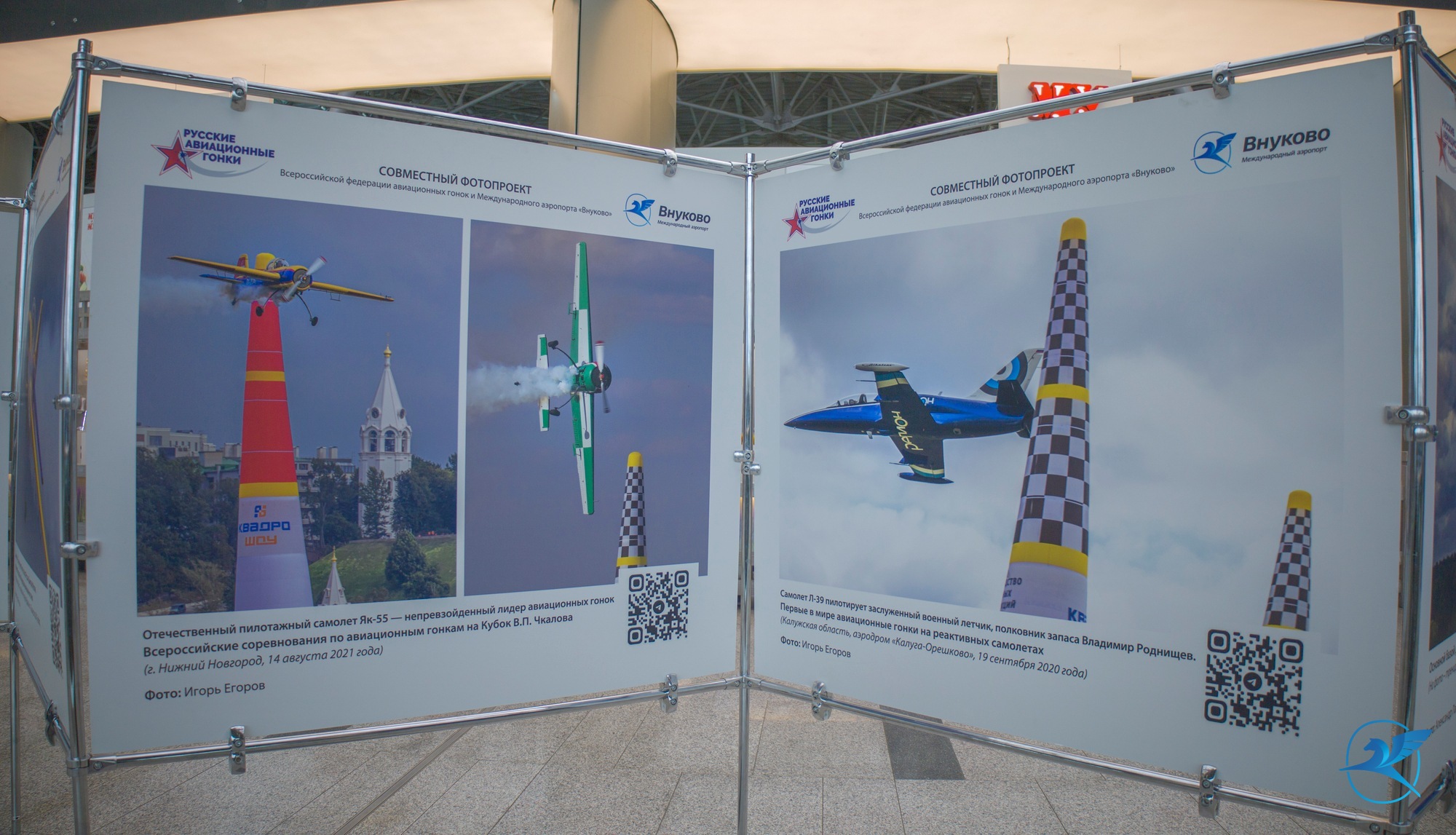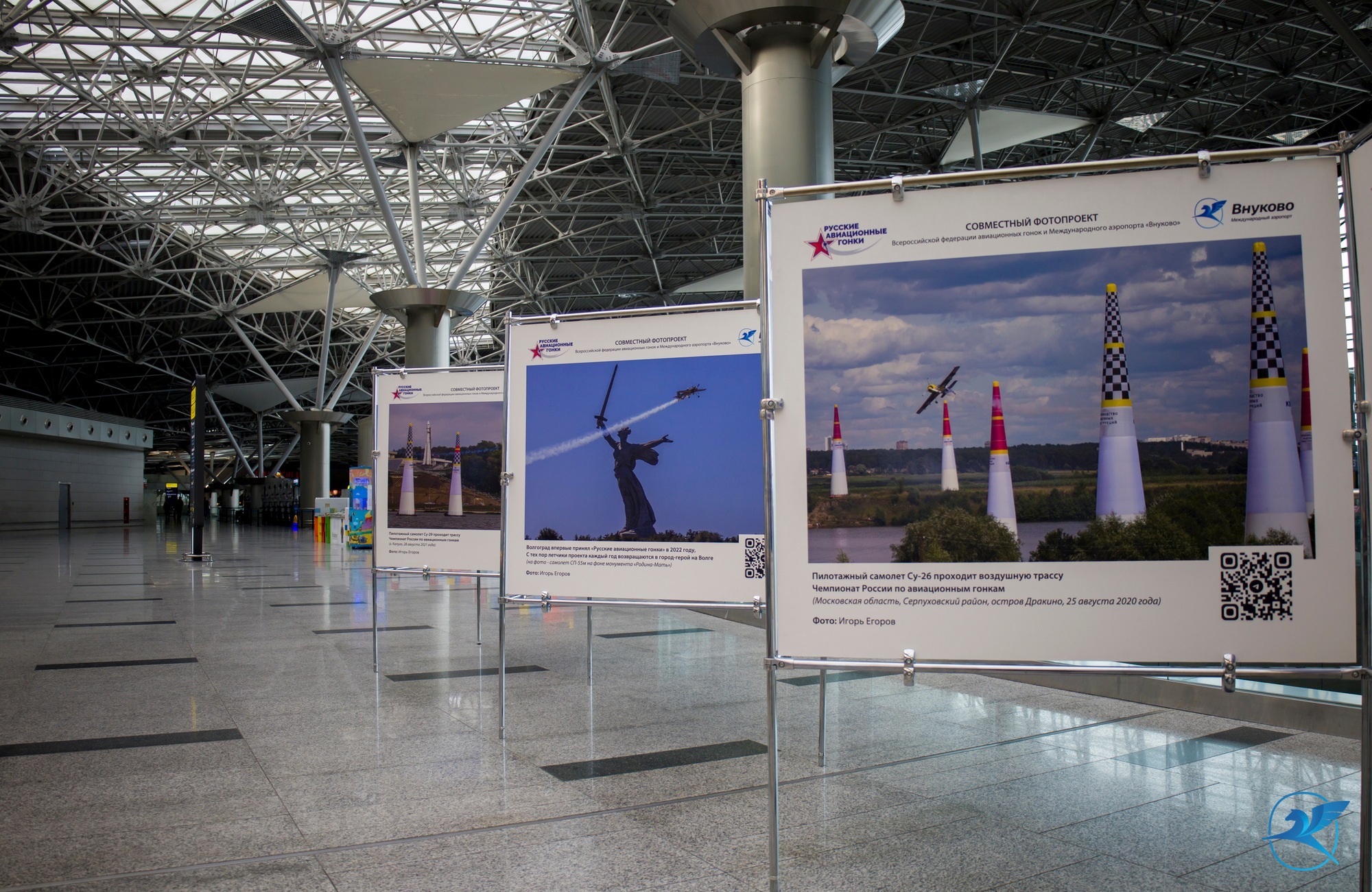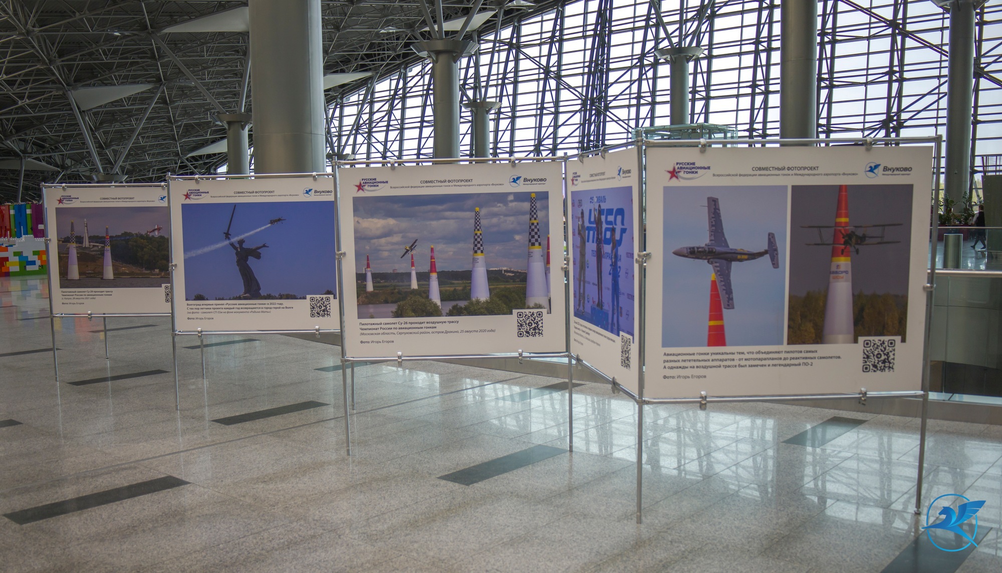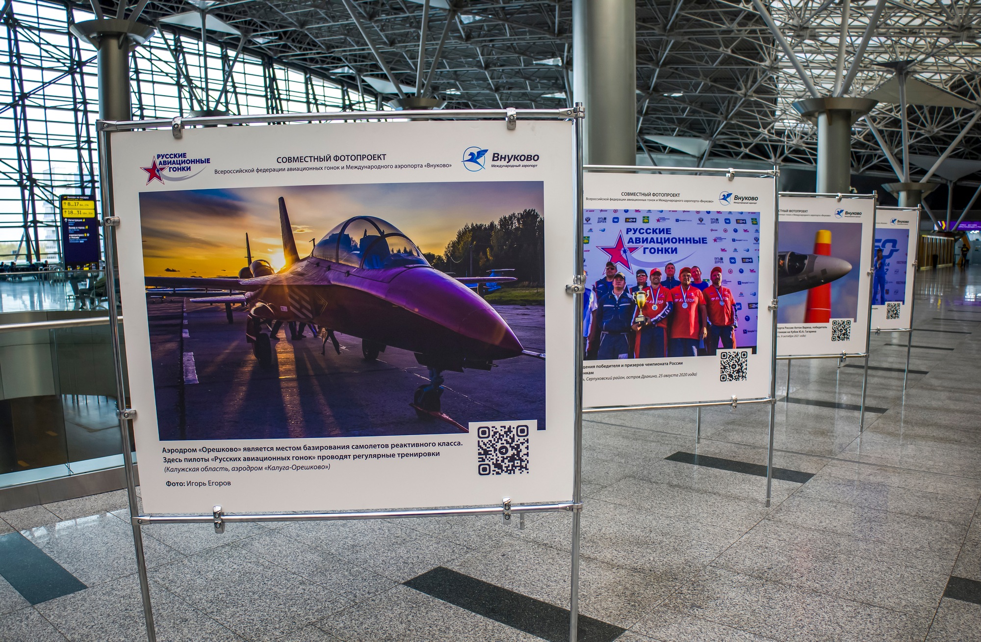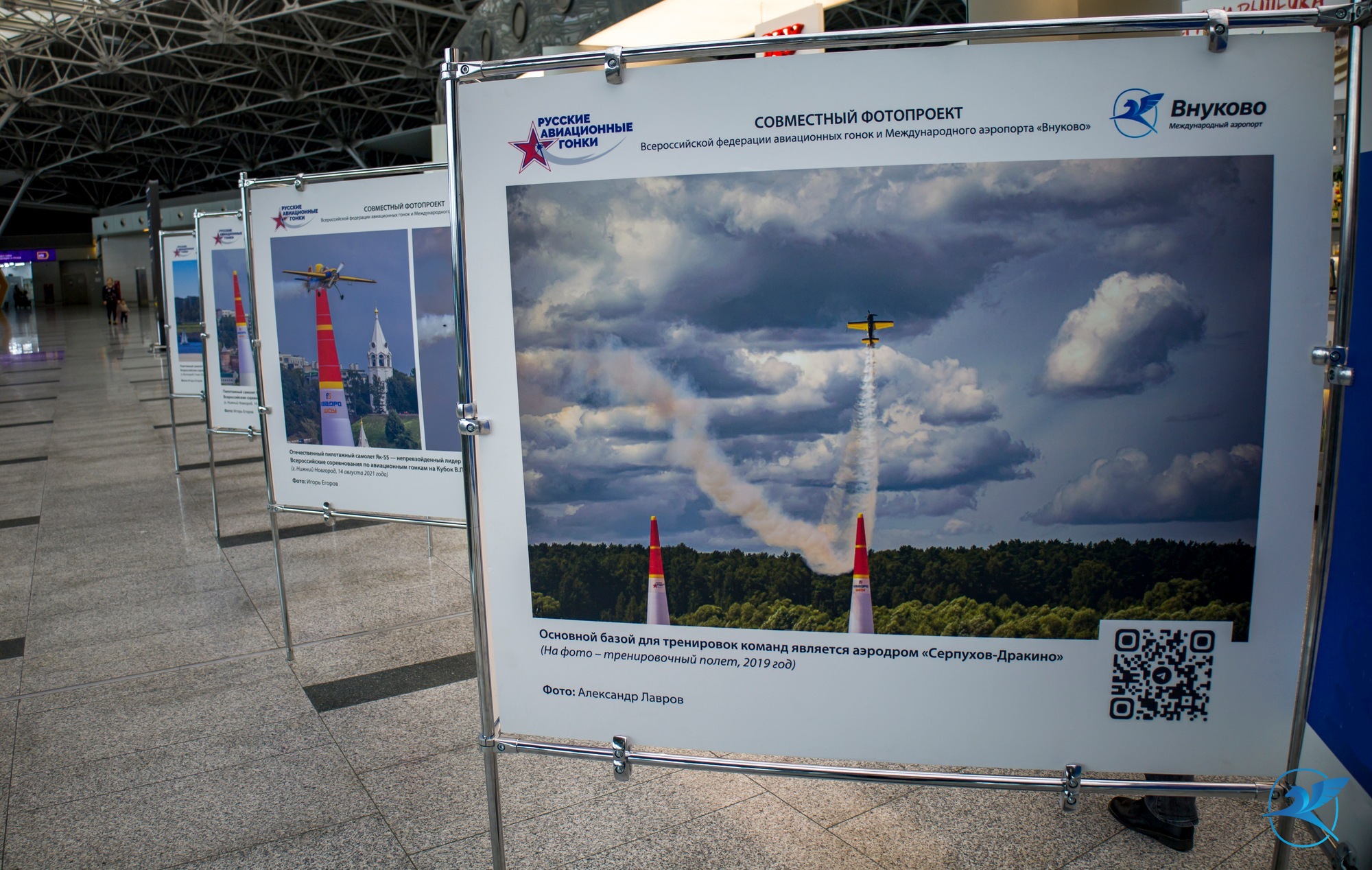 В Международном аэропорту Внуково стартовал совместный проект авиагавани и спортивного проекта «Русские авиационные гонки» — фотовыставка, посвященная российским летчикам.
