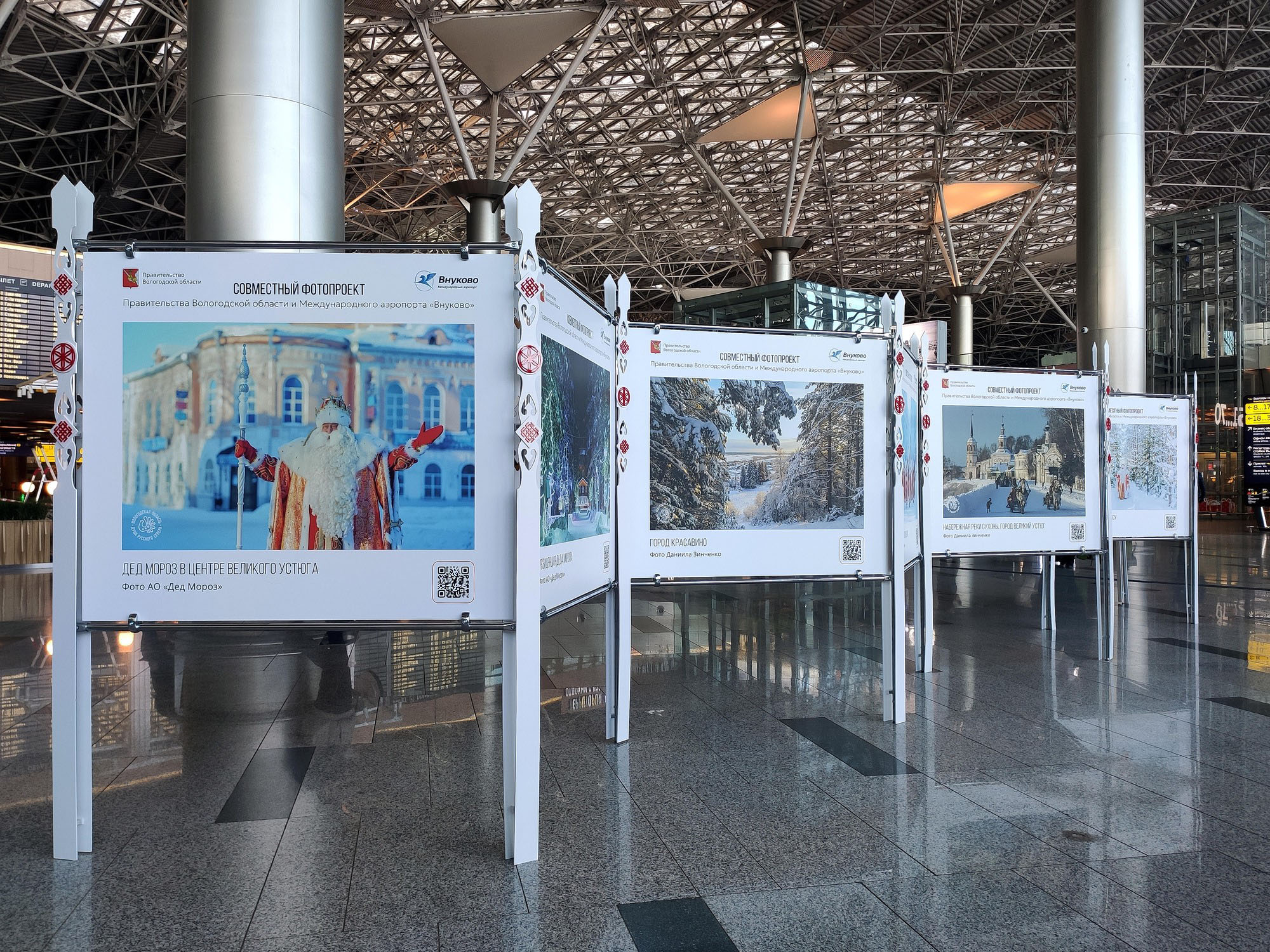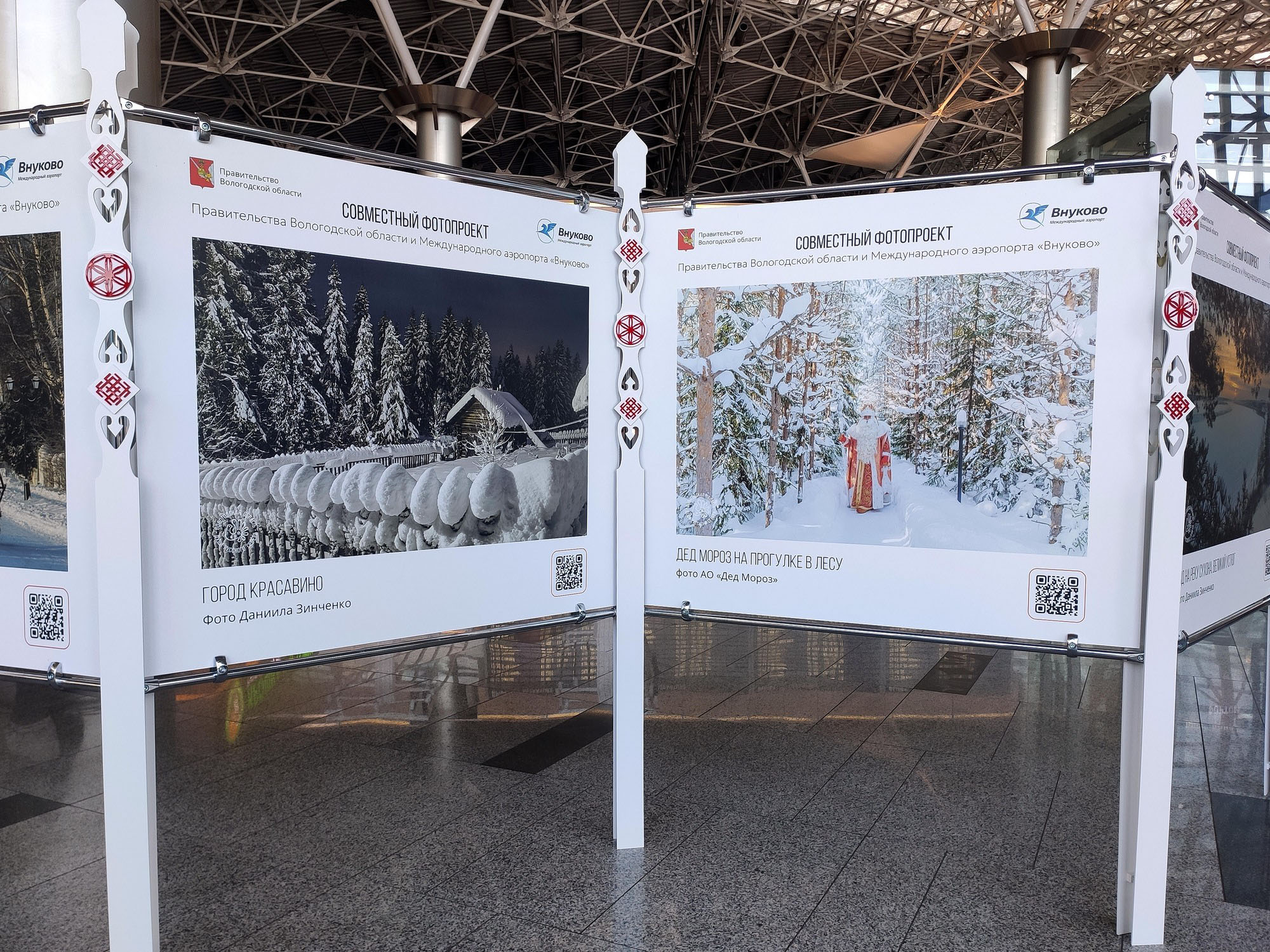 В Международном аэропорту Внуково открылась новая фотовыставка, посвященная зимним красотам Вологодской области. Это уже второй проект аэропорта, который реализован совместно с Правительством Вологодской области. Летнюю экспозицию теперь сменяет зимняя. Заснеженная Вологда, сказочный Великий Устюг, величественный Софийский собор, заиндевевшие берега реки Сухоны и даже северное сияние — всё это на 16 завораживающих снимках вологодских фотографов Даниила Зинченко и АО «Дед Мороз». Отдельное внимание уделено главному зимнему волшебнику страны: на фотографиях запечатлены прогулки Деда Мороза по родному городу и лесу, а также его общение с маленькими помощниками.