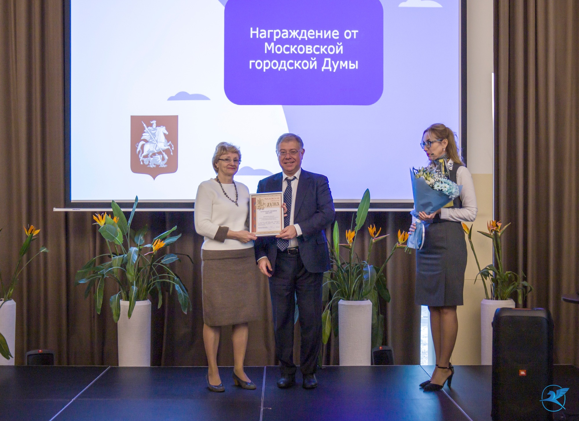 Благодарностью Заместителя Председателя Московской городской Думы были награждены тракторист отдела эксплуатации и ремонта ЗиС службы эксплуатации АО «Международный аэропорт «Внуково» (далее — АО «МАВ») Владимир Кабанов и юрисконсульты административно-правового отдела дирекции по правовым вопросам АО «МАВ» Ольга Березкина и Татьяна Опарина. Награды им вручил Заместитель Председателя Московской городской Думы Степан Орлов.