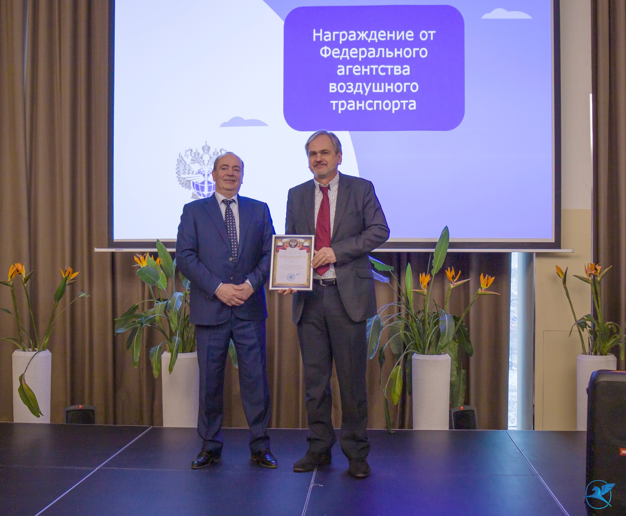 Награды за ключевые достижения «Взлет года» пятерым сотрудникам вручил генерал-майор авиации, заслуженный работник транспорта, кавалер Ордена Александра Невского Василий Александров.