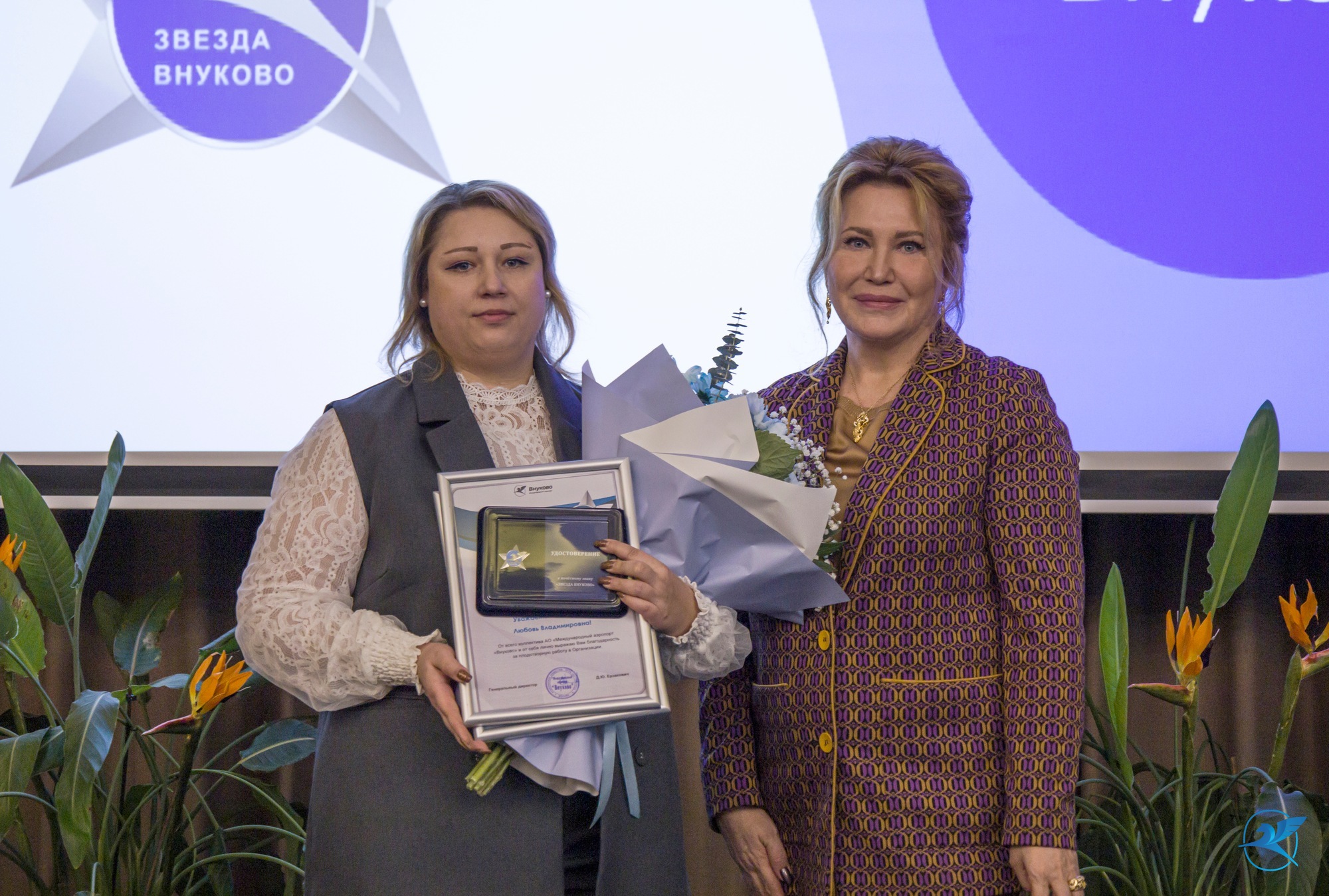 Член совета директоров АО «МАВ», заслуженный работник транспорта РФ Михаил Грейдин вручил Благодарность Мэра Москвы старшему фельдшеру здравпункта МСЧ АО «МАВ» Ольге Фитчиной. Еще 18 сотрудников были удостоены Благодарности руководителя Федерального агентства воздушного транспорта. Затем были вручены корпоративные награды «Звезды Внуково» в номинациях «Лучший наставник», «Восходящая звезда» и «Высший пилотаж».
