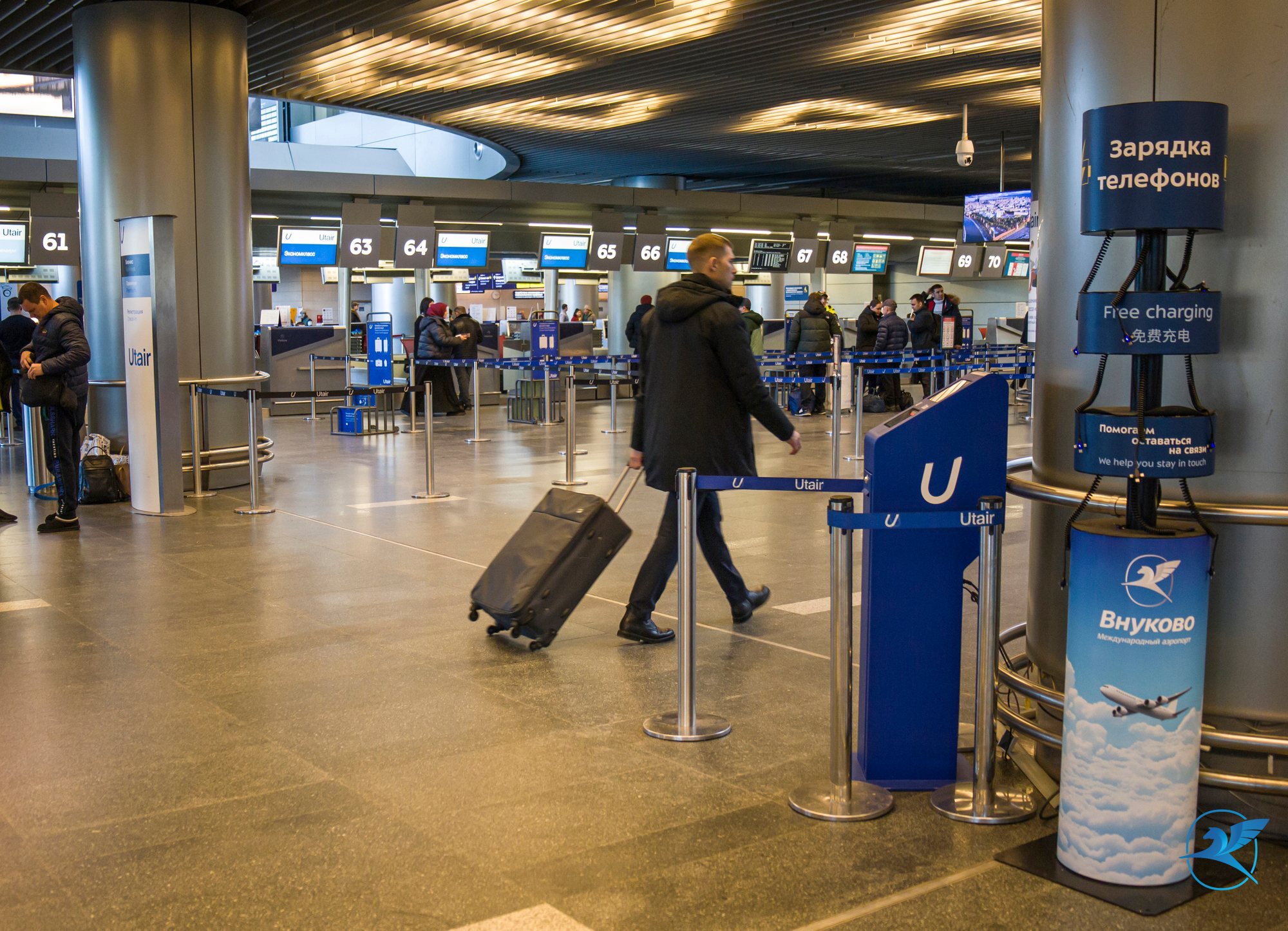 Аэропорт Внуково продолжает совершенствовать свою инфраструктуру, делая акцент на комфорте пассажиров. В терминале А установлены обновленные зарядные станции, которые оборудованы сетевыми адаптерами и кабелями для создания универсальности к подключаемым мобильным устройствам. Пассажиры и посетители аэропорта могут удобно и по-прежнему бесплатно зарядить свои телефоны, планшеты и другие гаджеты.