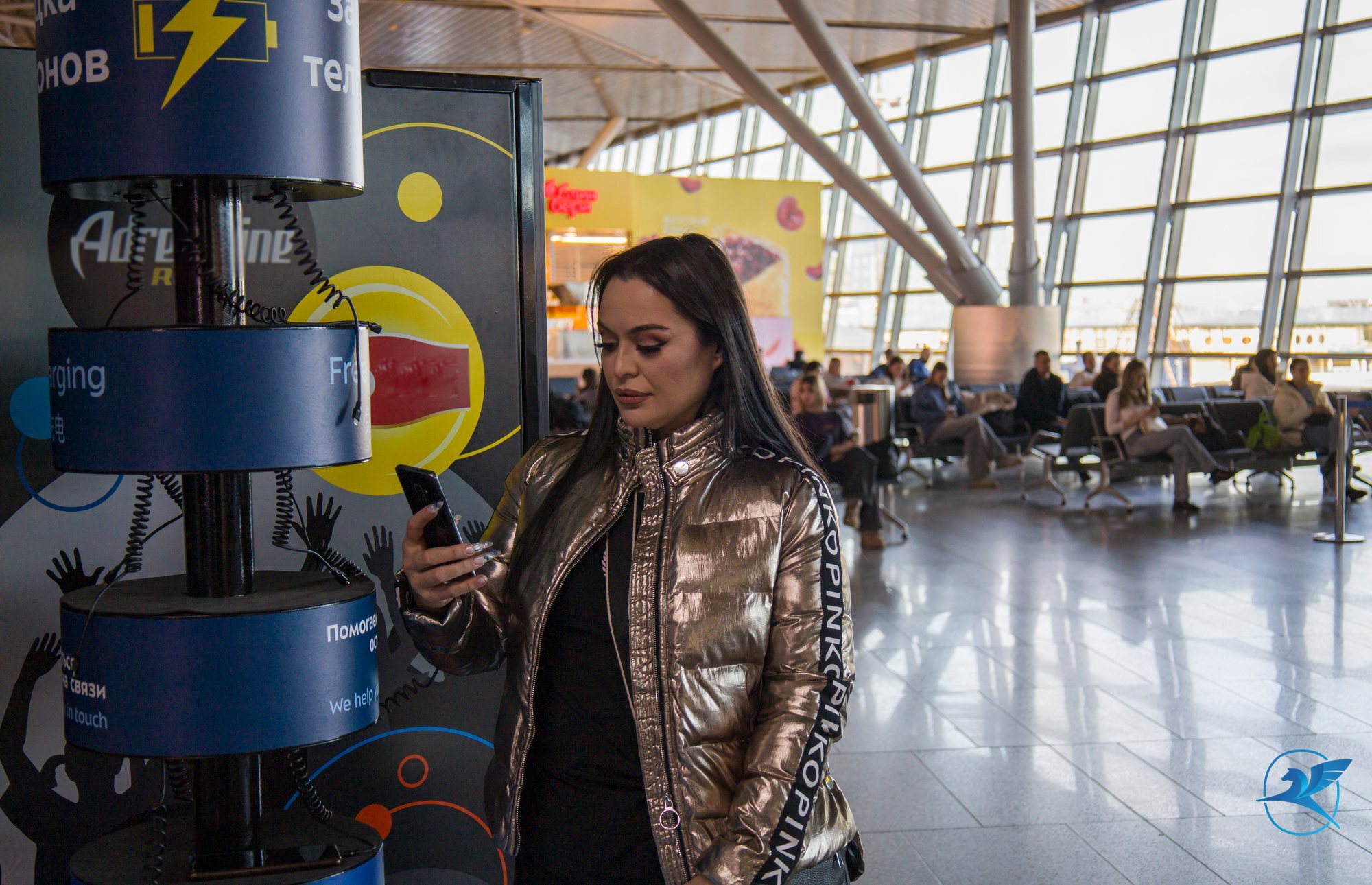 В настоящее время в терминале А установлено 29 станций для зарядки телефонов в напольном и настенном исполнении. Эти современные устройства равномерно распределены по пассажирским зонам, включая зону регистрации, общую зону прилета и стерильные зоны.