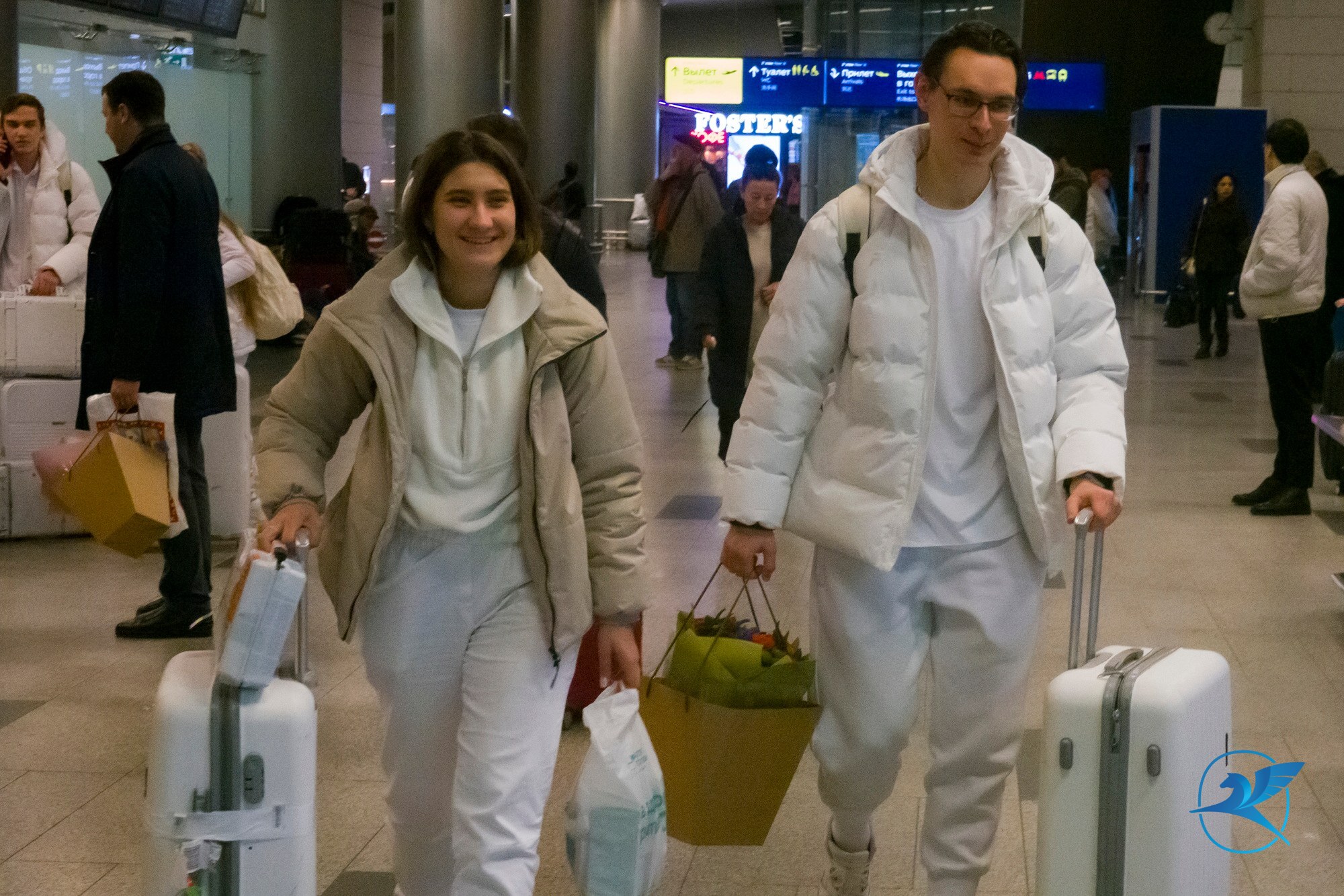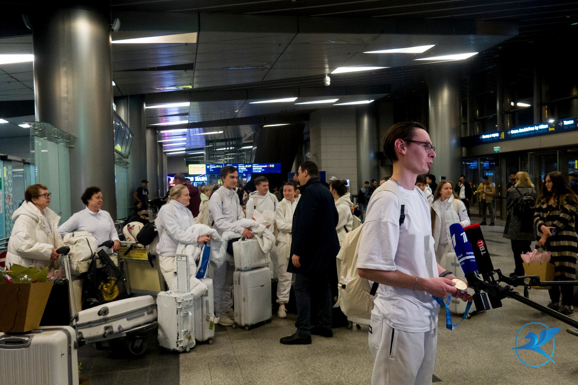 В Международном аэропорту Внуково чемпионов встречали болельщики и журналисты. Спортсмены, в свою очередь, поблагодарили всех за теплый прием и поддержку.