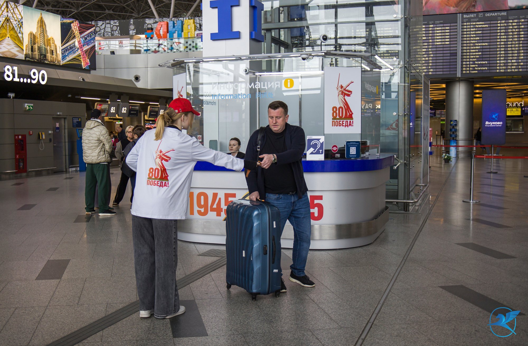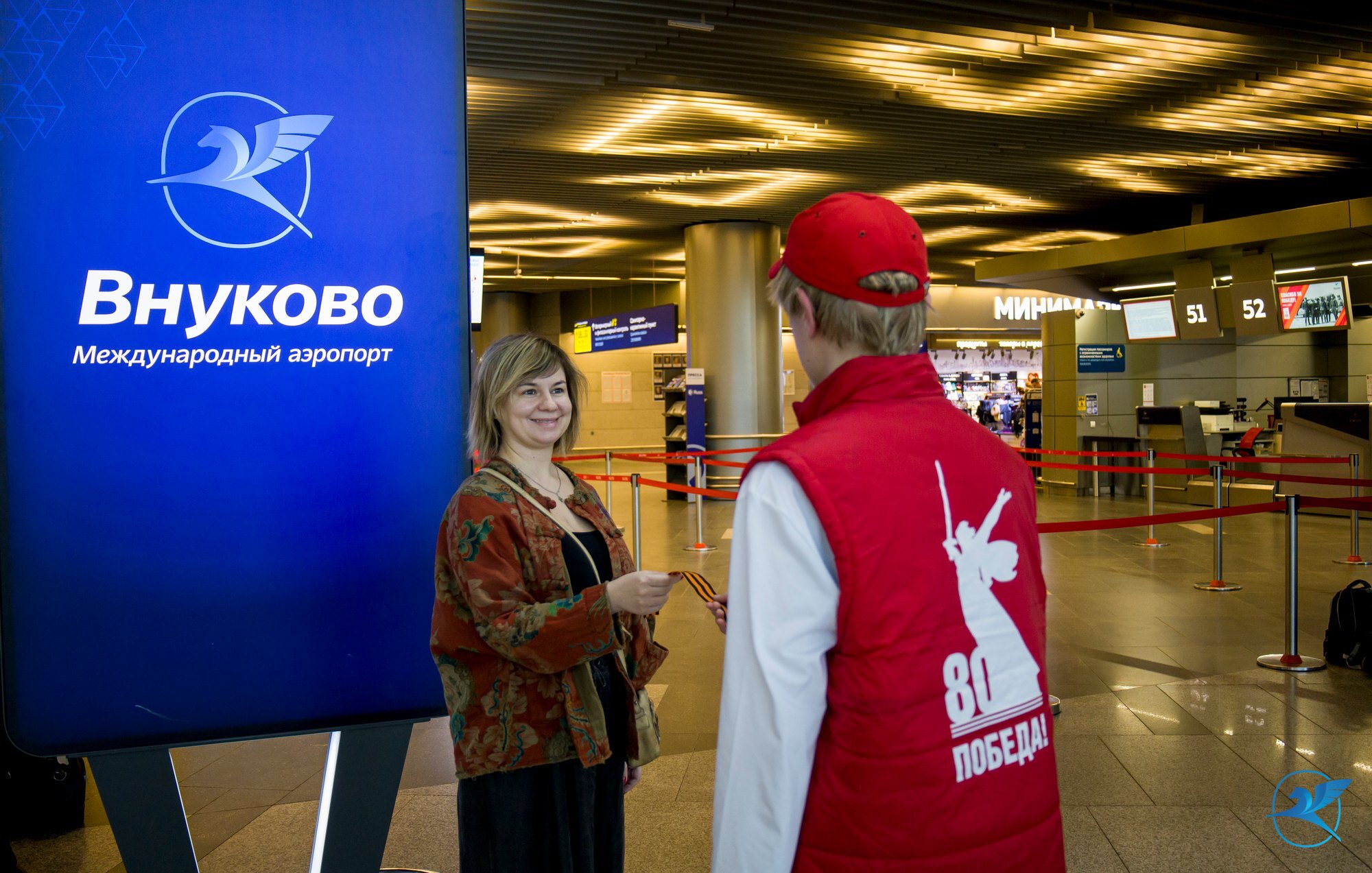 Накануне празднования 80-й годовщины Победы в Великой Отечественной войне Международный аэропорт Внуково традиционно присоединился к Всероссийской акции «Георгиевская лента», проходящей под девизом «Я помню! Я горжусь!» В терминале А сотрудники аэропорта Внуково и волонтеры раздают всем Георгиевские ленты.