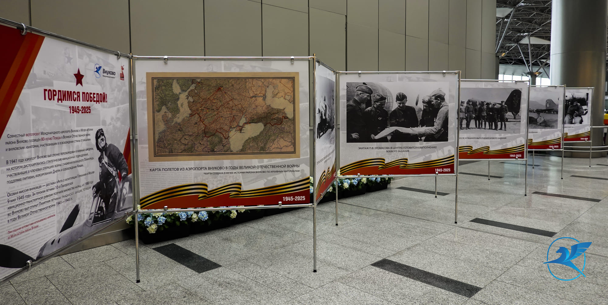 Кроме того, на третьем этаже аэропорта открылась фотовыставка «Гордимся Победой! 1945-2025». Этот совместный проект с Музеем Истории района Внуково, приуроченный к 80-летию Победы в Великой Отечественной войне, посвящен внуковским авиаторам, внесшим свой вклад в освобождение страны от фашизма. Посетить фотовыставку можно до конца июля.