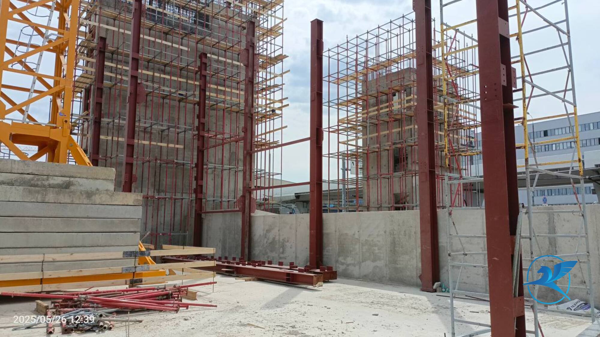 Завершена разработка котлована, подходят к концу работы по устройству фундаментной плиты, строители начали возводить лифтовые и лестничные шахты будущего паркинга. Согласно плану, строительство завершится в первом квартале 2027 года, затем паркинг будет введен в эксплуатацию.