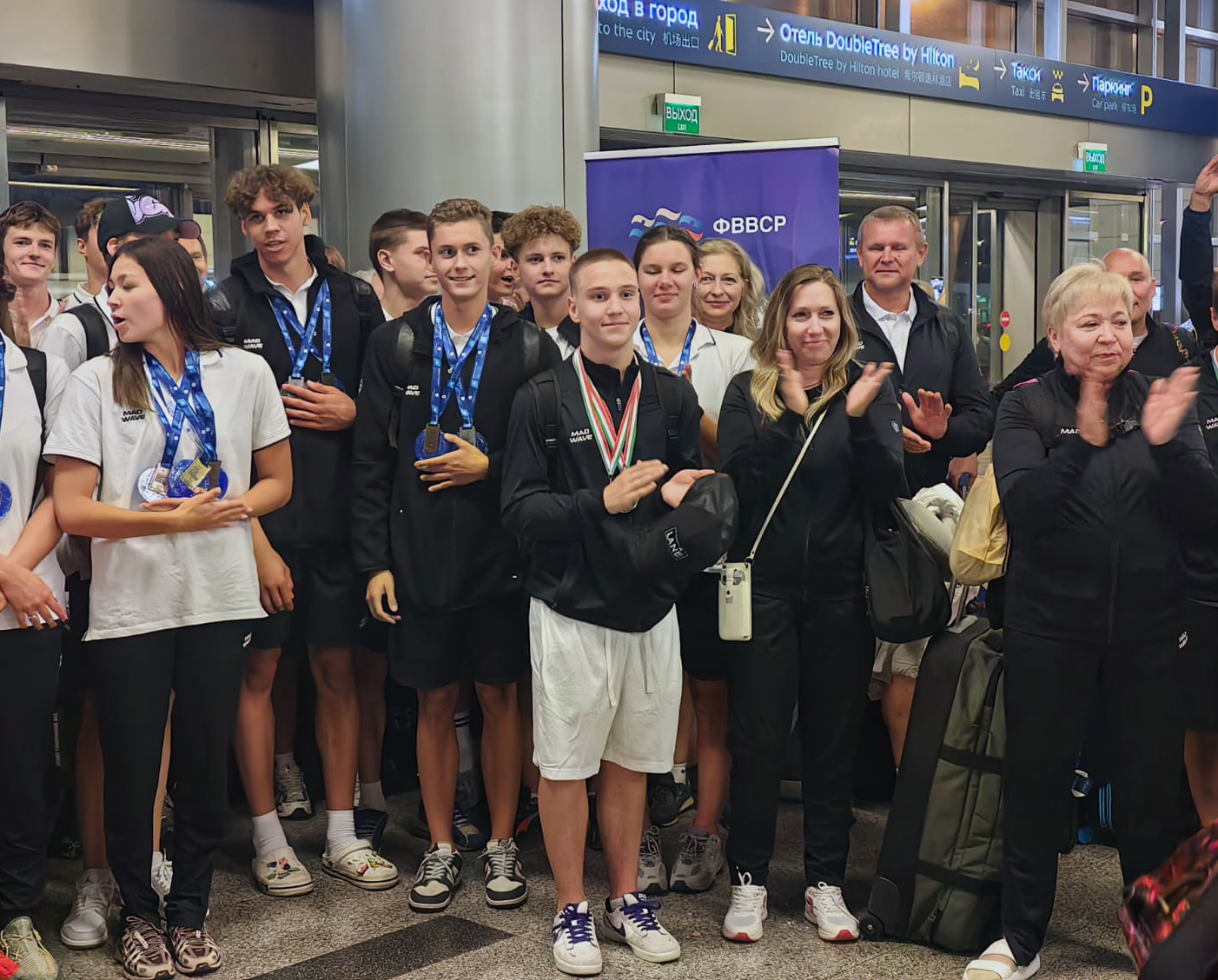 С 1 по 6 июля российский национальный состав принял участие в соревнованиях по плаванию среди юниоров, которые проходили в словацком Шаморине. В ночь на 8 июля спортсмены вернулись домой с пятью золотыми медалями. В аэропорту Внуково их встречали представители Федерации водных видов спорта России, члены семей и болельщики.
