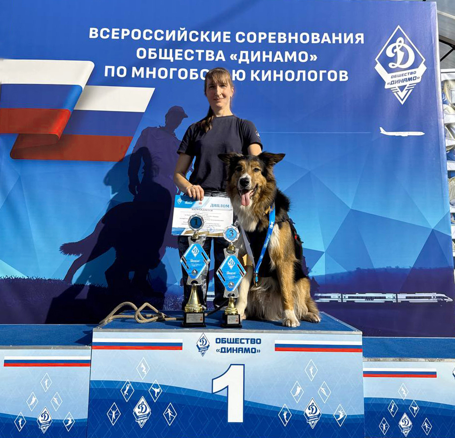 Кроме того, в личном зачете специалист-кинолог Вероника Быкова и бордер-колли Лис стали лучшими при выполнении этапа «Поиск на малогабаритных предметах» и заняли третье место на этапе «Поиск на транспорте».