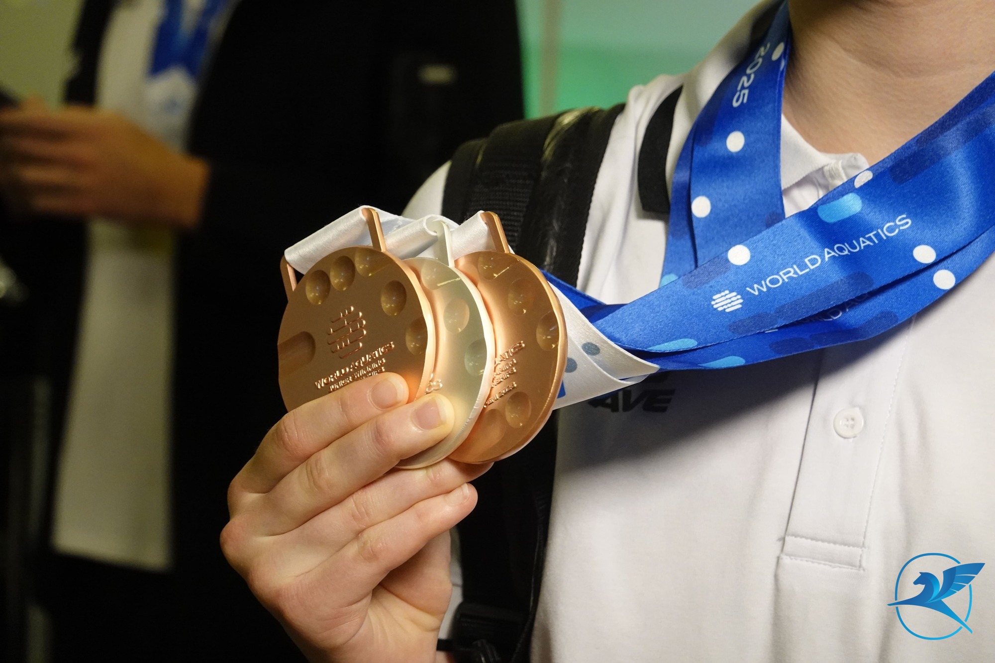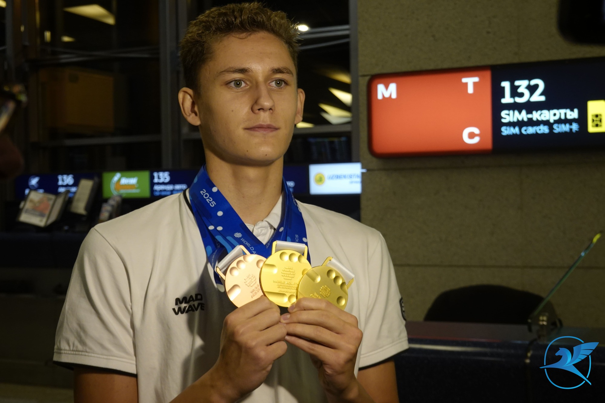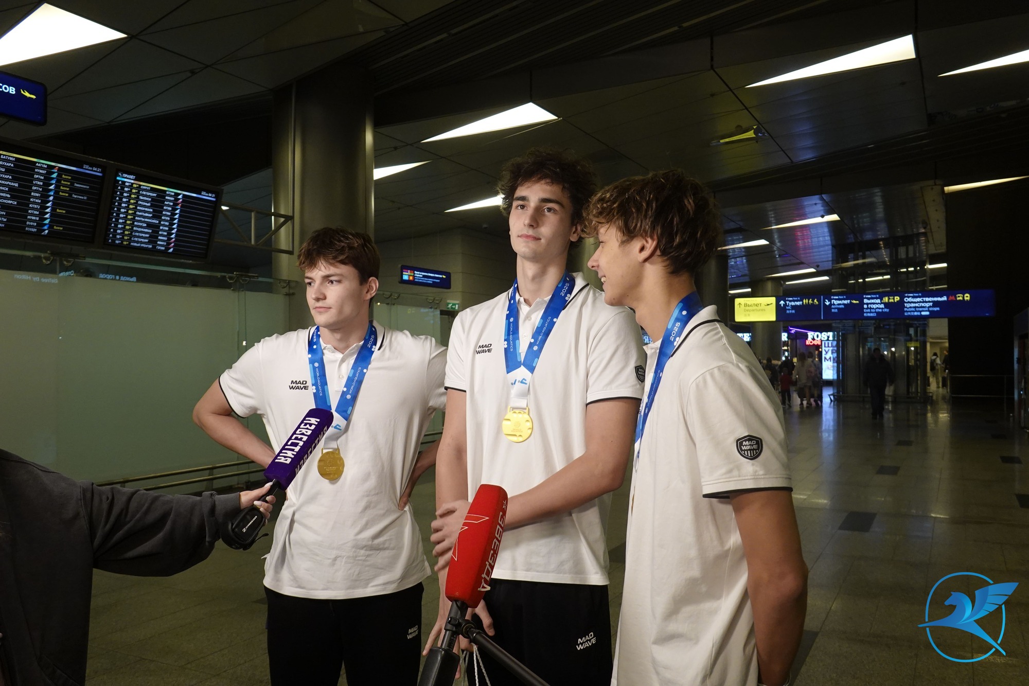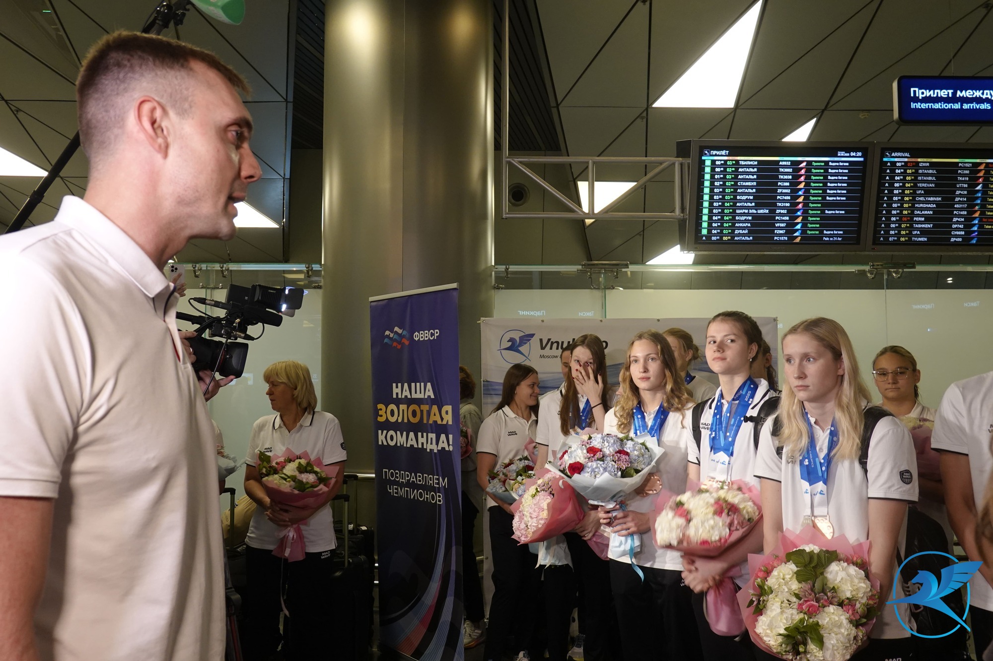 В Международном аэропорту Внуково с почетом встретили сборную России по плаванию среди юниоров, которая прилетела с первенства мира в румынском Отопени. Наши спортсмены показали выдающийся результат: завоевали в общей сложности 15 медалей, пять из которых золотые, установили два рекорда и в итоге заняли второе место в общекомандном медальном зачете, уступив только сборной США и обойдя бронзовых призеров чемпионата — команду Китая.