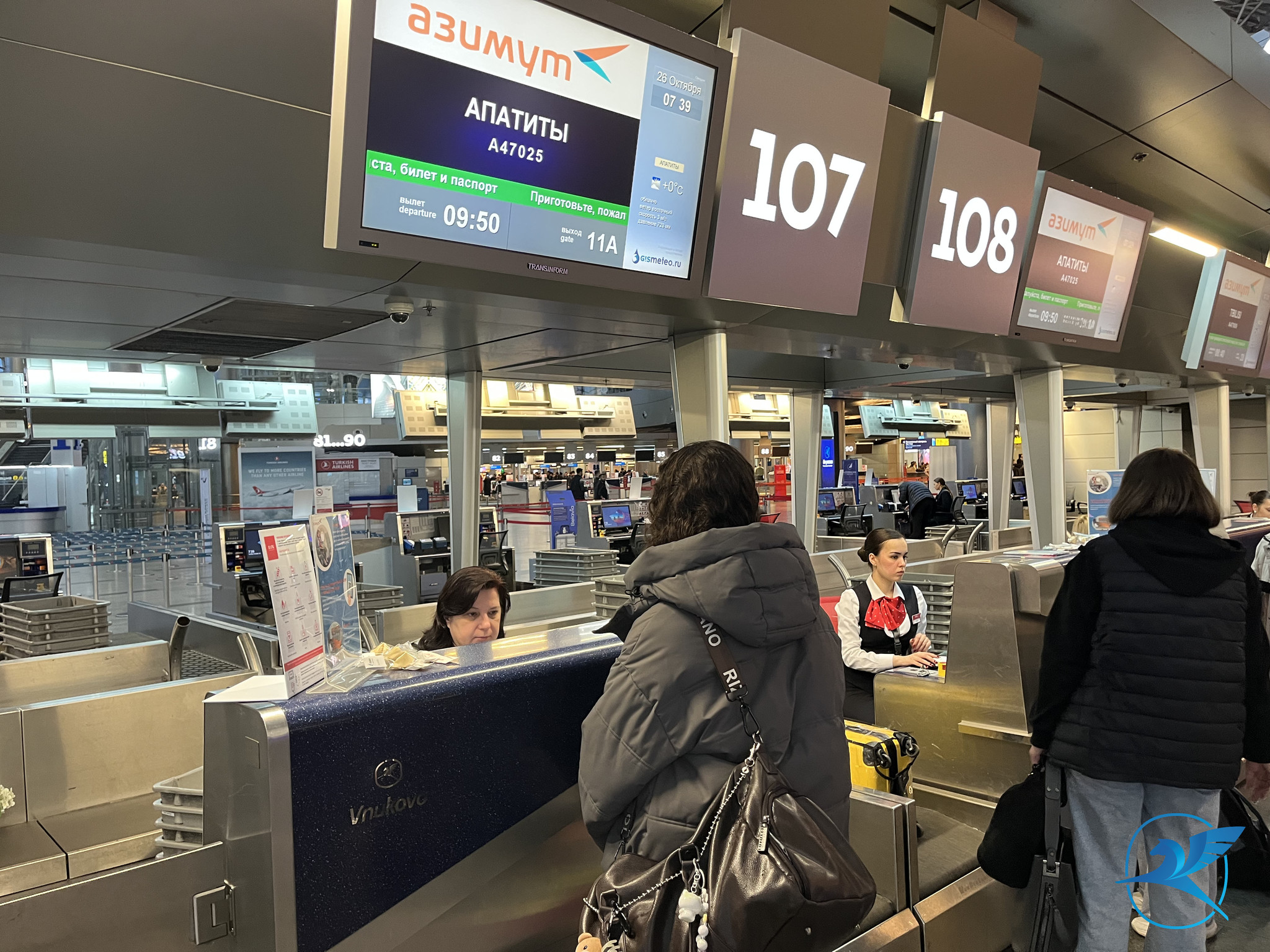 - Вылет из Внуково в 09:50, посадка в Апатитах в 12:20