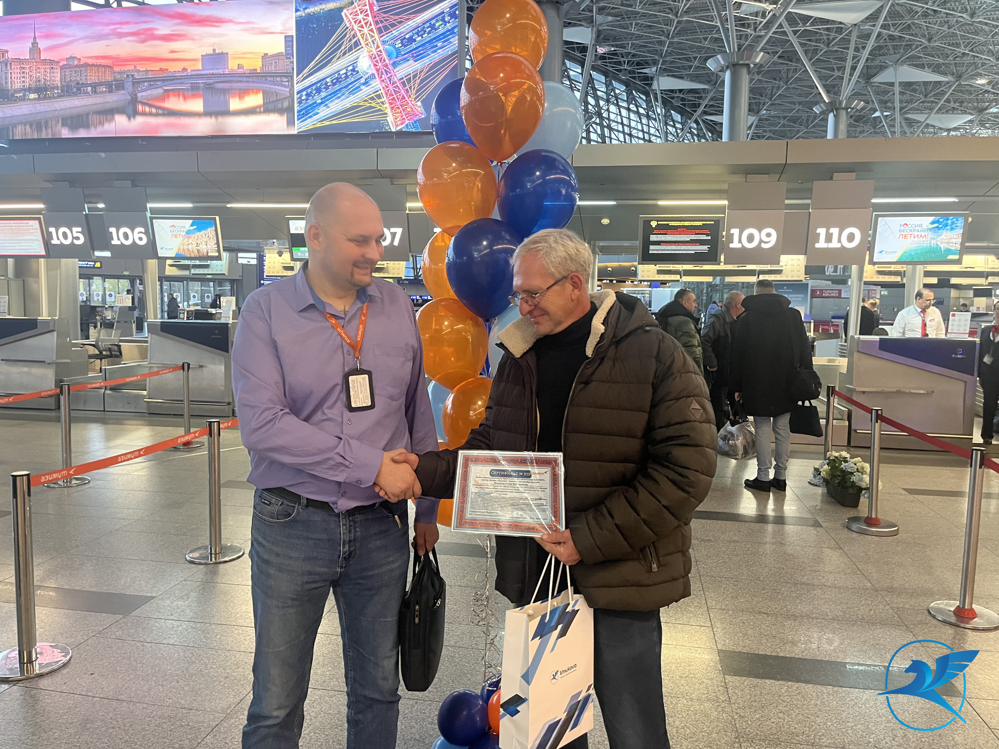 Первый пассажир рейса Москва (Внуково) – Апатиты Олег Новиков получил в подарок сертификат на перелет по любому регулярному направлению маршрутной сети авиаперевозчика на две персоны. От Международного аэропорта Внуково пассажиру были вручены дорожный набор путешественника и сувениры.