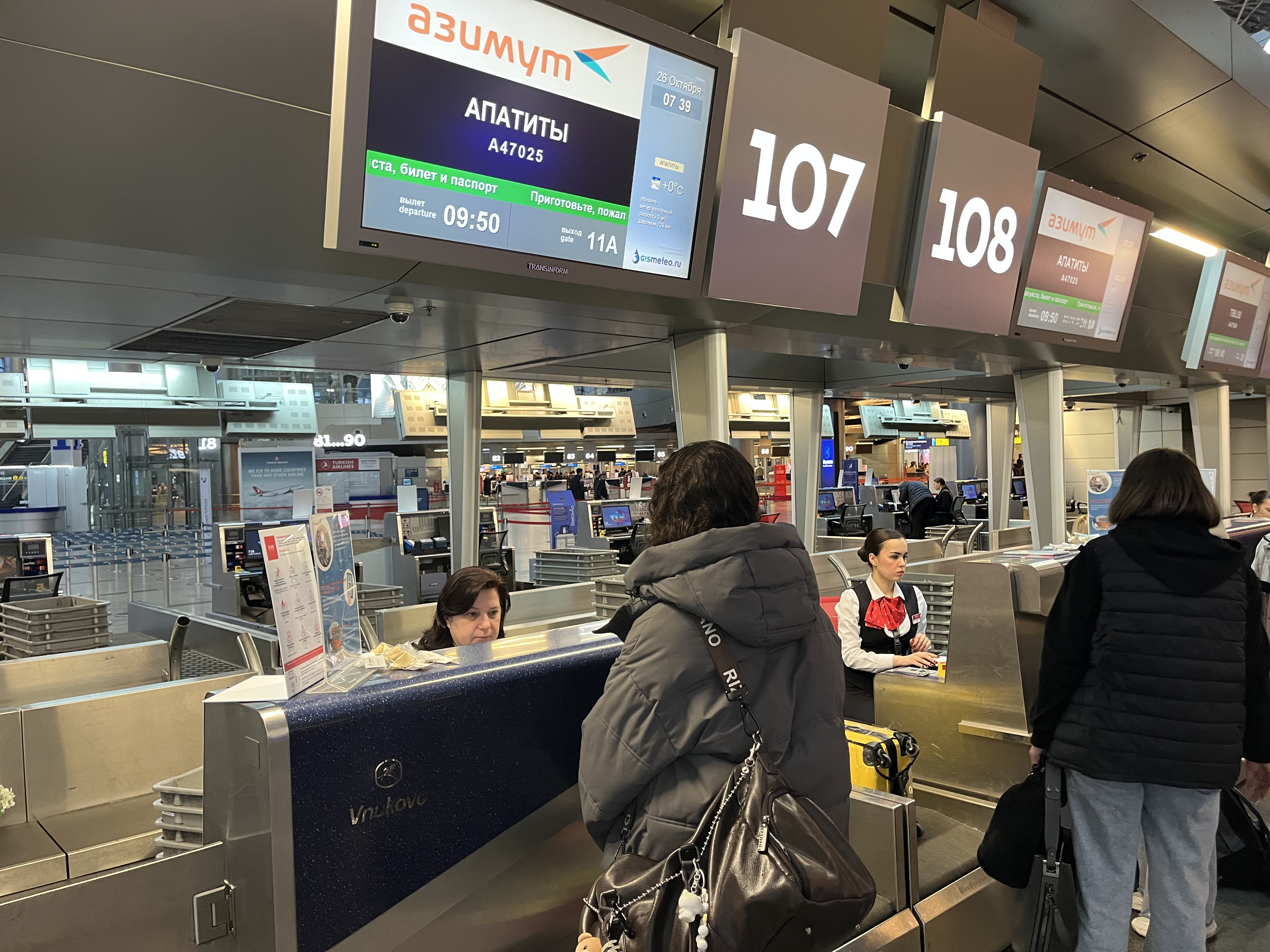- Вылет из Апатитов в 13:20, посадка во Внуково в 15:50