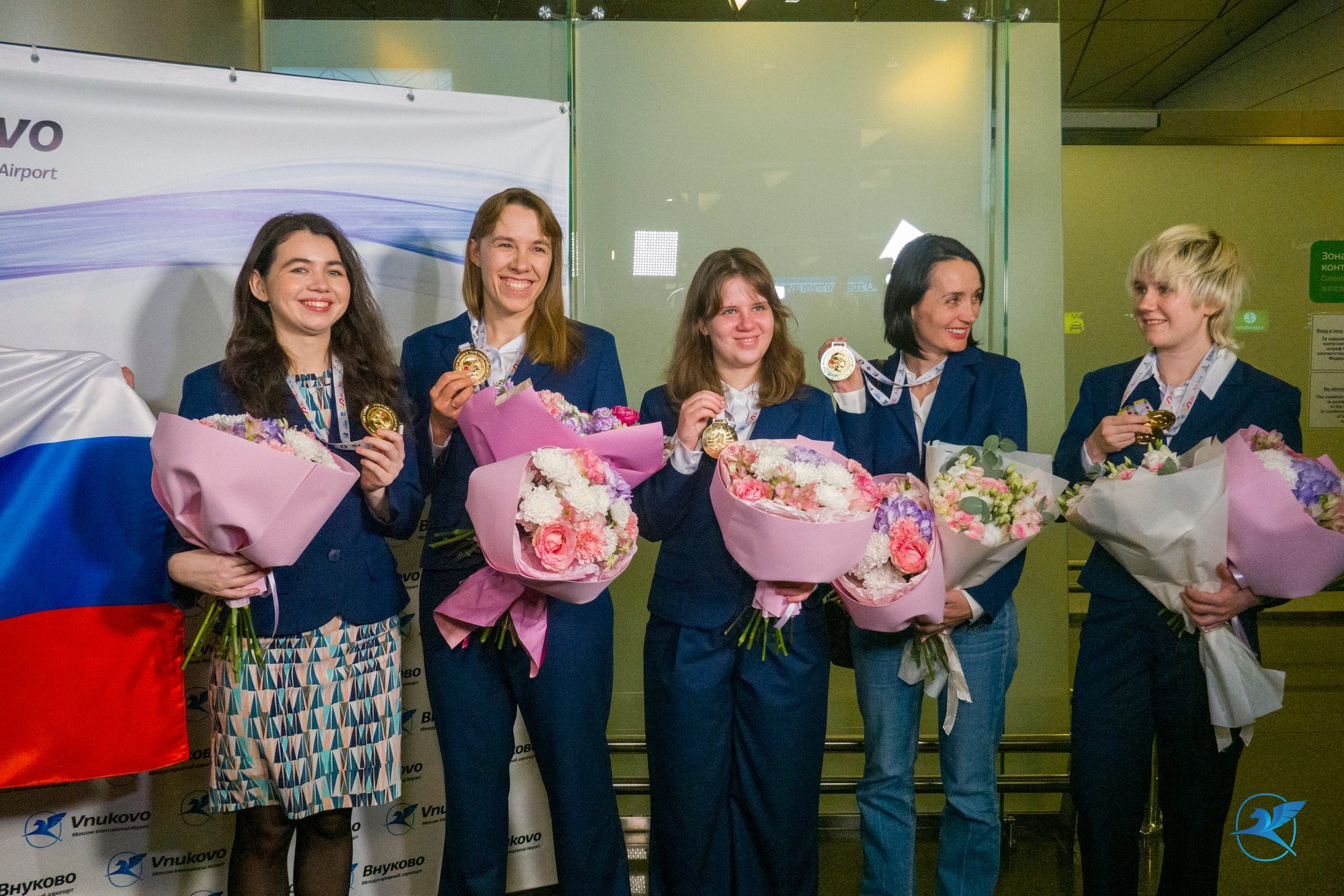 Международный аэропорт Внуково поздравляет наших спортсменок с блестящим выступлением на чемпионате мира! Желаем остроты ума и верных решений над шахматной доской и в жизни!