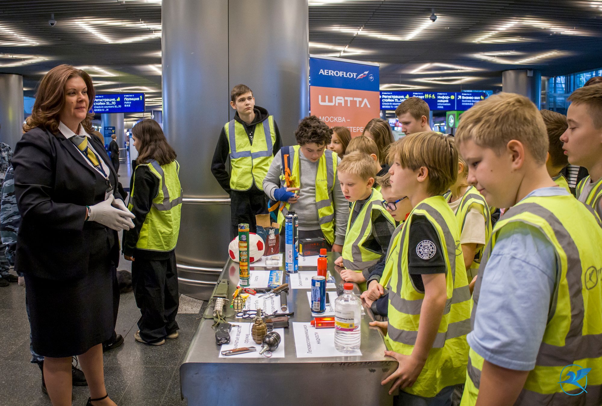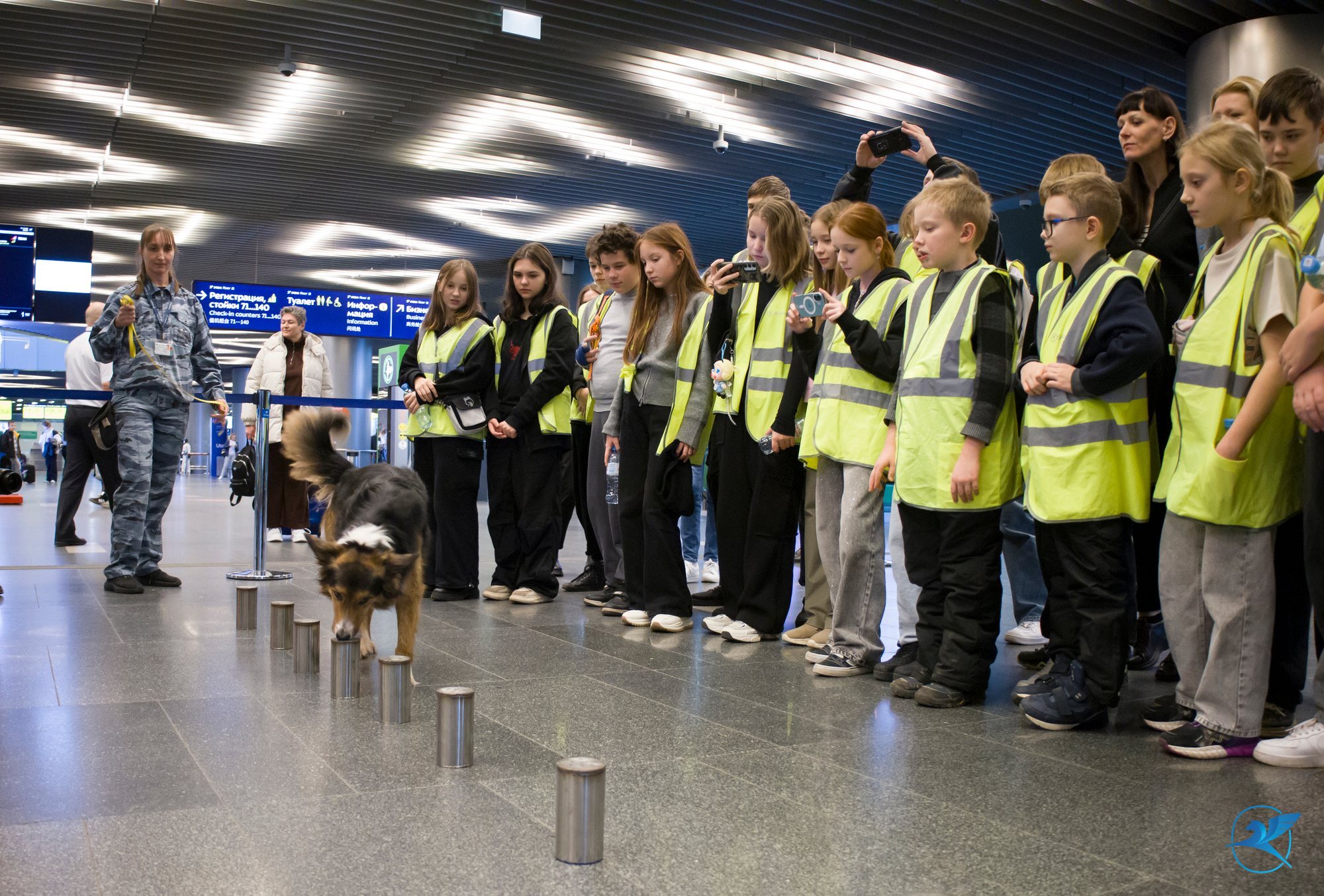 Далее экскурсия продолжилась непосредственно в аэропорту Внуково, где для детей была подготовлена насыщенная программа. Ребята прошли через досмотр на входе в аэропорт, где сотрудники службы авиационной безопасности показали в работе интроскопы, рамки металлодетектора и другое оборудование. Там же детей встретили кинологи со служебной собакой, которая тут же вызвала восторг и завладела детским вниманием.