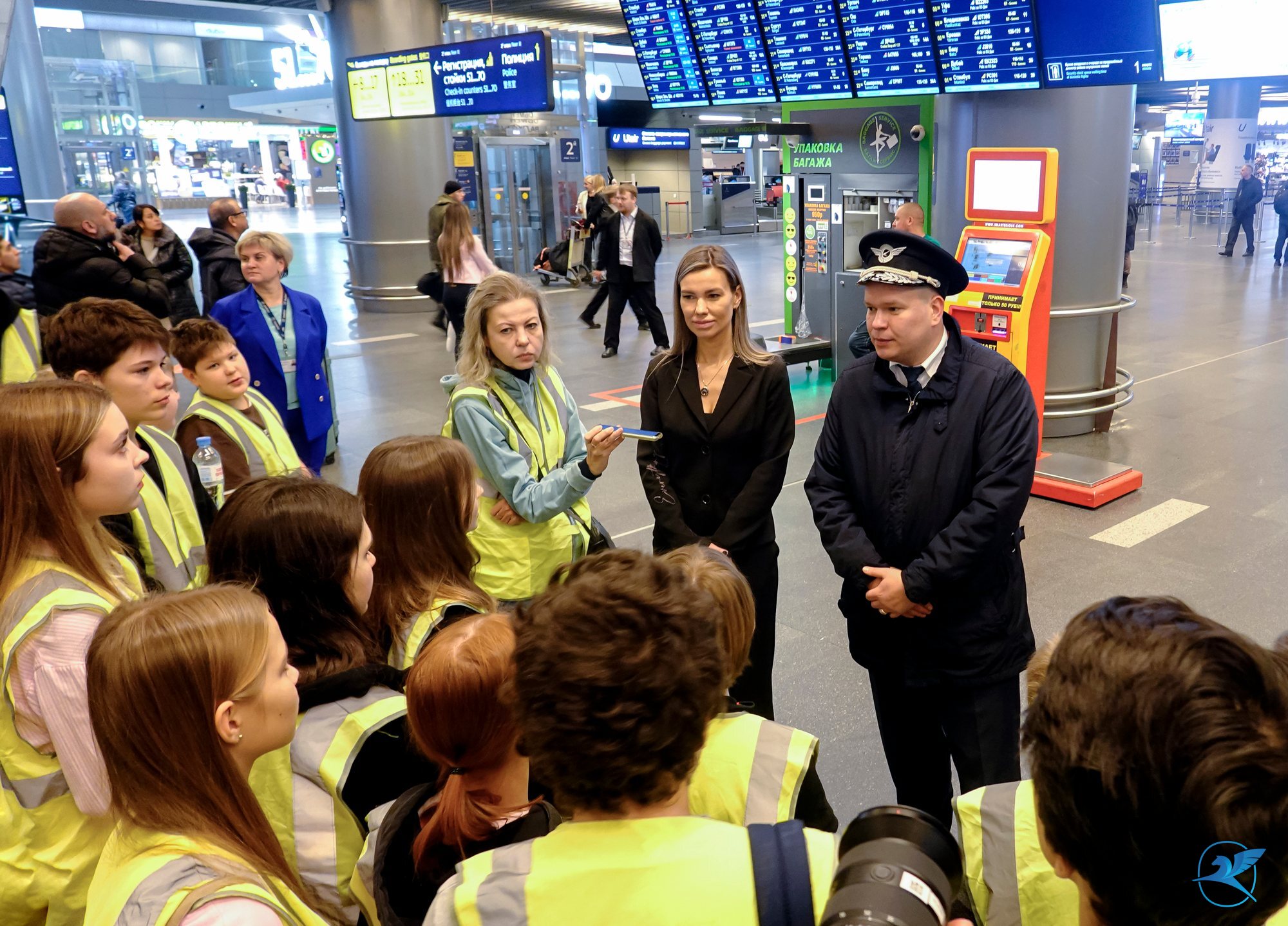 В зале регистрации руководитель службы организации пассажирских перевозок Мария Большакова рассказала о специфике работы за стойкой информации и при регистрации пассажиров на рейс. Юные гости также узнали о работе Группы организации обслуживания пассажиров с ограниченными возможностями здоровья, а также оценили комфорт специального детского зала ожидания.
