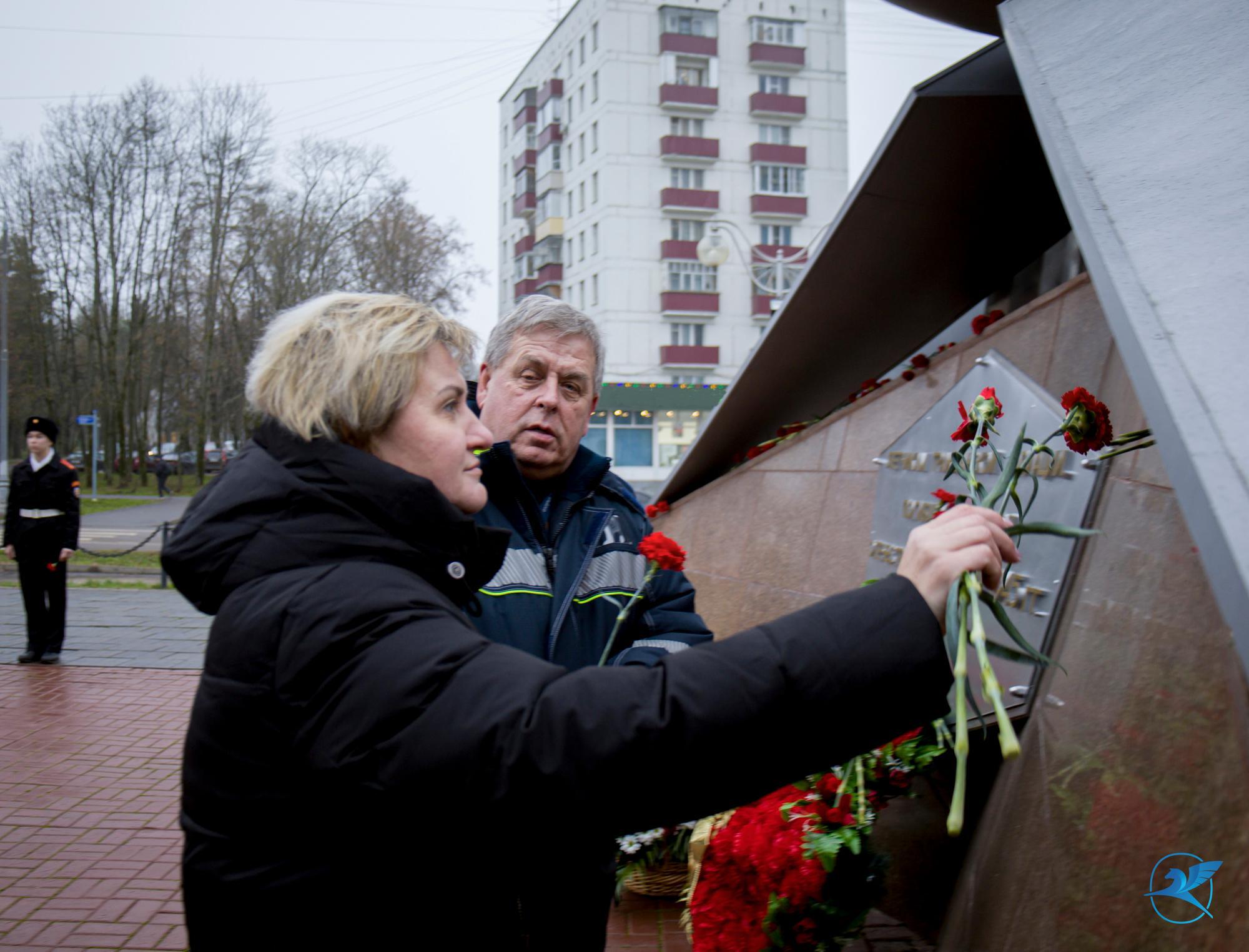 Участники митинга почтили память героев Битвы за Москву минутой молчания и возложили цветы к монументу героям-летчикам гражданской авиации, погибшим в годы Великой Отечественной войны.