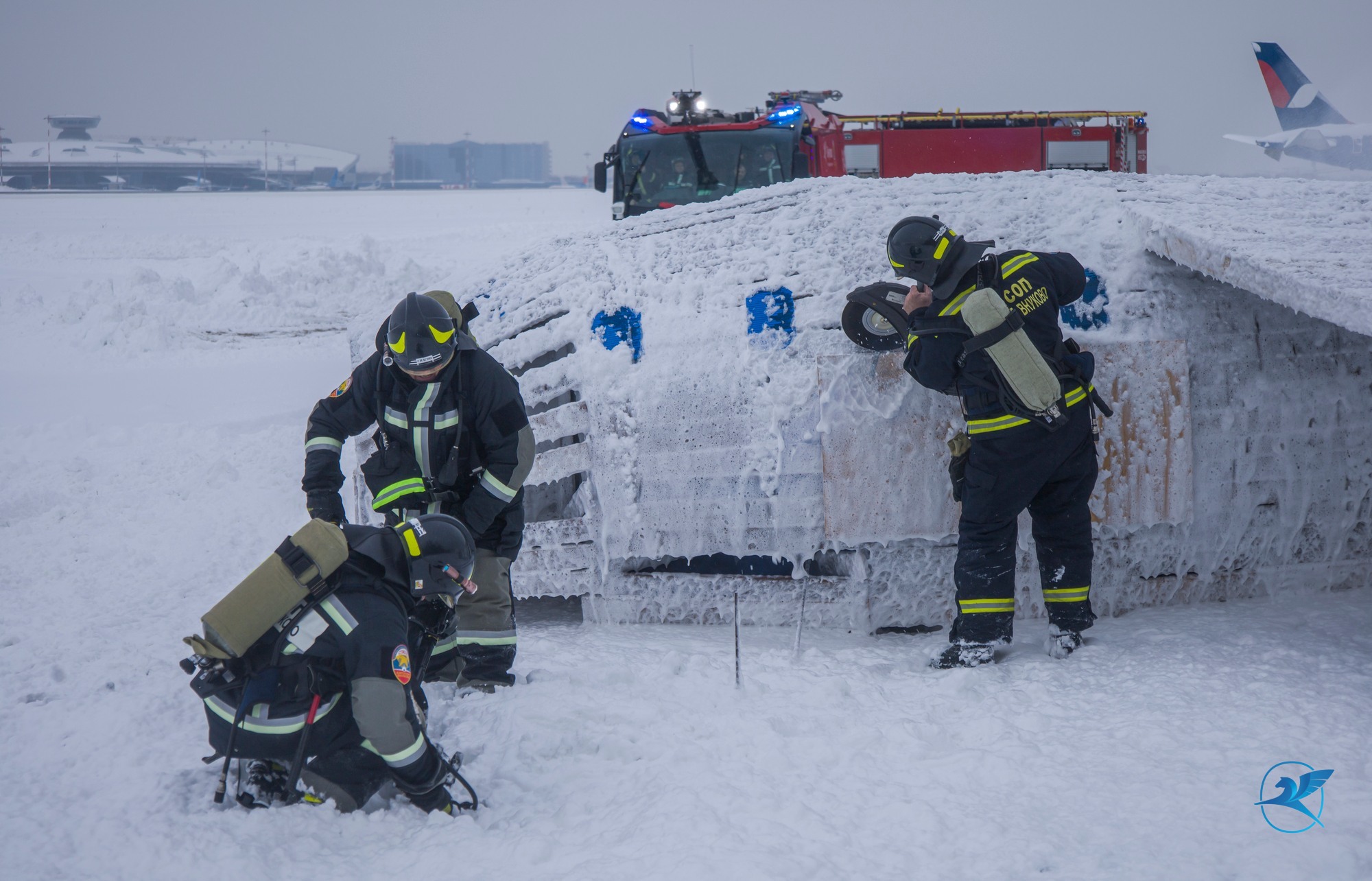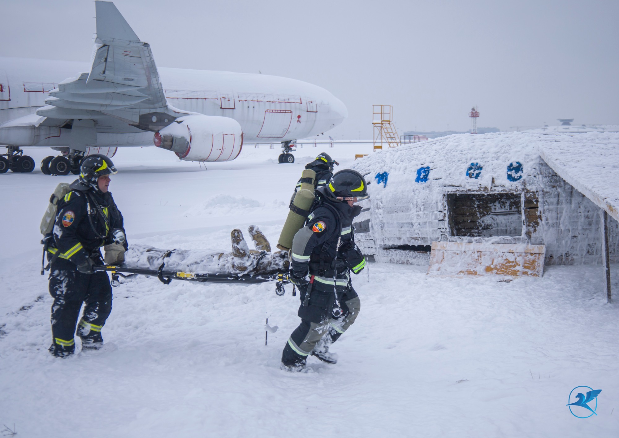 В качестве «пострадавшего воздушного судна» был задействован специально изготовленный спасателями огневой тренажер — полноразмерный деревянный макет самолета. Благодаря своевременному прибытию сил и средств СПАСОП и грамотному применению тактики пожаротушения, активное горение макета было оперативно прекращено. После ликвидации открытого огня спасатели приступили к вскрытию фюзеляжа для эвакуации условно пострадавших (манекенов).