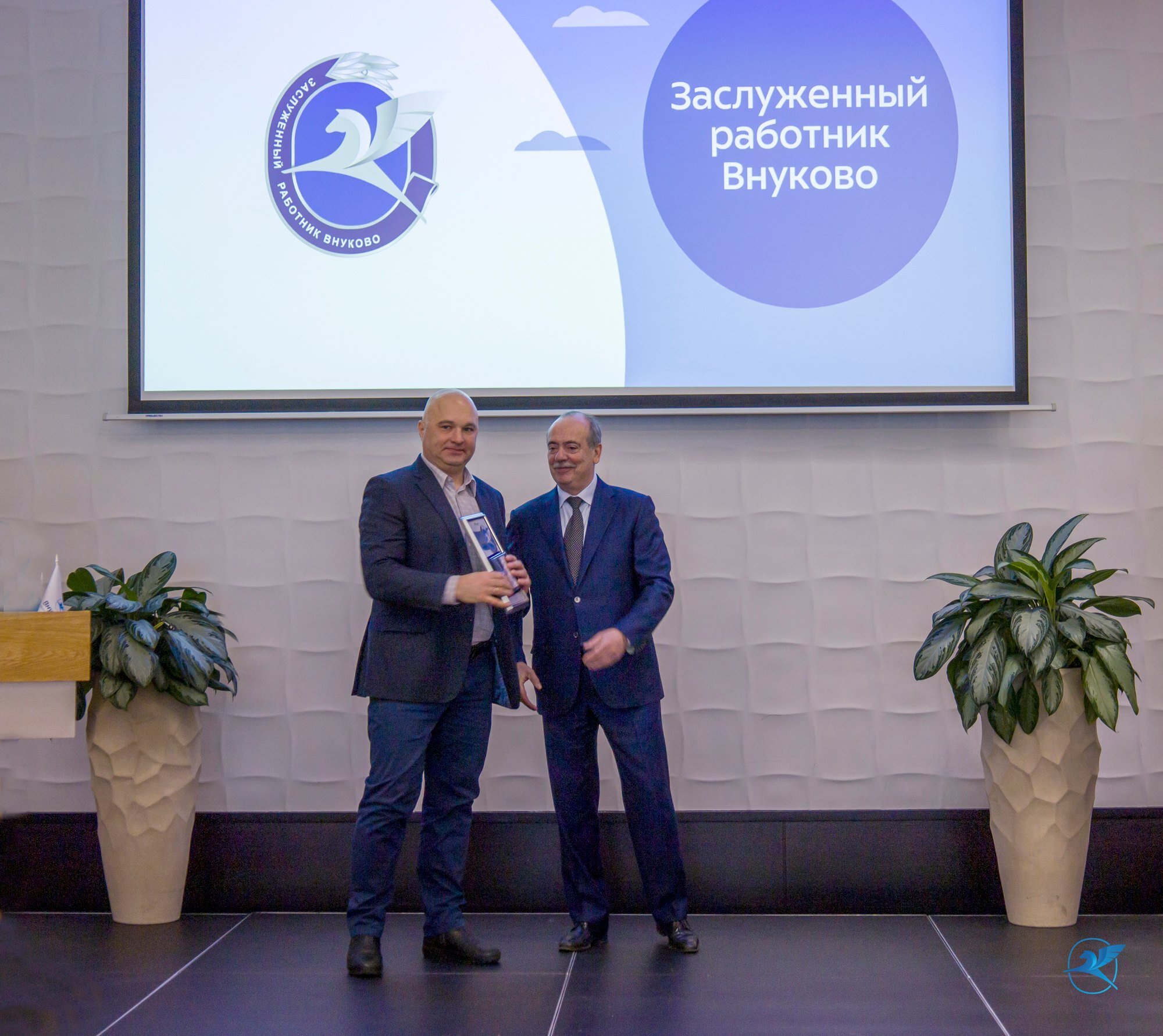 Вручение корпоративных наград началось с присвоения почетного звания «Заслуженный работник Внуково». Его за многолетний добросовестный труд и успехи в работе были удостоены начальник службы тепло- и санитарно-технического обеспечения Александр Волков, диктор группы информации и обслуживания пассажиров СОПП Надежда Каминская, начальник отдела учета расходов службы бухгалтерского учета Елена Колоскова, ведущий инженер группы второй линии поддержки службы системного сопровождения Сергей Николаев, горничная гостиничного комплекса Внуково Нина Сеньковец, начальник отдела планирования и контроля инвестиционной деятельности Сергей Сонин и специалист по кадрам отдела кадров и социальных вопросов Татьяна Ушкалова.