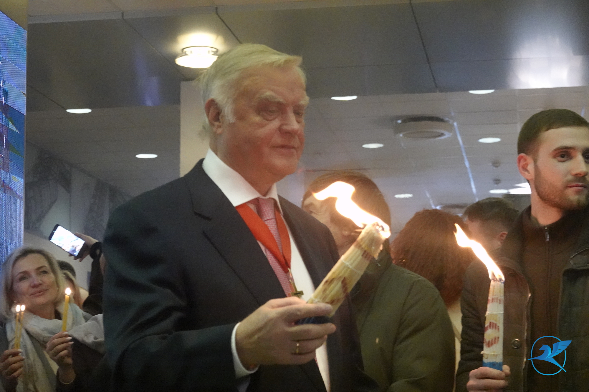 «Разрешите вас всех поблагодарить за то, что вы в этот поздний час приехали, чтобы встретить паломническую делегацию Фонда Андрея Первозванного, которая только что вернулась со Святой Земли, — обратился к собравшимся в терминале Внуково-3 председатель попечительского совета Фонда Владимир Якунин. — Мы хотим поблагодарить Государственную транспортную лизинговую компанию и генерального директора Роскосмоса Дмитрия Владимировича Баканова. Сегодня частичка Благодатного огня разлетится по нашей стране и за ее пределы. А я со своей стороны хочу вам всем пожелать счастливой Пасхи. Христос воскресе!»